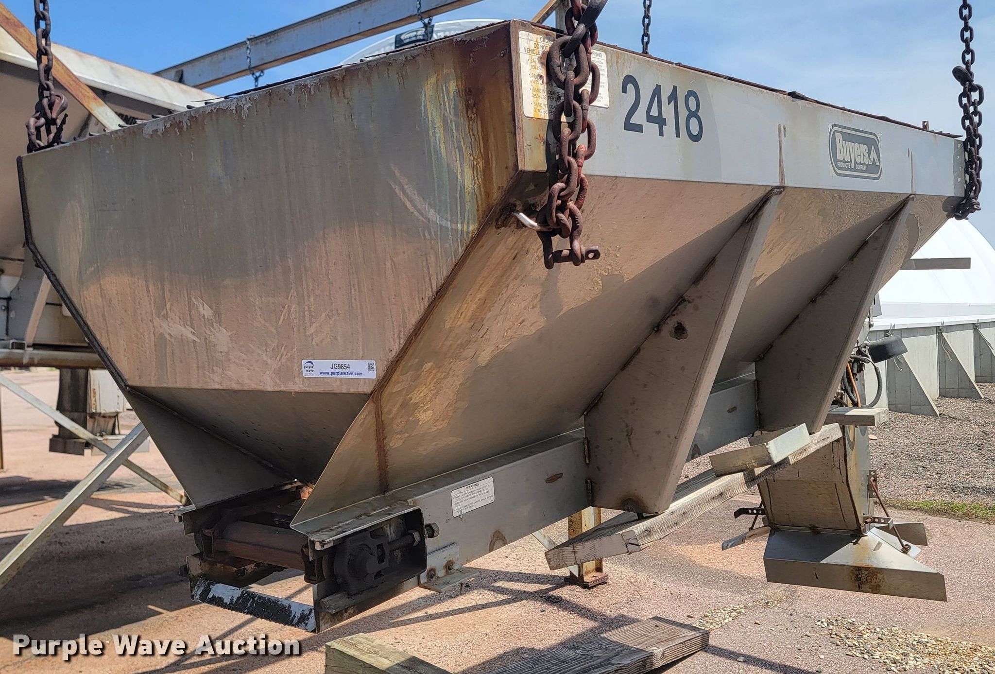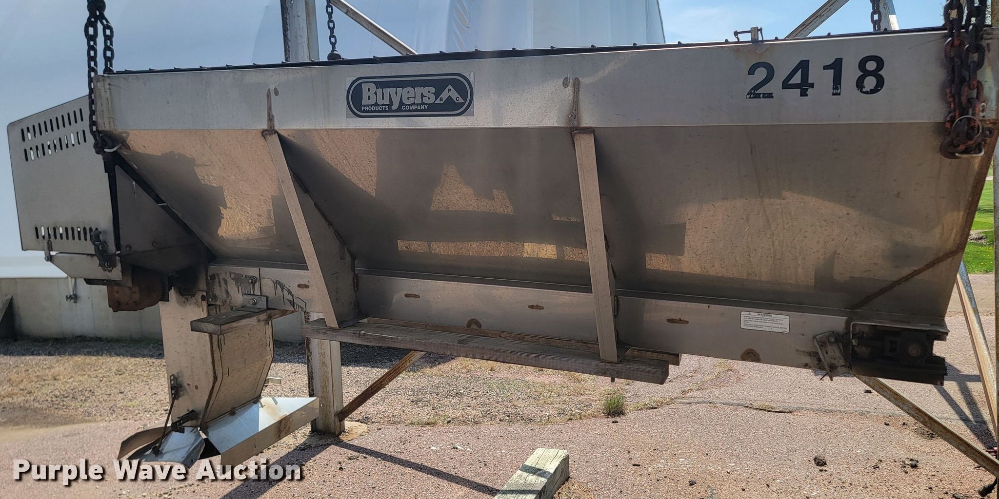 Purple Wave is selling a used Truck Part and Attach. in South Dakota. This item is a 2006 Buyers spreader with the following: 8' L x 4' W, Briggs & Stratton single cylinder gas engine, Unit #: 2418