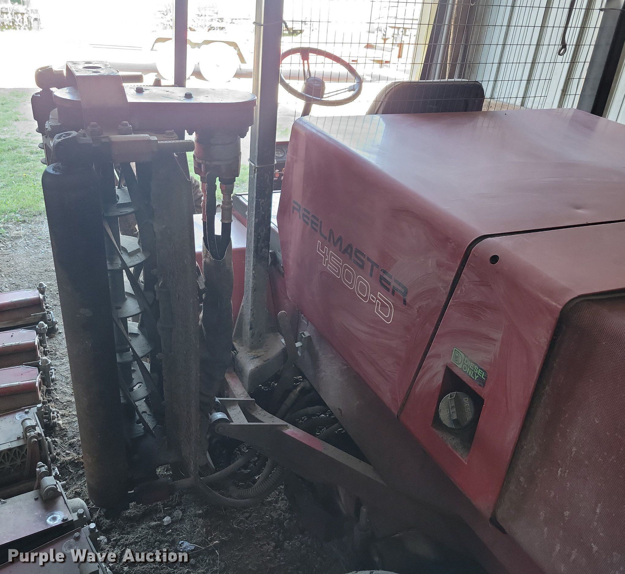Purple Wave is selling a used Commercial Turf Mower in Iowa. This item is a Toro Reelmaster 4500-D reel mower with the following: Hours: 5,084 on meter, Cutting width: 138"