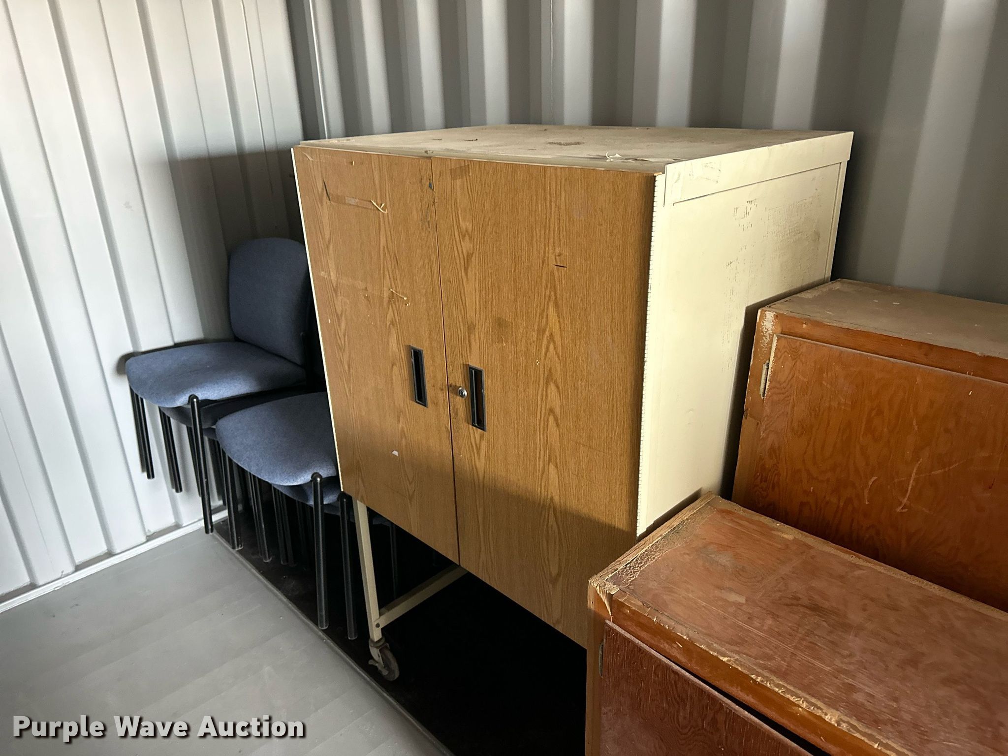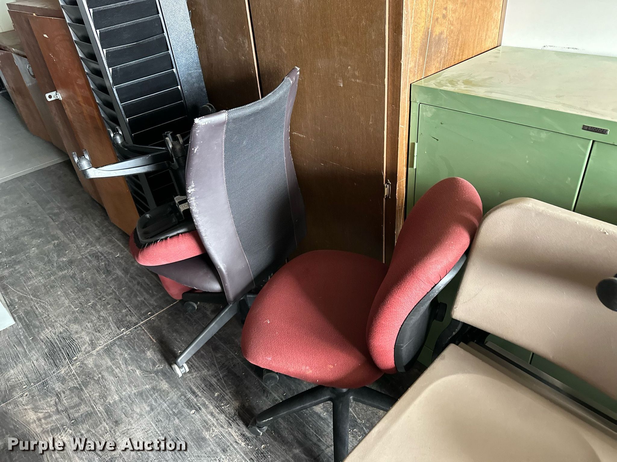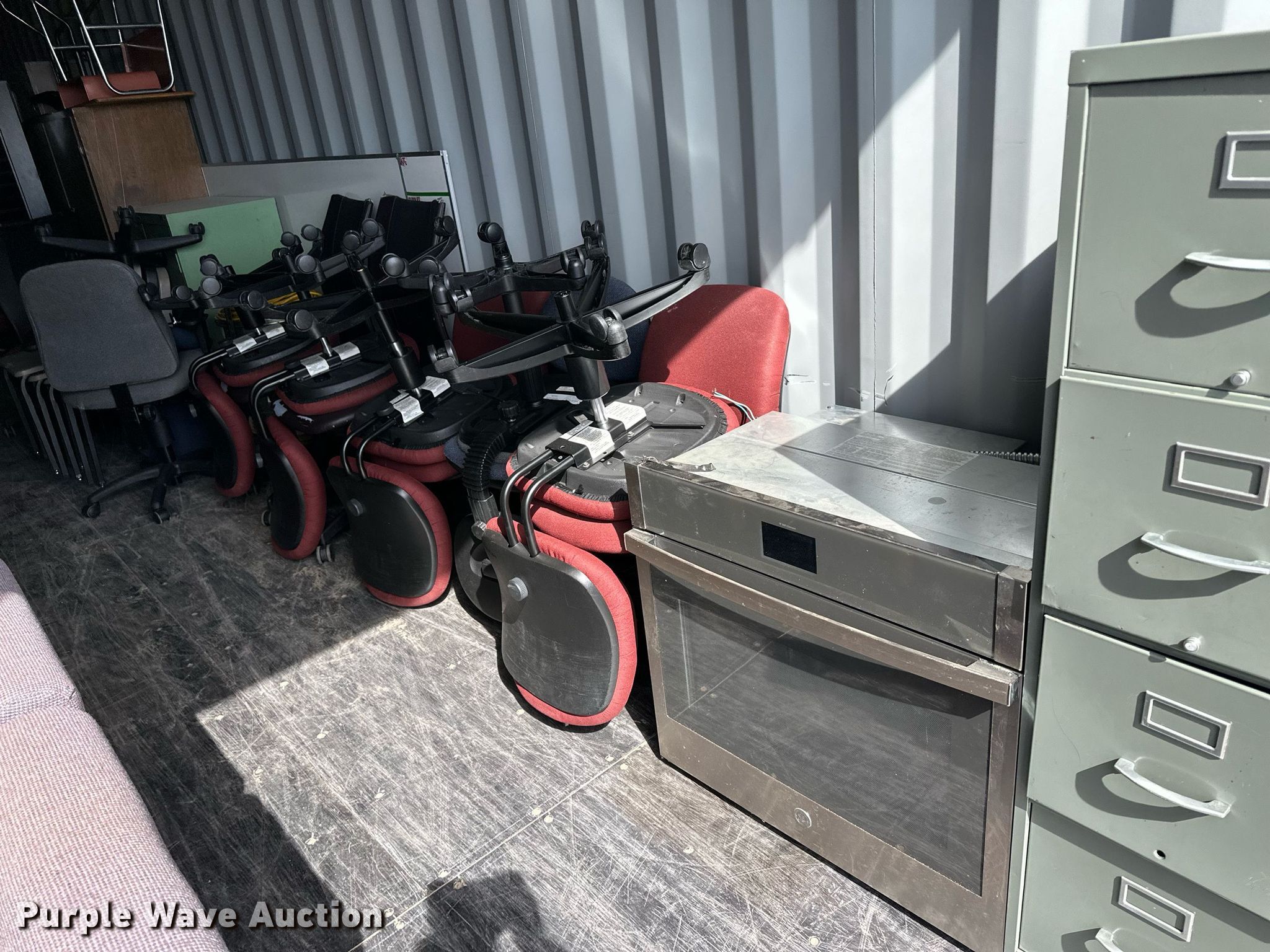 Purple Wave is selling a used Furniture in Kansas. This item is a Furniture with the following: File cabinets, Chairs, Desks, Cafeteria tables