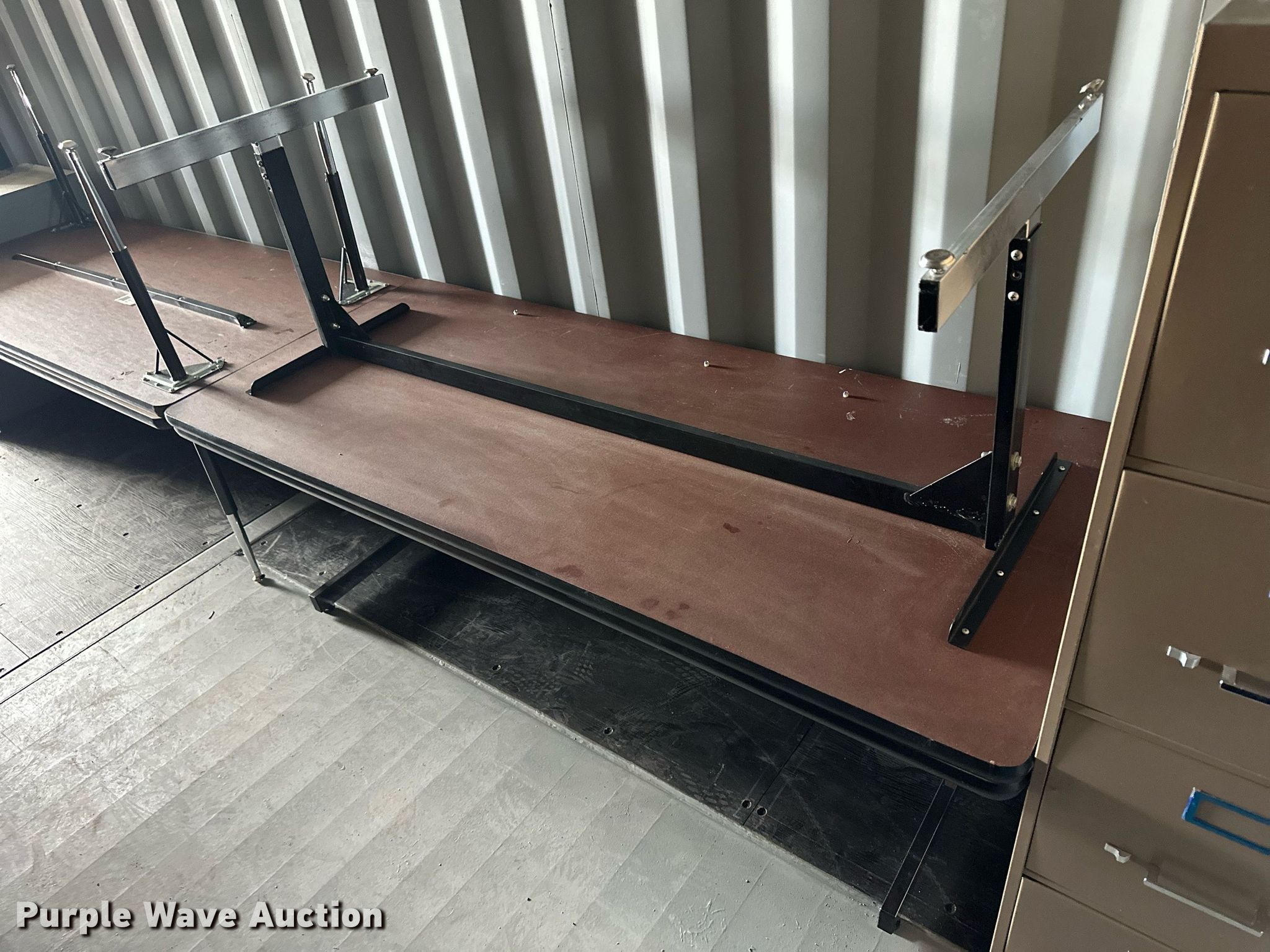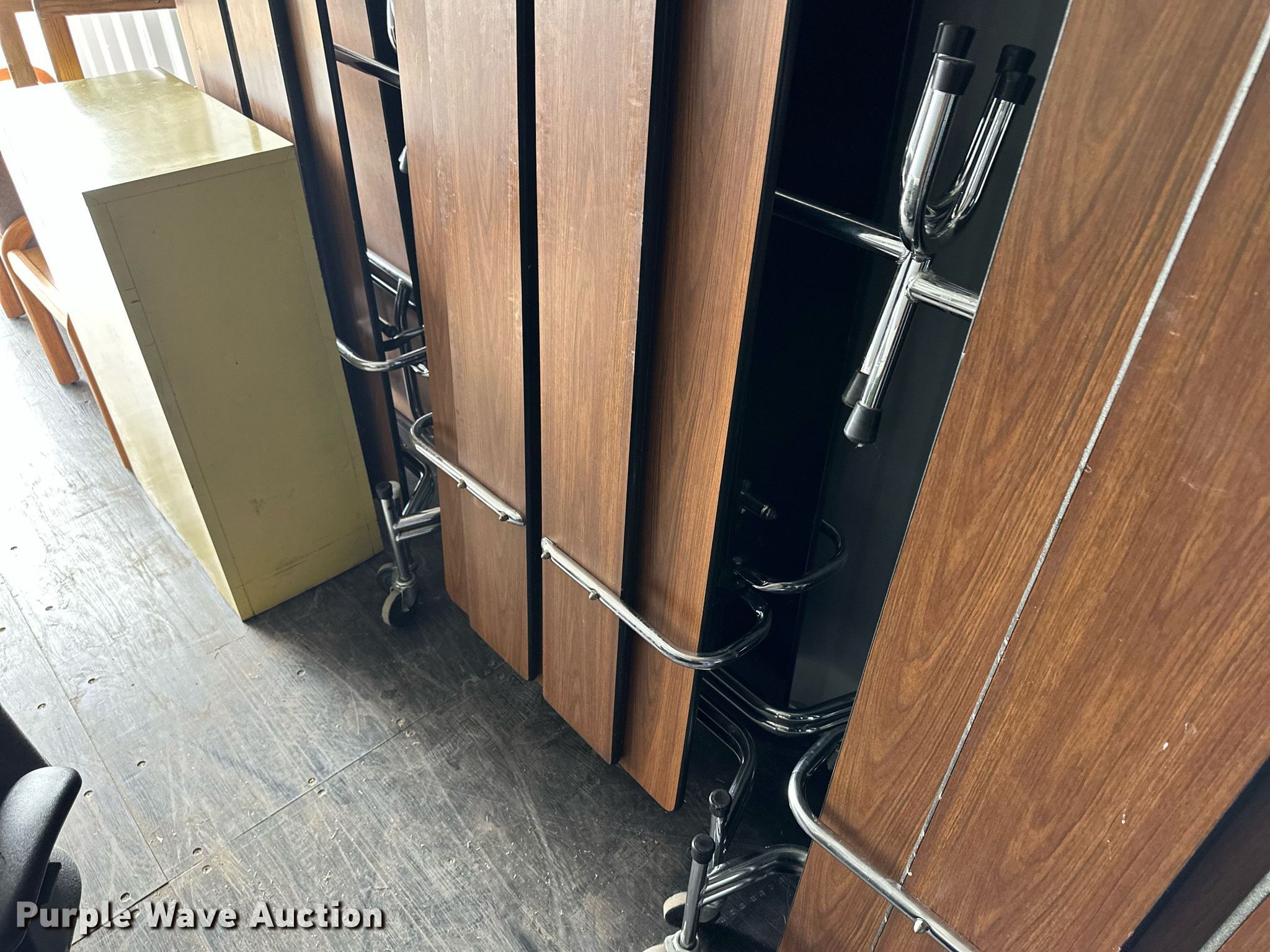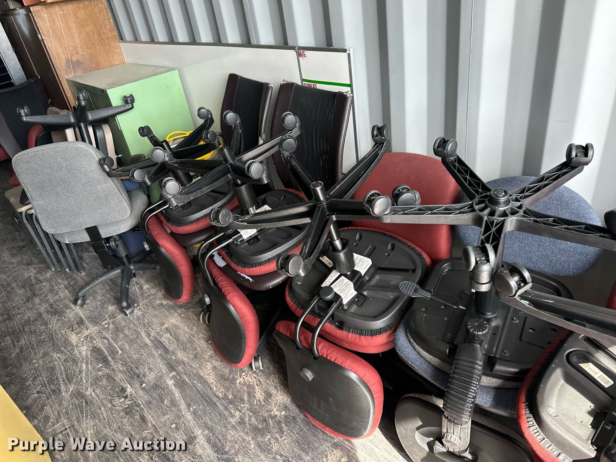 Purple Wave is selling a used Furniture in Kansas. This item is a Furniture with the following: File cabinets, Chairs, Desks, Cafeteria tables