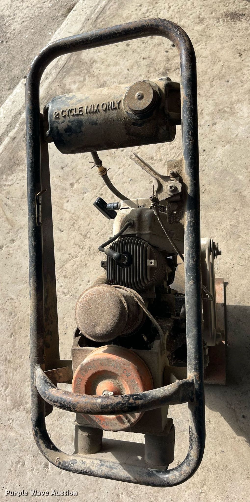 M-B-W R-11 plate compactor. Serial: 1457051. Engine Cylinders: 1, Fuel type: Gas. Features Plate: 11" x 15". Notes Fuel leak. 600 E Main. Maysville, MO 64469