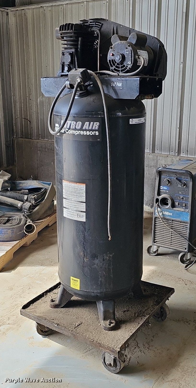 Purple Wave is selling a used Air Compressor in Iowa. This item is a Schrader Bridgeport NAC 82-4256-VAT air compressor with the following: Serial: 188931