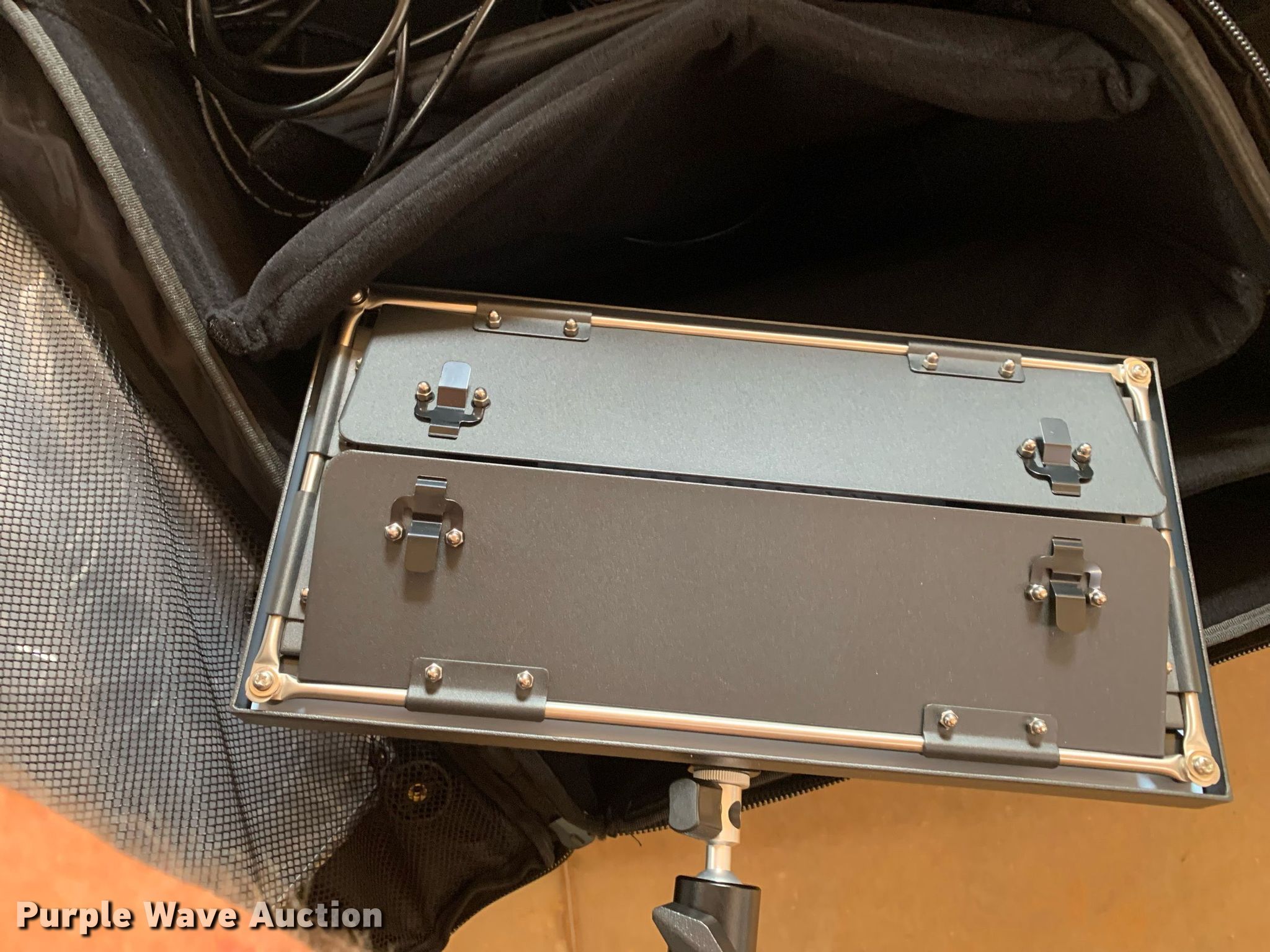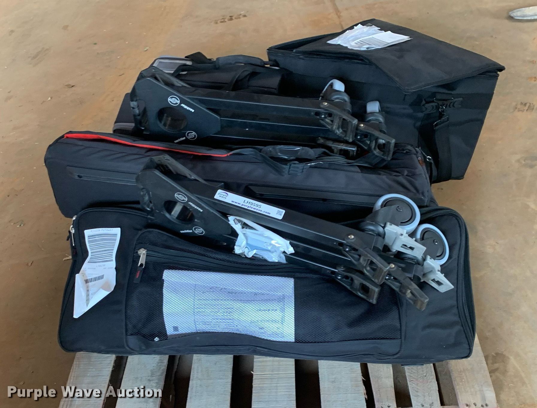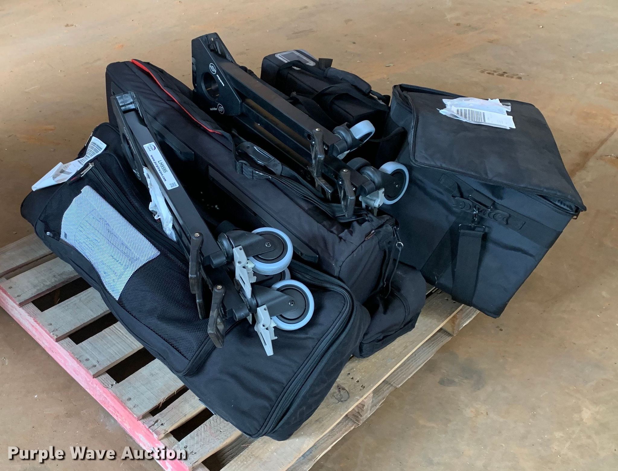 Purple Wave is selling a used Electronics in Texas. This item is a Photography equipment with the following: Tripods, Weights, Lights, Rolling stands, Storage bags