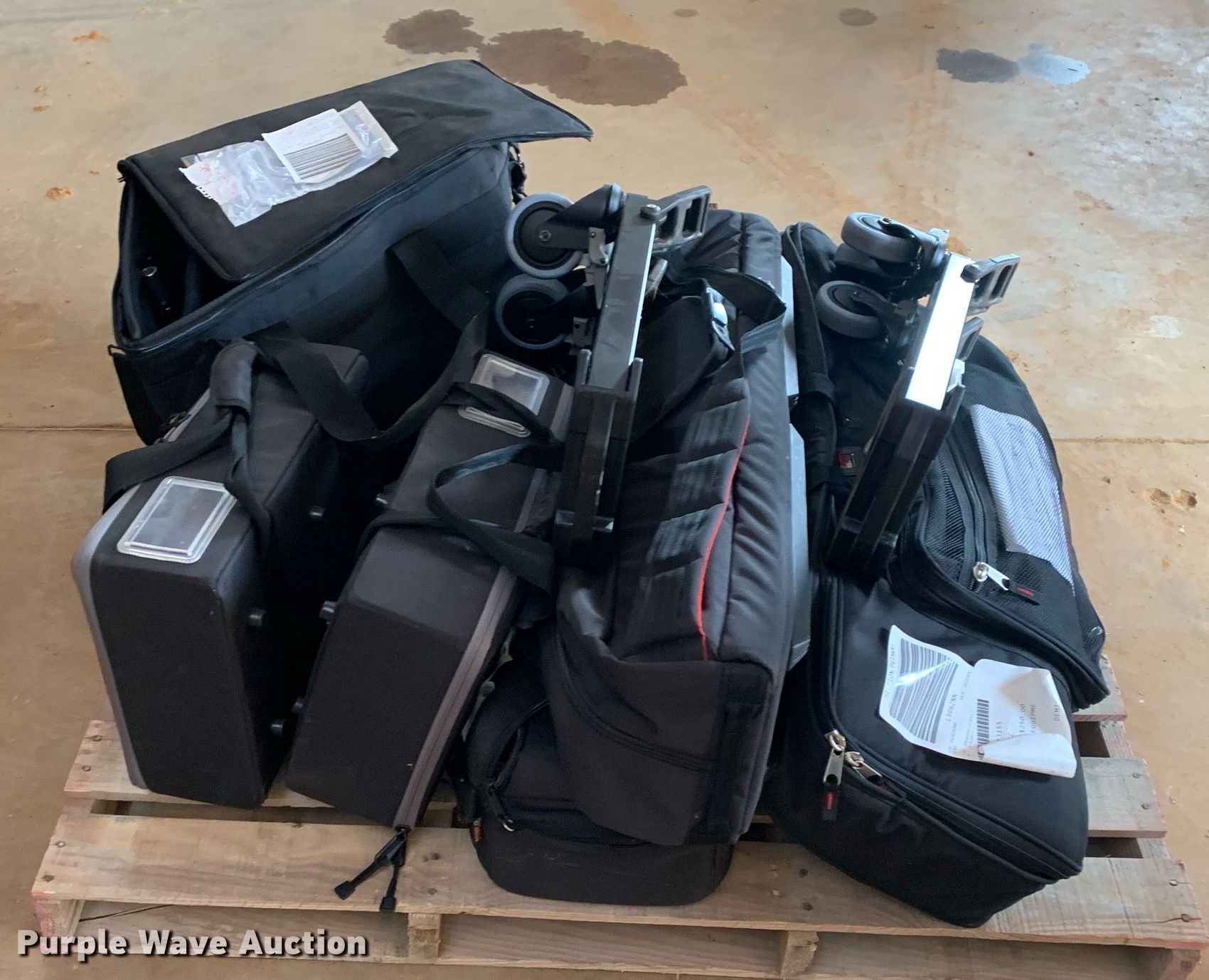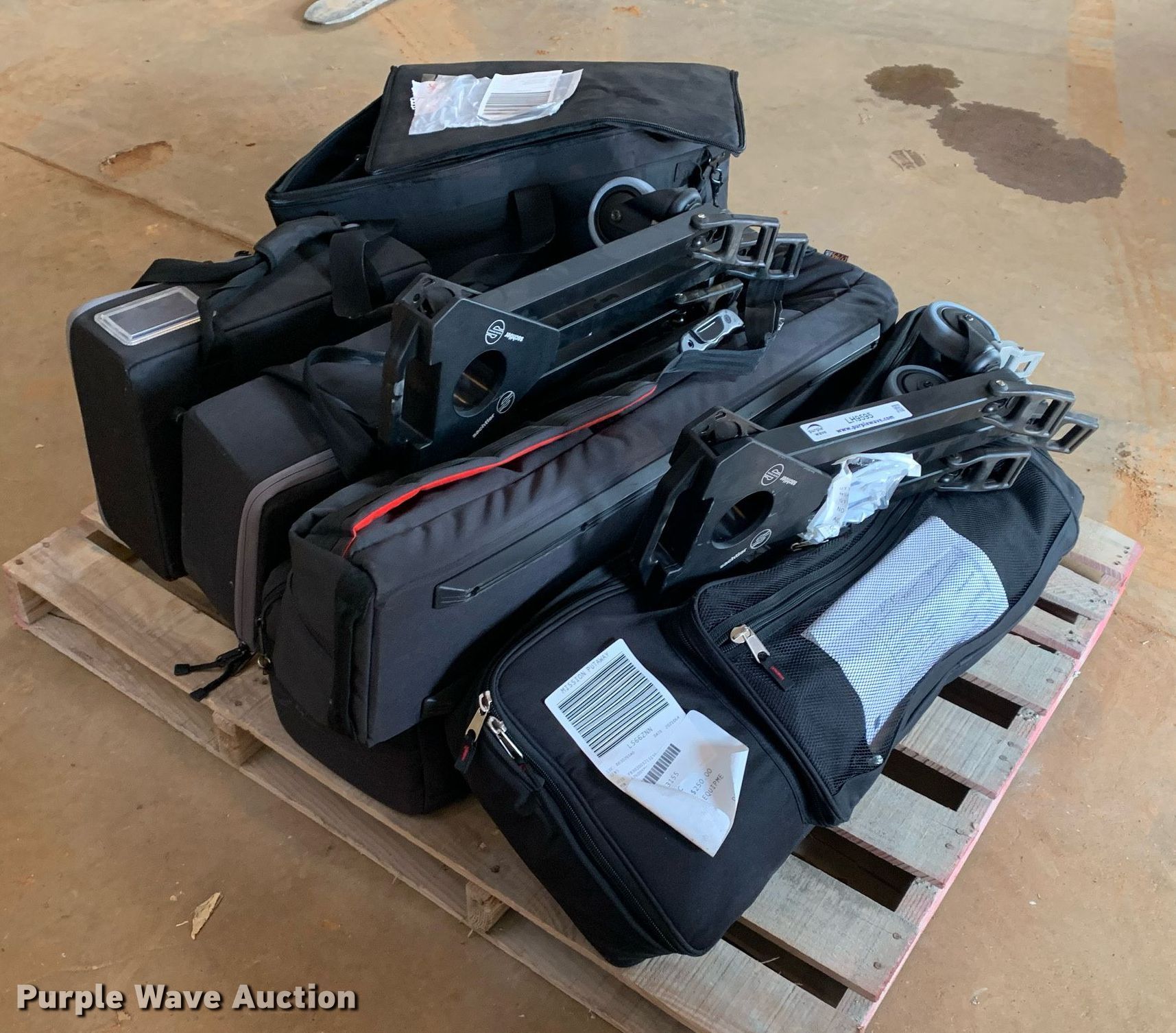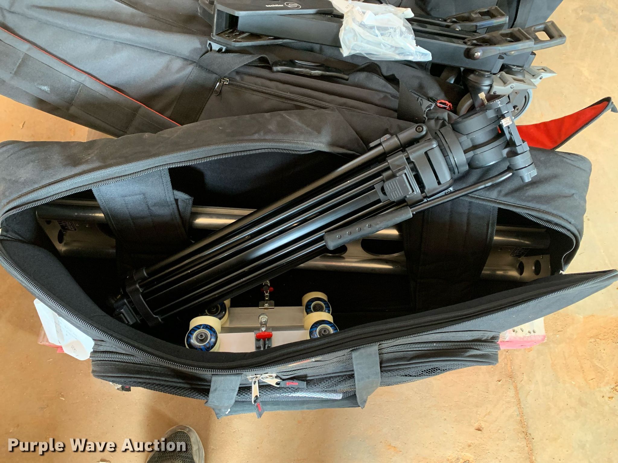 Purple Wave is selling a used Electronics in Texas. This item is a Photography equipment with the following: Tripods, Weights, Lights, Rolling stands, Storage bags