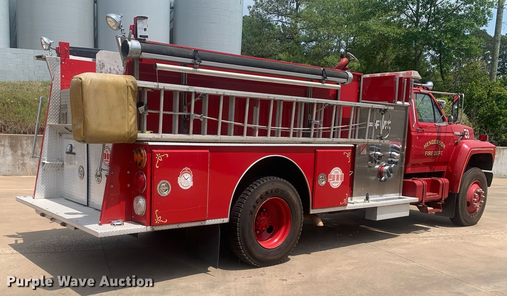 This 1989 Ford F800 pumper fire truck will sell to the highest bidder regardless of price.