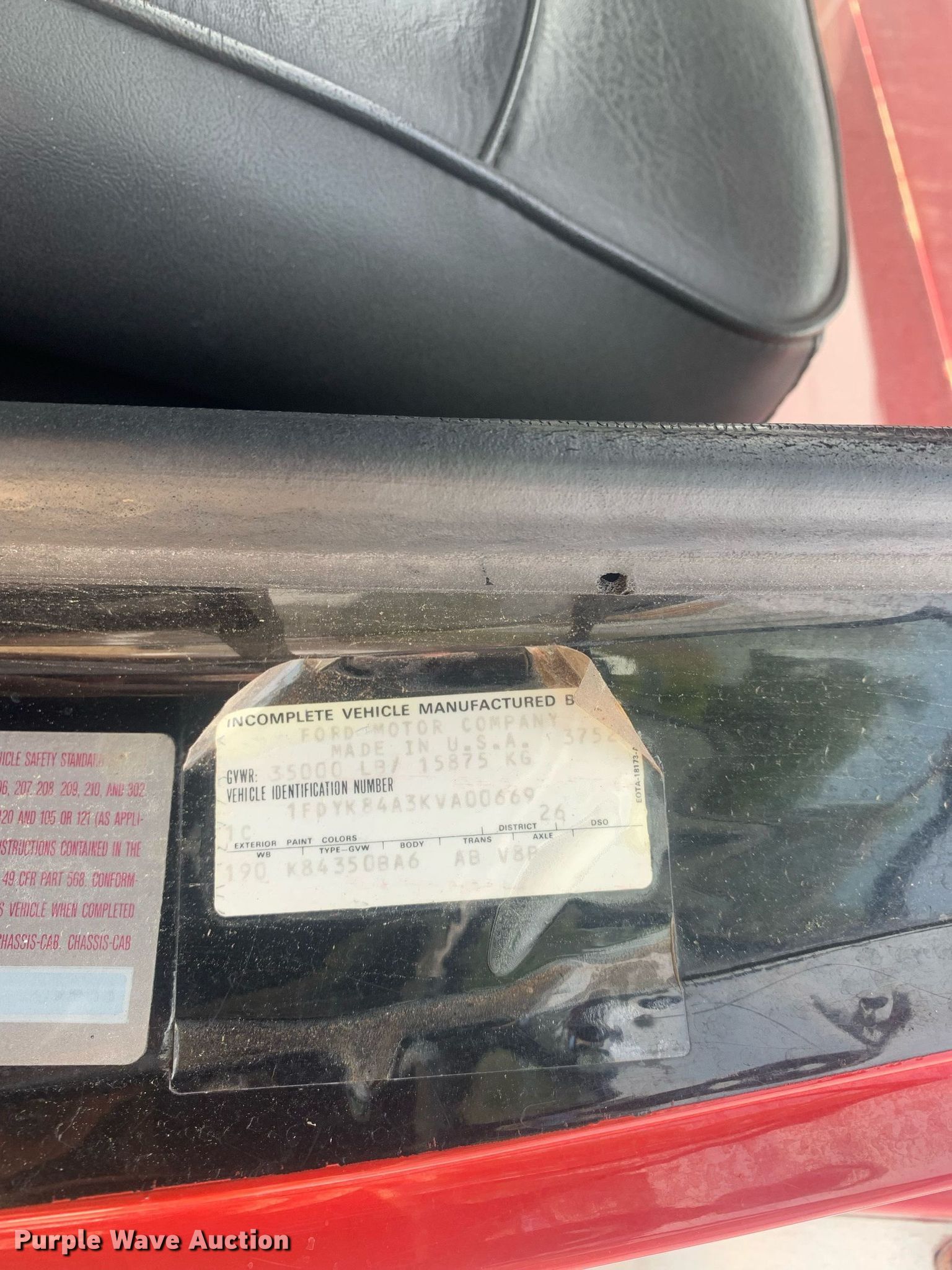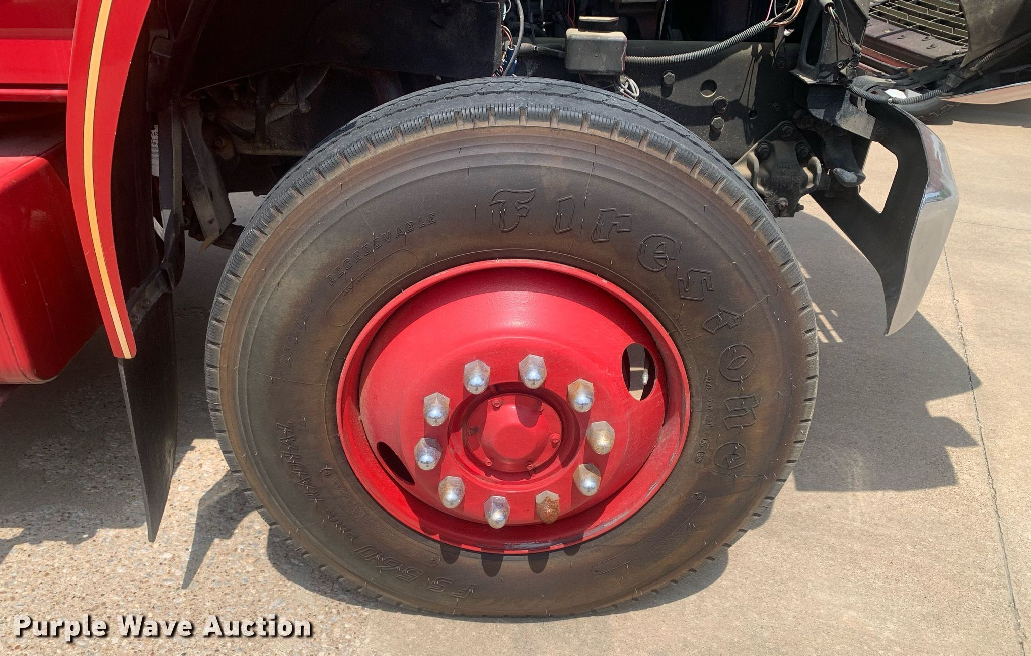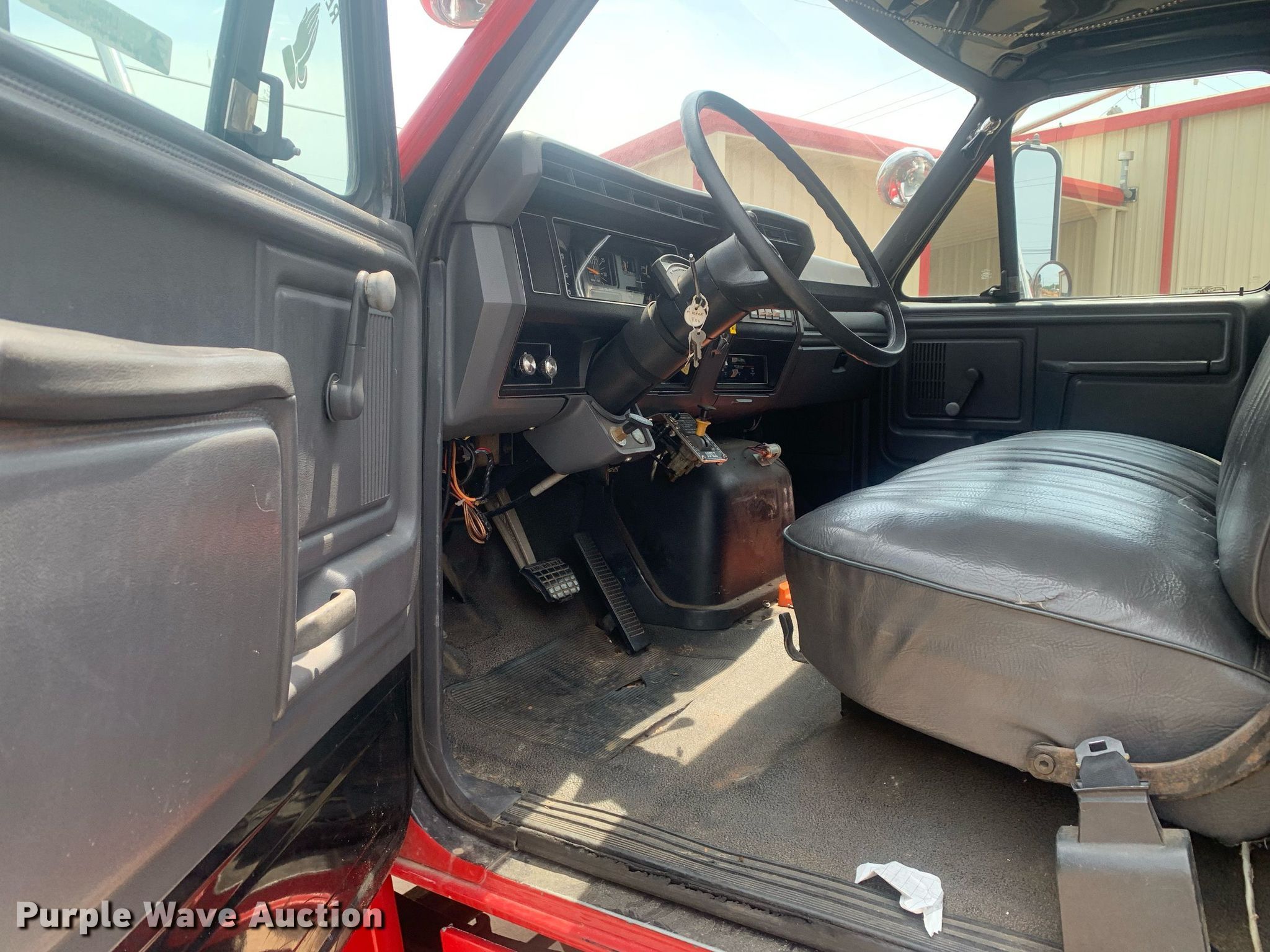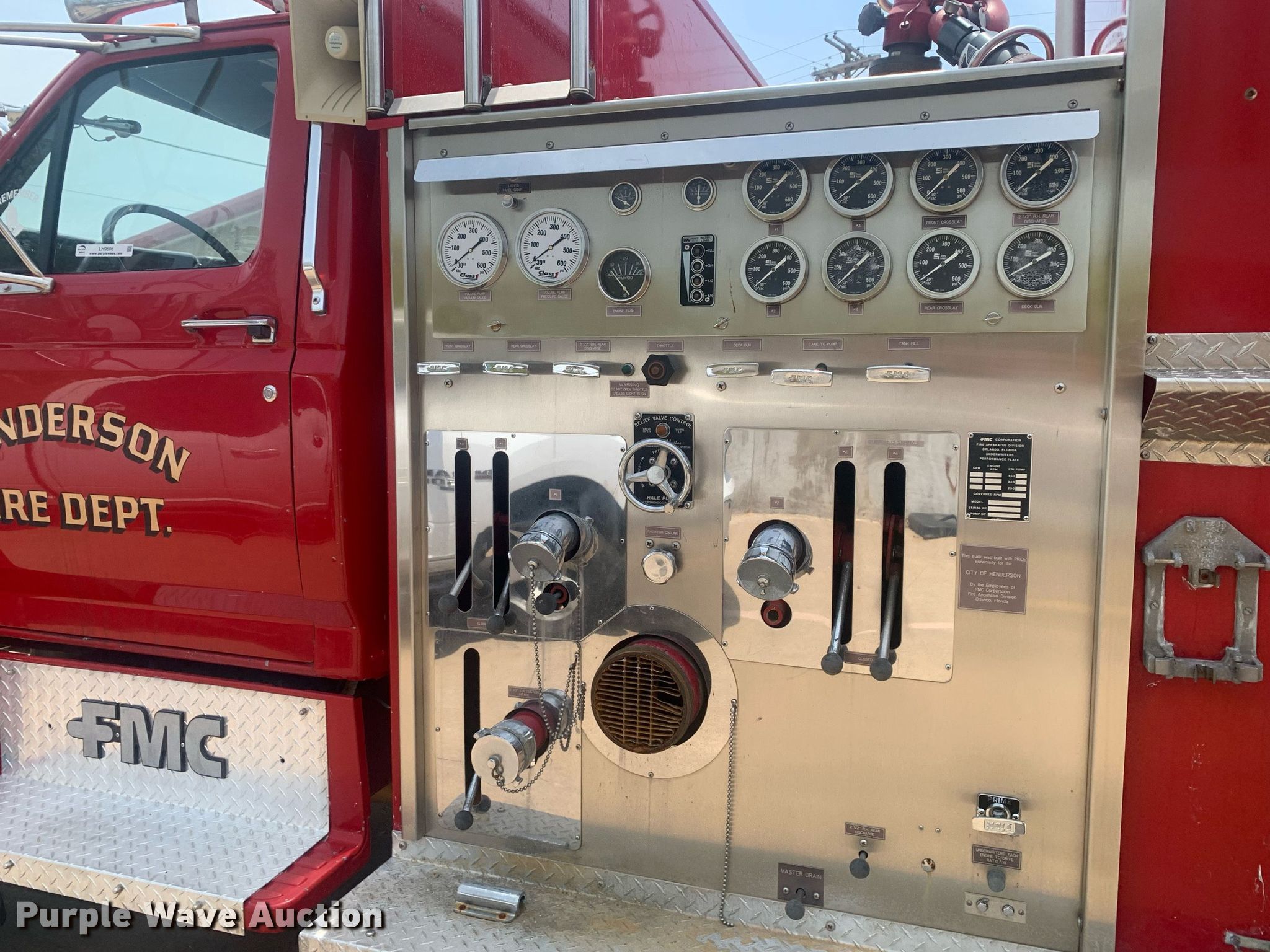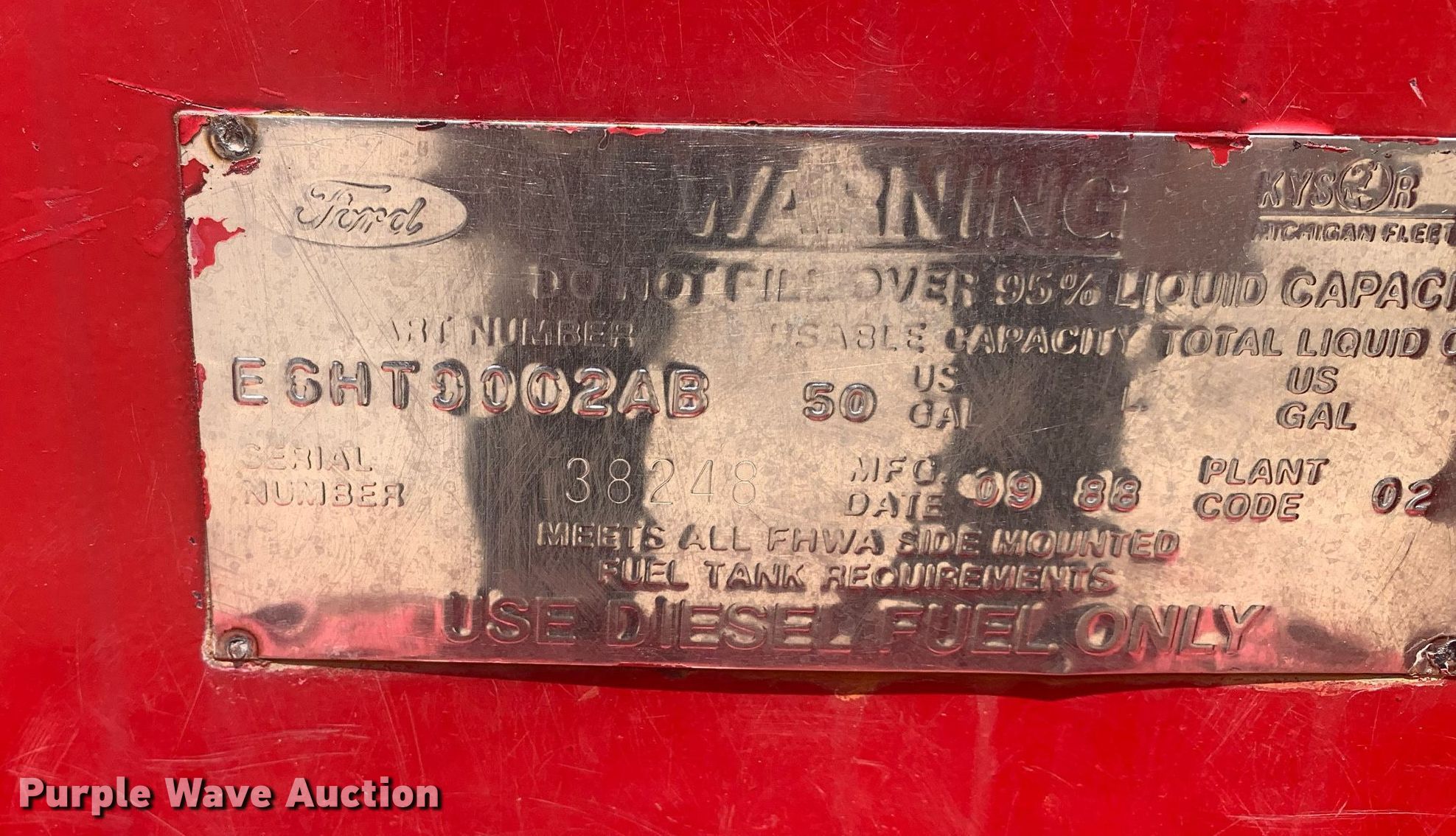 1989 Ford F800 pumper fire truck. Miles: 32,192 on odometer, VIN: 1FDYK84A3KVA00669. Engine Ford, Displacement: 7.8L, Cylinders: 6, Fuel type: Diesel. Transmission Automatic. Chassis Axles: Single, Suspension: Spring, Brakes: Air, GVWR: 35,000 lbs, Wheelbase: 190". Interior AC, Heat, Auxiliary controls. Features Fire truck body Pump 1,250 gpm, Ground ladder. Tires Size: 11R22.5. Notes Dead battery. Texas title. Title distribution may be delayed up to 14 days from verification of funds. City of Henderson, TX. 1203 Highland Drive. Henderson, TX 75652