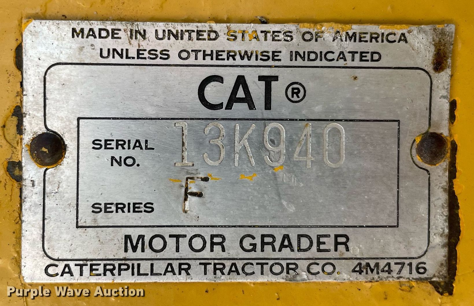 Purple Wave is selling a used Motor Grader in Illinois. This item is a 1968 Caterpillar 12F rigid frame motor grader with the following: Hours: 2,945 on meter, Serial: 13K940