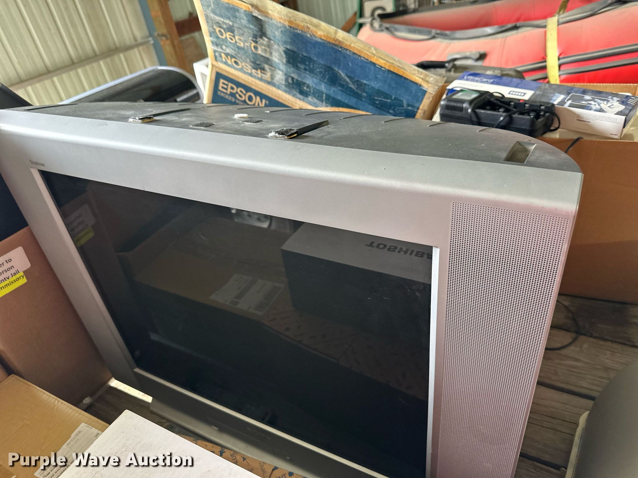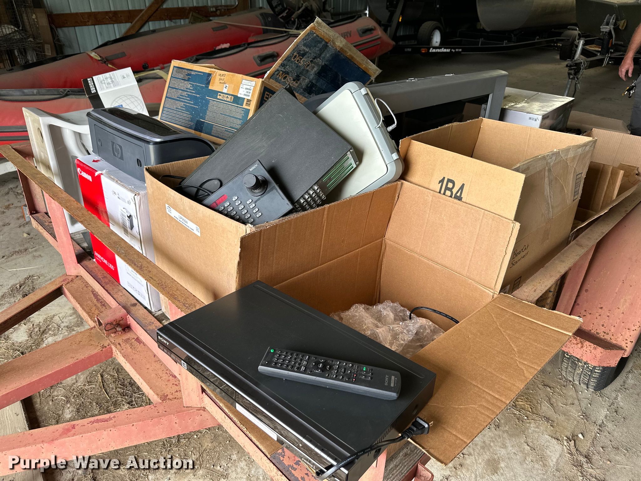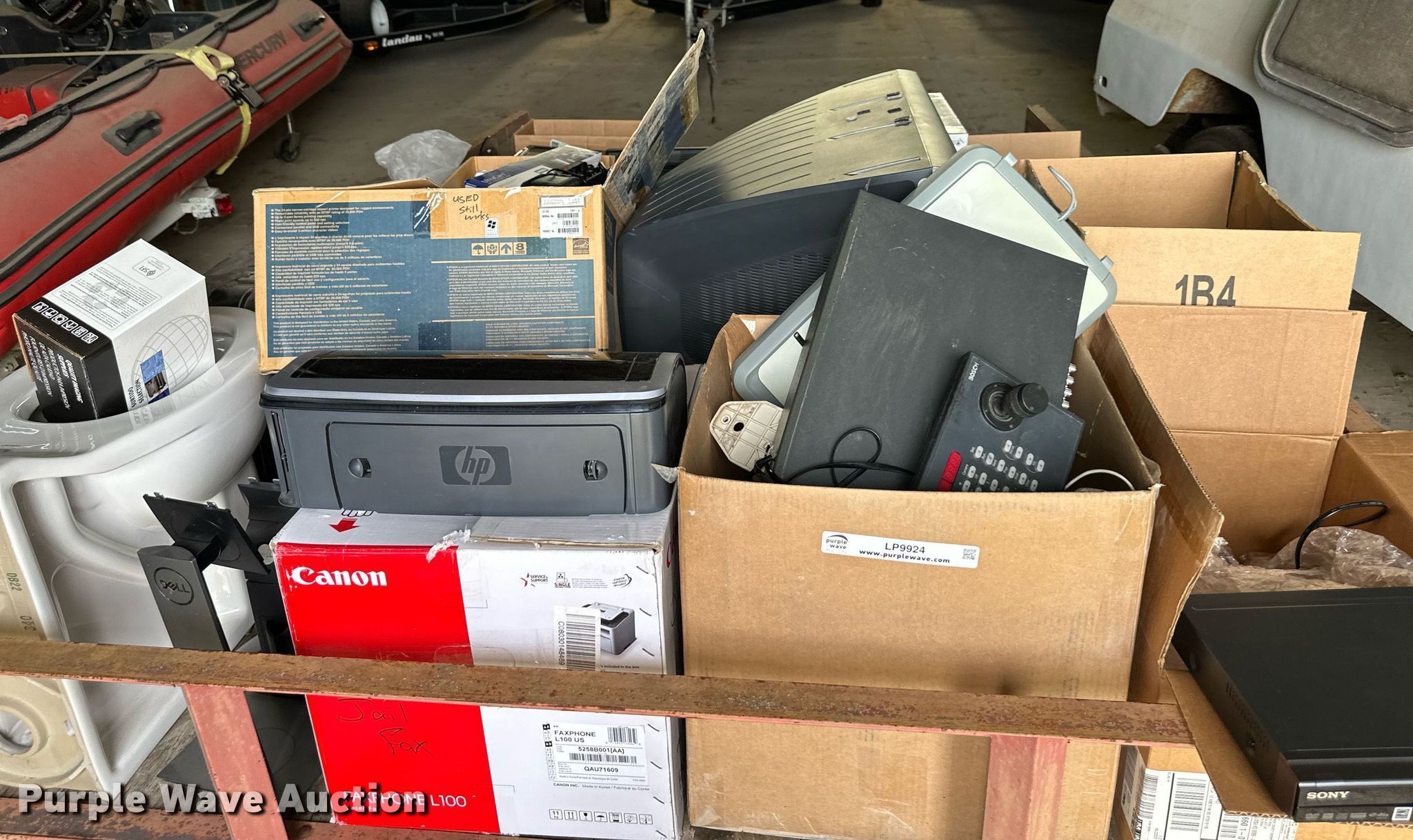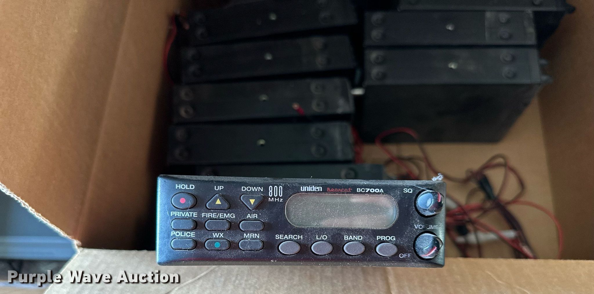 Purple Wave is selling a used Electronics in Kansas. This item is a Electronics with the following: (3) monitor mounts, (4) fax machines, (2) printers, Bosch camera system, (11) BearCat 800A scanners, Television, Sony DVD player, (2) Meridian phones, Toshiba VHS player, Poly communication video system, (10) Maxon VHF SM-4150M, (5) Motorola VHF radios, (2) monitors, Wave alarm system, (2) Custom KR101 Custom Pro1000 radar unit, LamCraft camera, Elton P420 card printer, Toilet and more