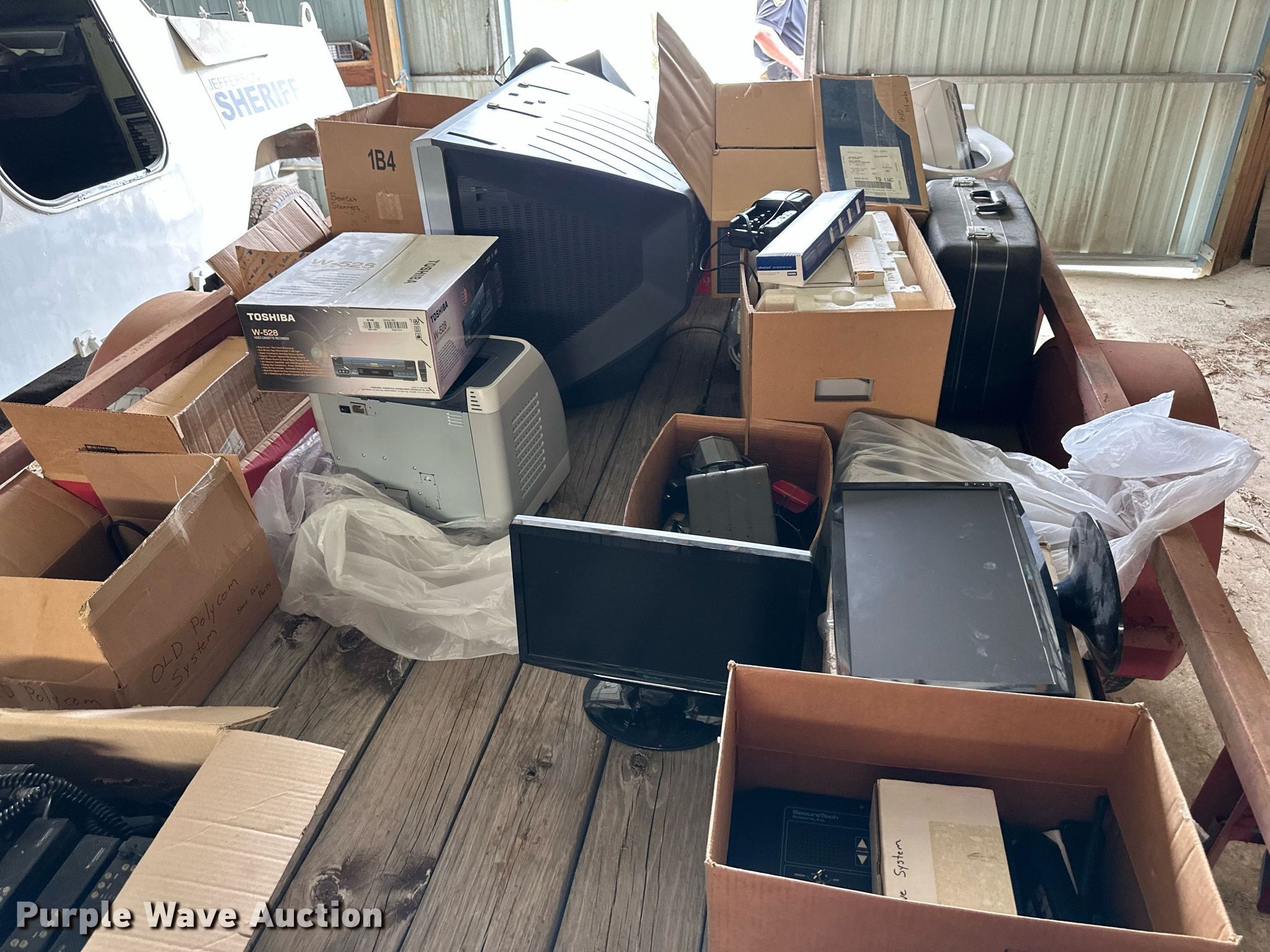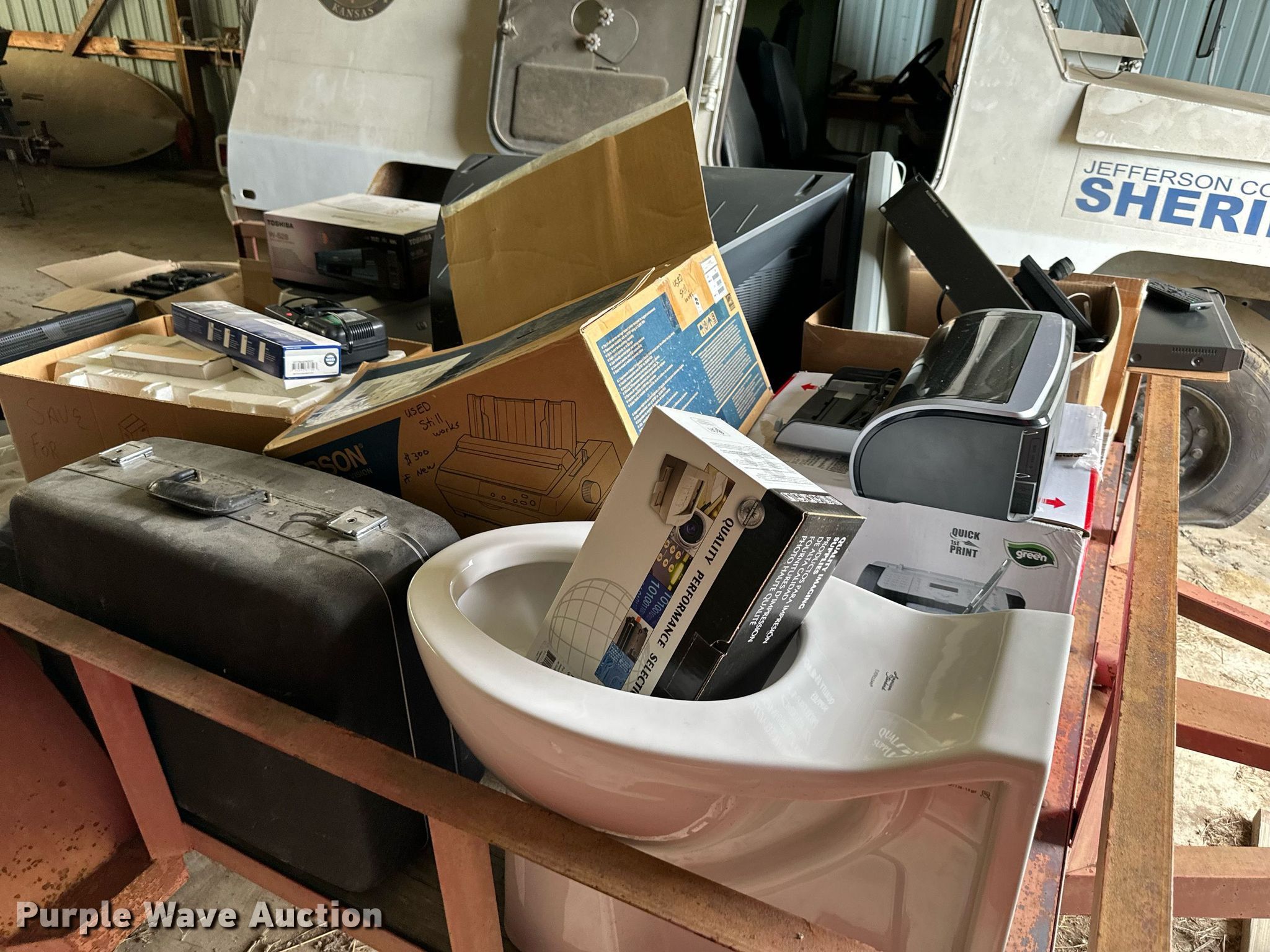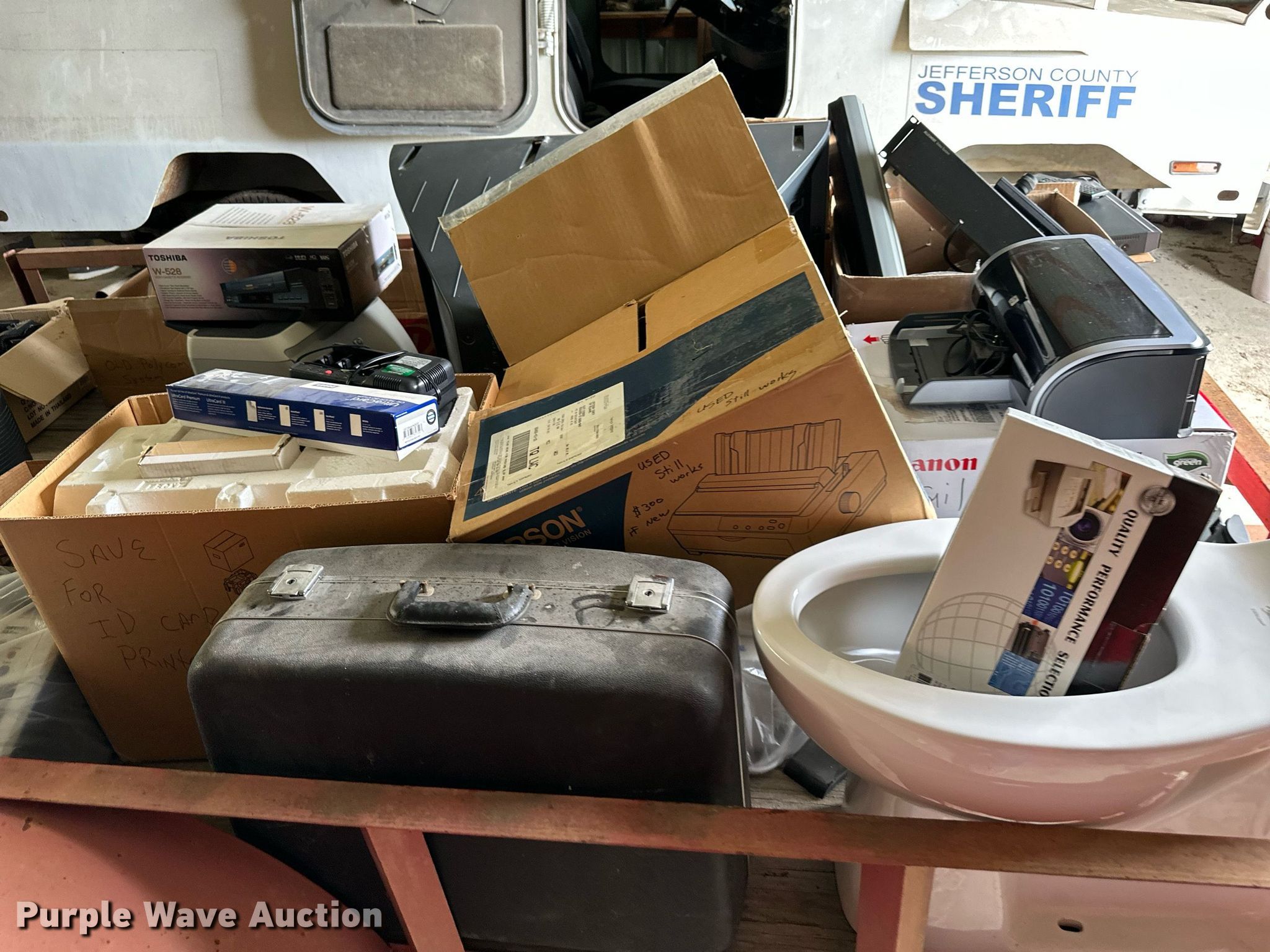 Electronics. (3) monitor mounts, (4) fax machines, (2) printers, Bosch camera system, (11) BearCat 800A scanners, Television, Sony DVD player, (2) Meridian phones, Toshiba VHS player, Poly communication video system, (10) Maxon VHF SM-4150M , (5) Motorola VHF radios, (2) monitors, Wave alarm system, (2) Custom KR101 Custom Pro1000 radar unit, LamCraft camera, Elton P420 card printer , Toilet and more. Jefferson Co. Sheriff Dept.. 1360 Walnut Street. Oskaloosa, KS 66066