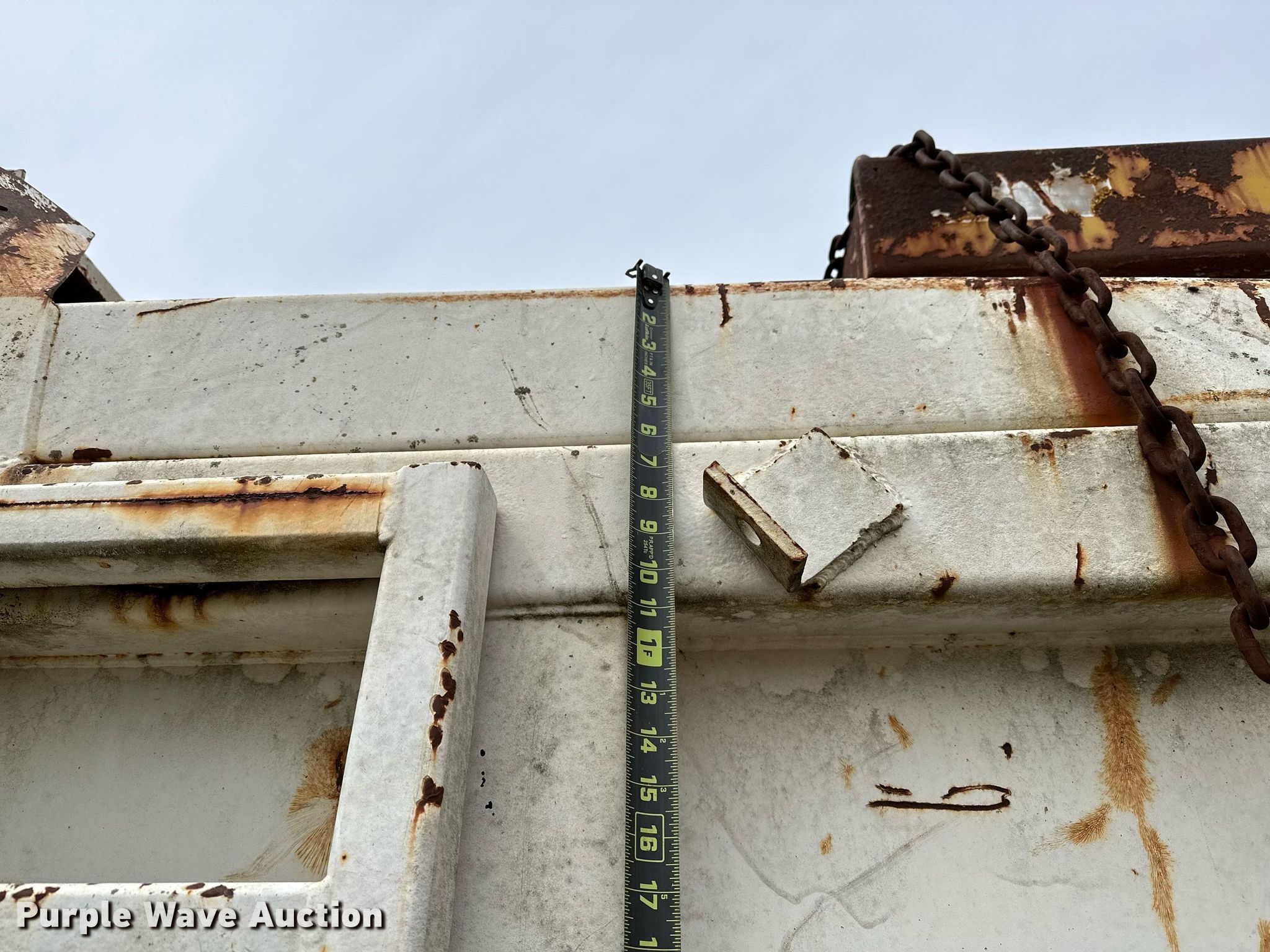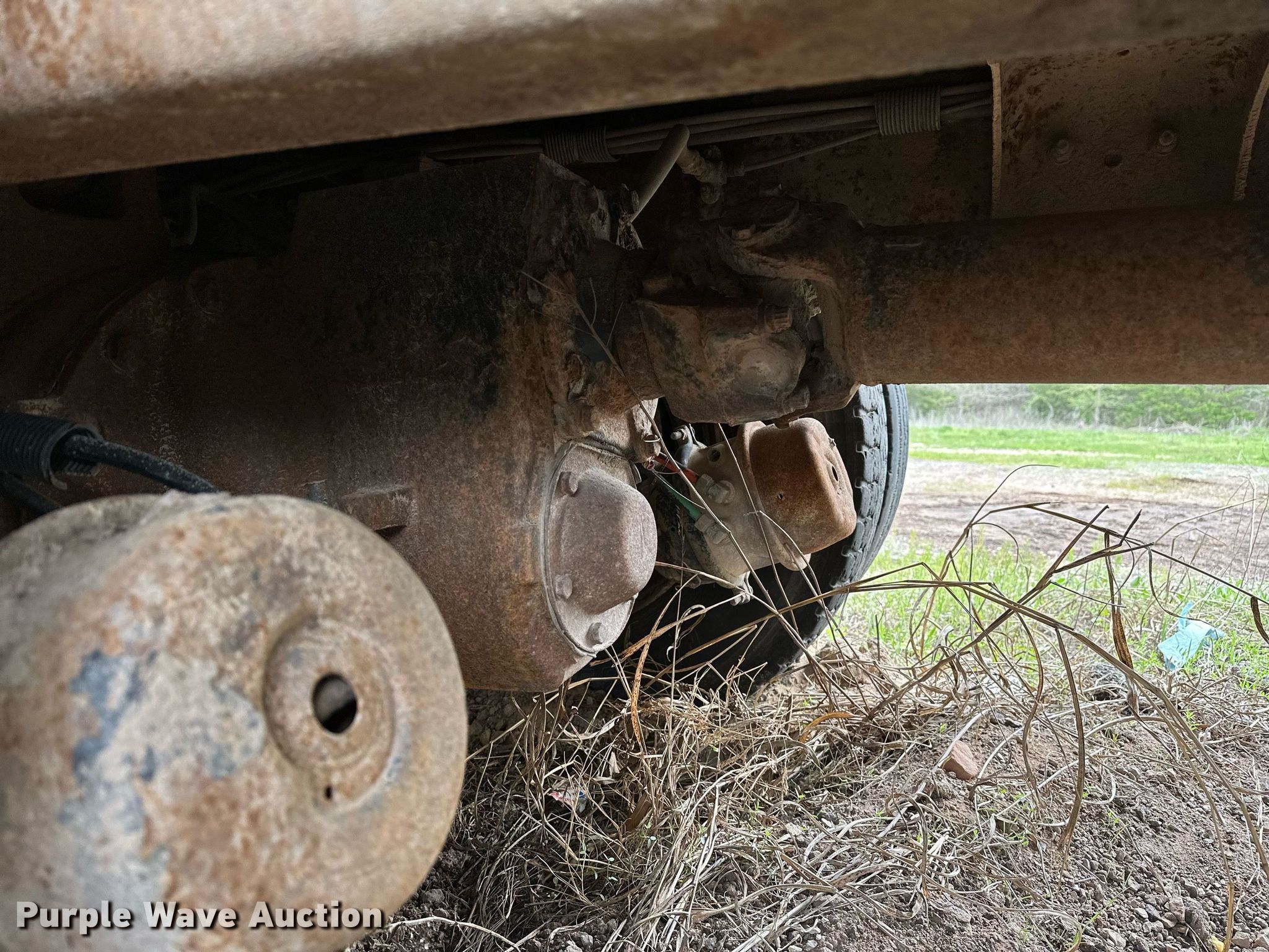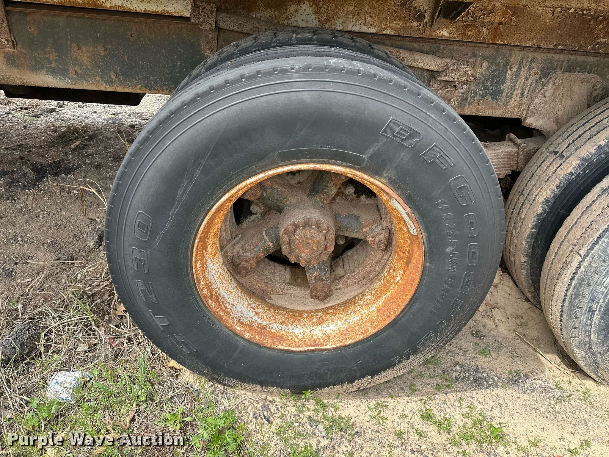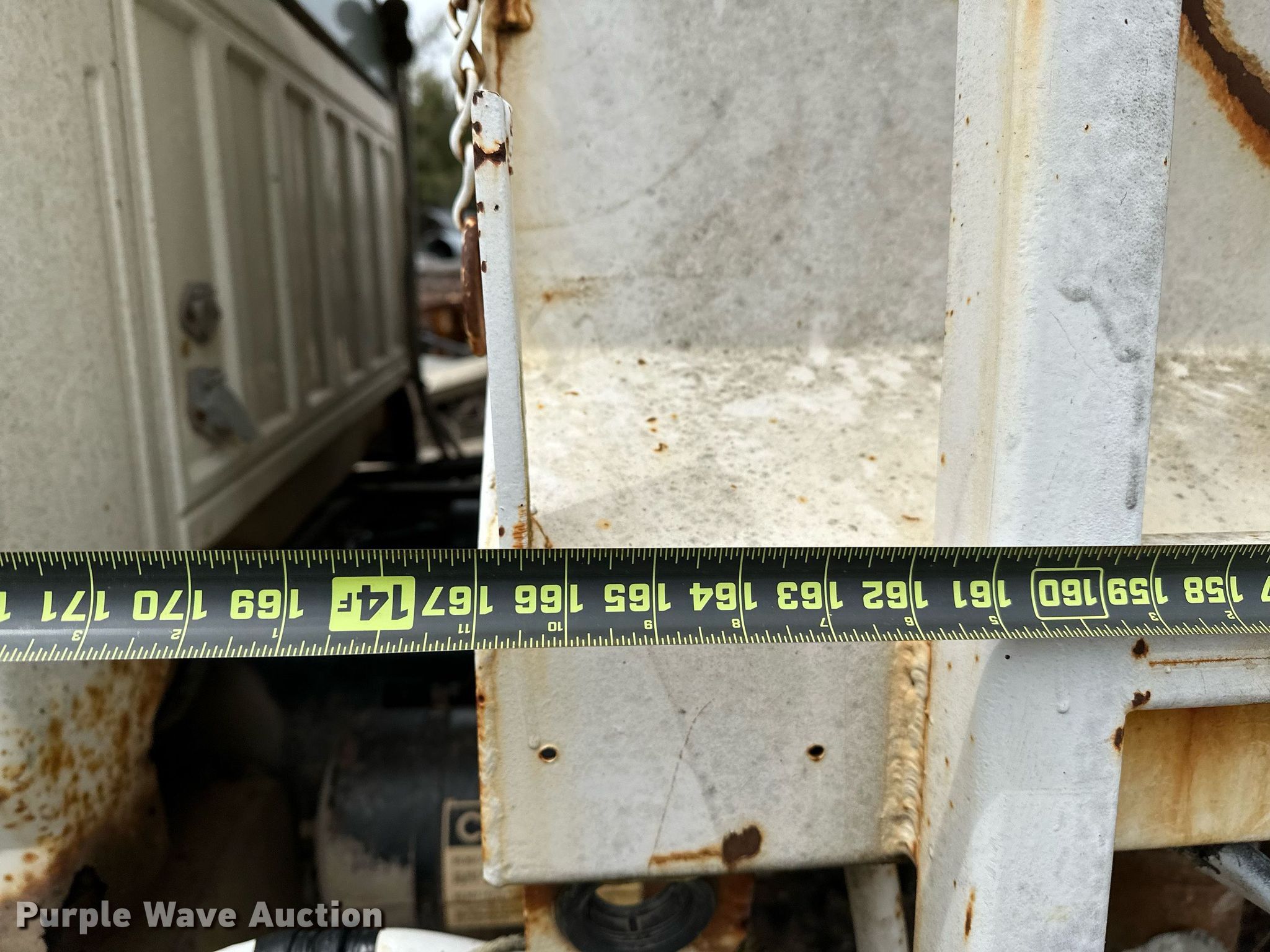 1993 Ford FT900 dump truck. Miles: 104,115 on odometer, VIN: 1FDYL90E1PVA09955. Engine Cummins, Displacement: 8.3L, Cylinders: 6. Transmission Automatic. Chassis Axles: Tandem, Differential lock: Inter-axle, Suspension: Spring, Brakes: Air, PTO, GVWR: 46,000 lbs. Interior Heat. Features Dump bed Galion, 14' L x 96" W, Side height: 45", Bed type: Steel, Ram: Single, Spreader Dimensions: 144" L x 80" W x 49" H, Plow Width: 132". Tires Size: 11R22.5. Notes Tire off bead, Rodent damage, Contents not included, Unknown operating condition of plow and spreader , Non-operational engine, Non-operational unit. Oklahoma title. Creek County, OK. 620 Industrial Rd. Bristow, OK 74010