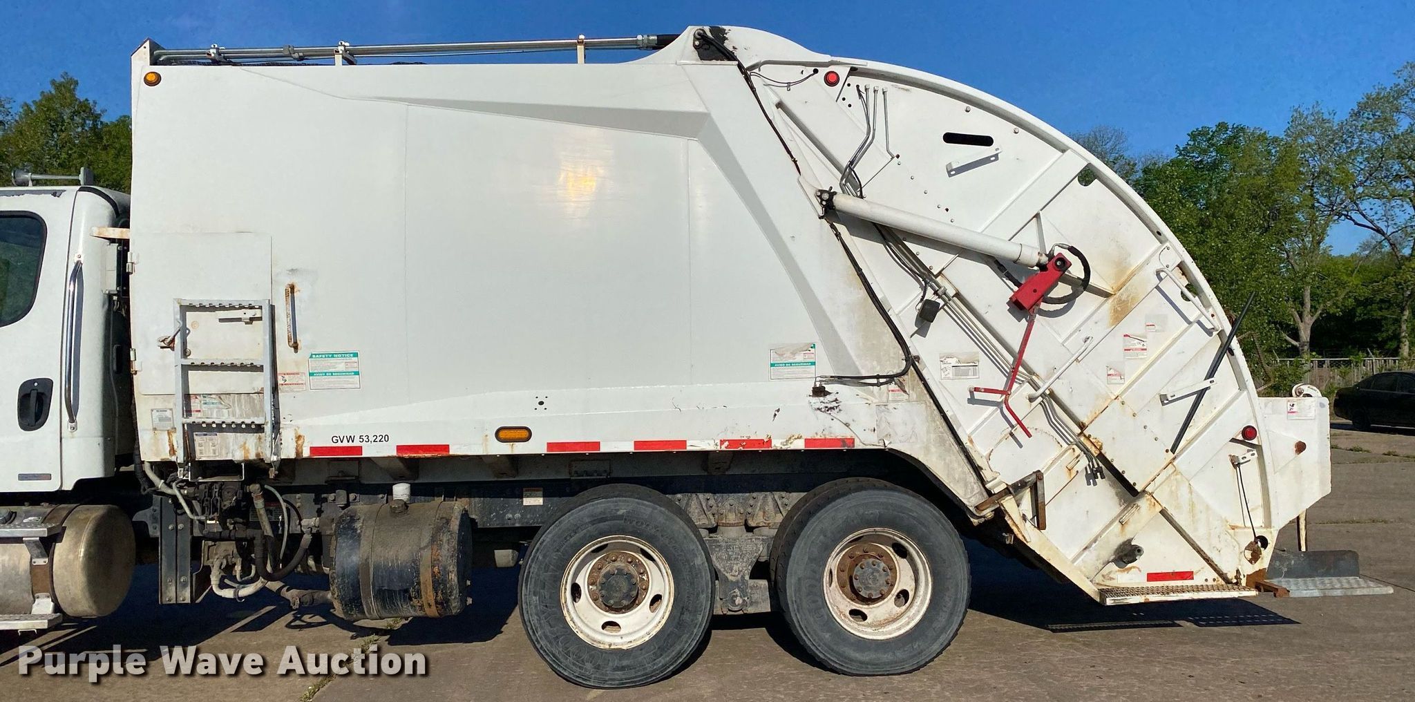 Purple Wave is selling a used Refuse Truck in Oklahoma. This item is a 2011 Freightliner Business Class M2 refuse truck with the following: Miles: 186,871 on odometer, Hours: 16,087 on meter, VIN: 1FVHCYBS6BDAZ8185