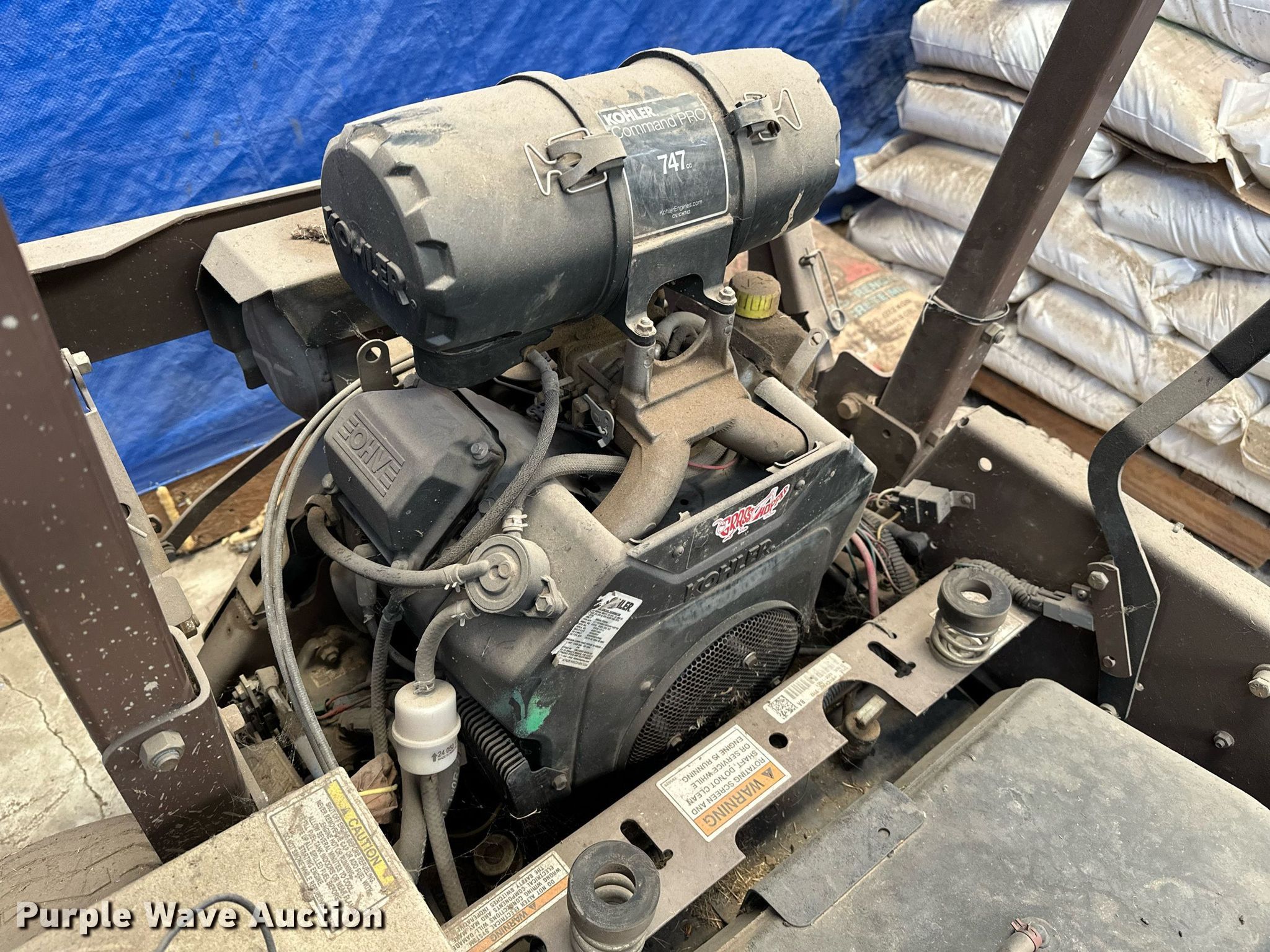 Grasshopper 225K ZTR lawn mower. Hours: 1,232 on meter, Cutting width: 48", Serial: 4330111551. Engine Kohler CH742, Displacement: 747 cc, Cylinders: 2, Fuel type: Gas. Transmission Hydrostatic. Operators station OROPS. Features Grass bagger. Tires Front: 13x6.50-6, Rear: 23x9.5-12. Notes Battery missing, Flat tires, Non-operational unit. Connors State College. 700 College Rd.. Warner, OK 74469