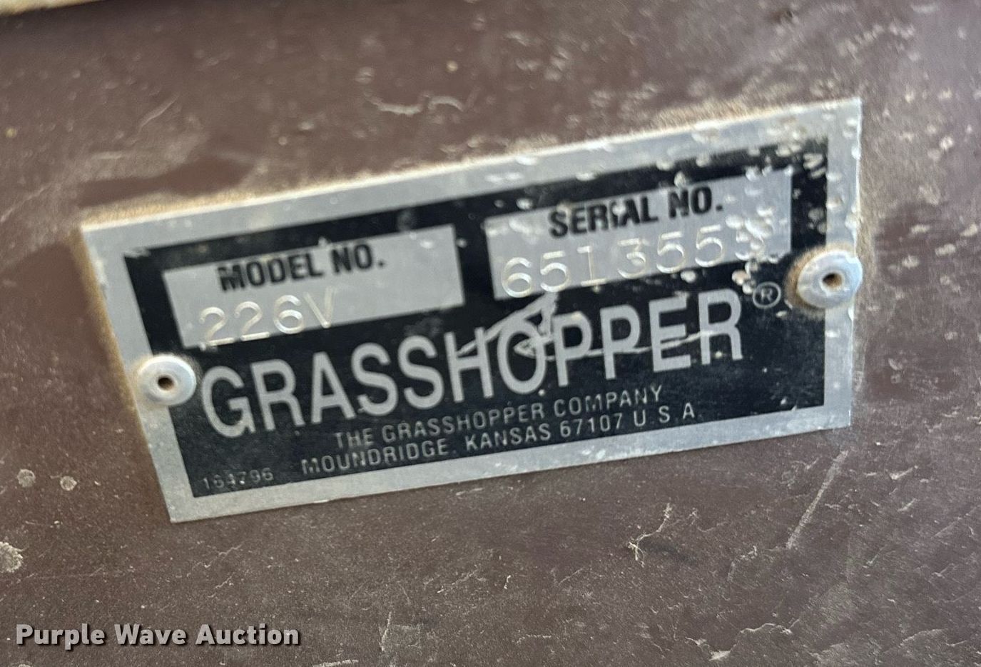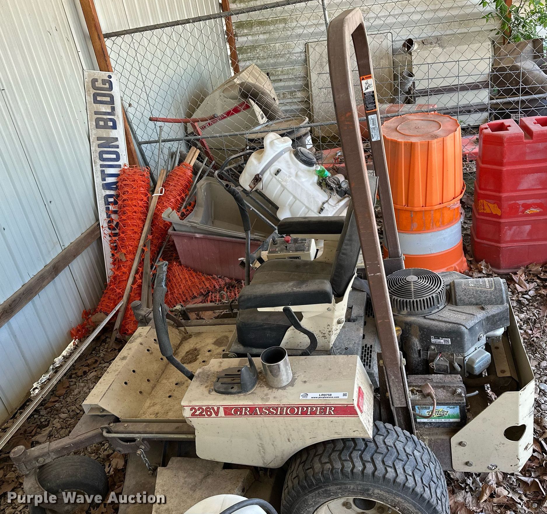 Purple Wave is selling a used Commercial Turf Mower in Oklahoma. This item is a Grasshopper 226V ZTR lawn mower with the following: Hours: 1,488 on meter, Cutting width: 60", Serial: 6513555