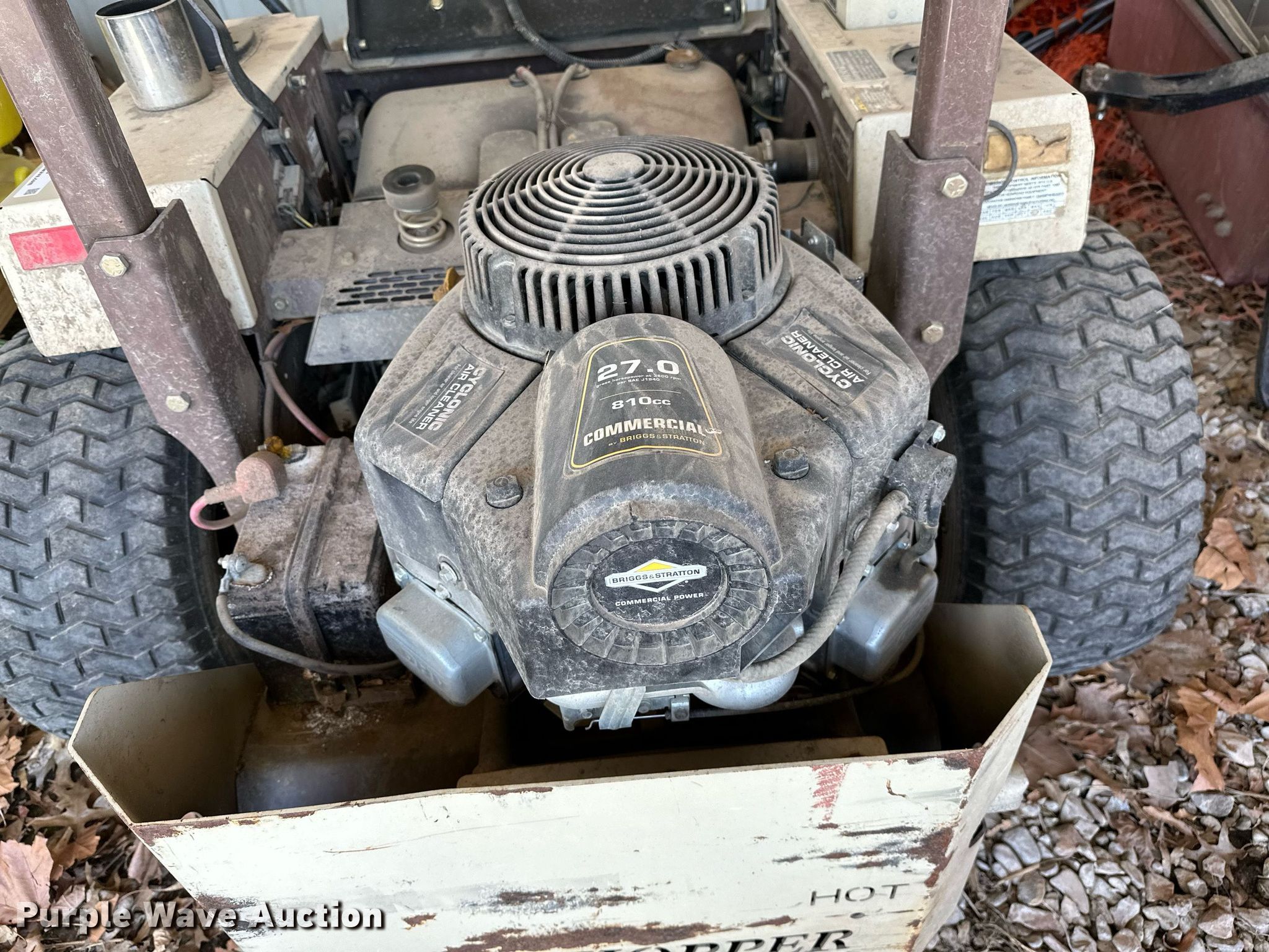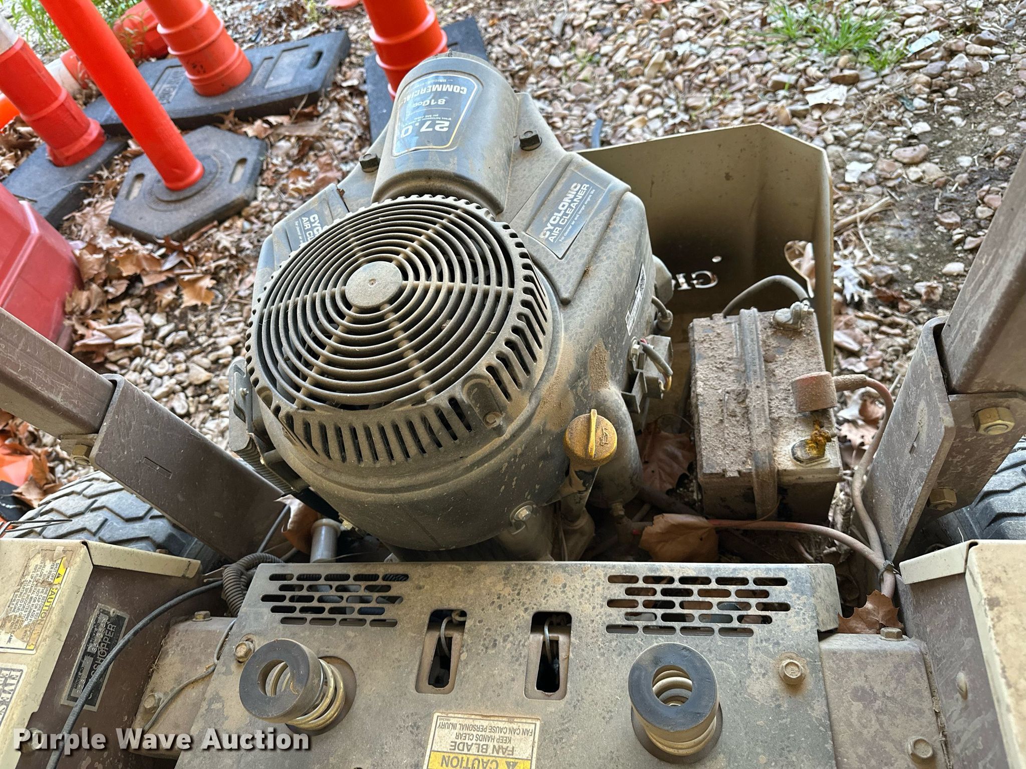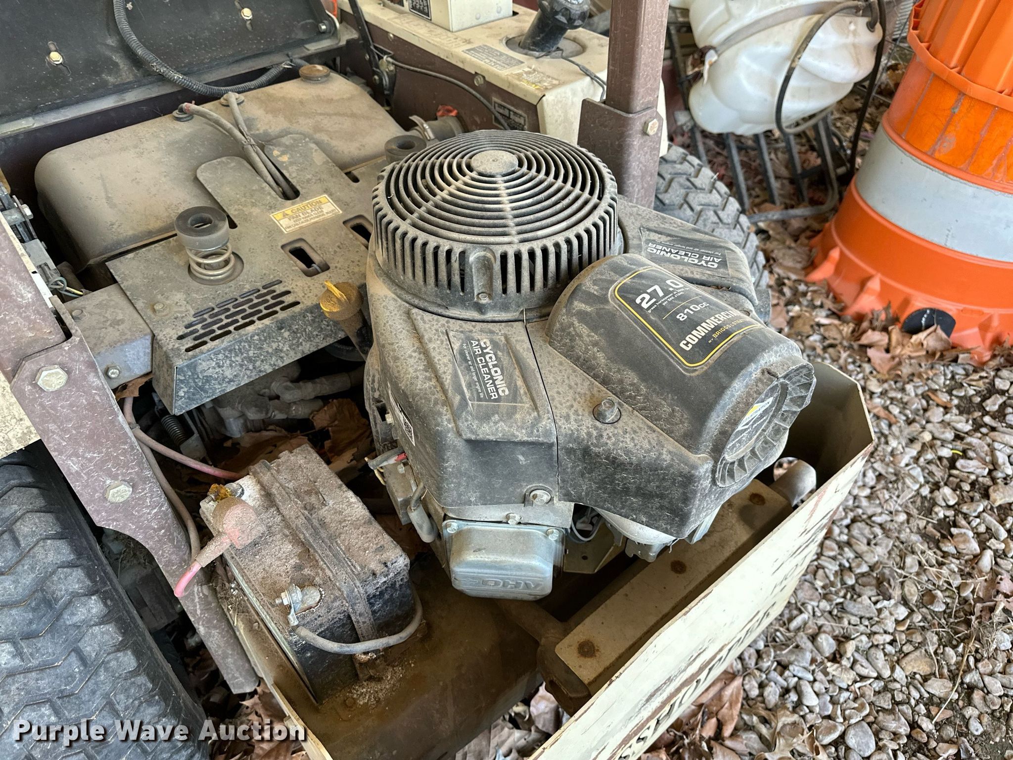 Grasshopper 226V ZTR lawn mower. Hours: 1,488 on meter, Cutting width: 60", Serial: 6513555. Engine Briggs & Stratton , Serial: 170621YG59959, Displacement: 810 cc, Cylinders: 2, Fuel type: Gas. Transmission Hydrostatic. Operators station OROPS. Tires Rear: 23x10.50-12. Notes Dead battery, Unknown operating condition. Connors State College. 700 College Rd.. Warner, OK 74469