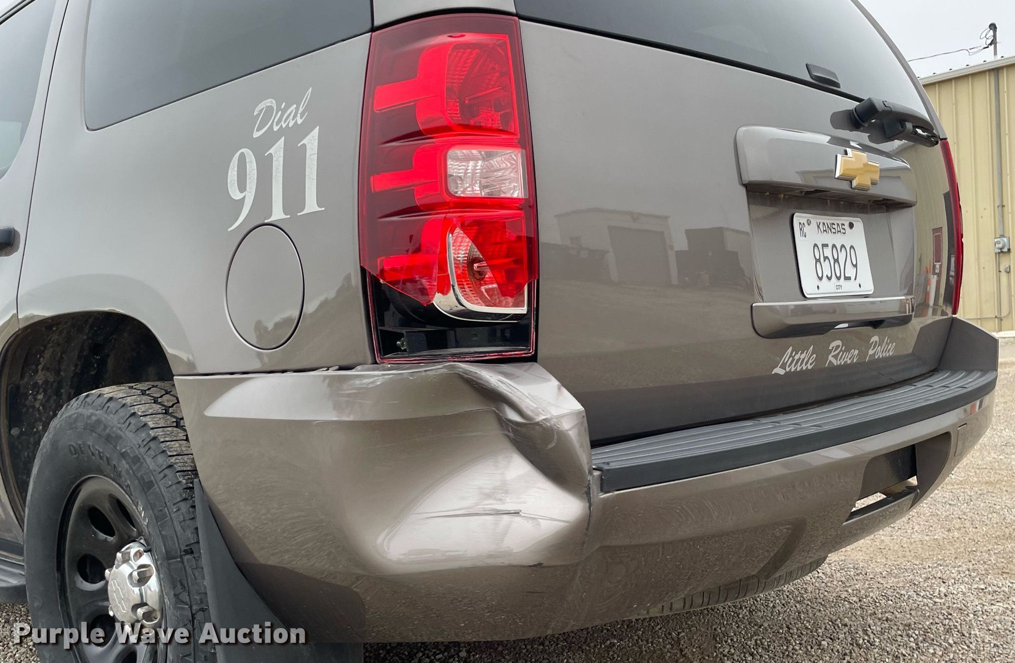 2013 Chevrolet Tahoe Police SUV. Miles: 90,784 on odometer, VIN: 1GNLC2E00DR286711. Engine Displacement: 5.3L V8 OHV, Cylinders: 8, Fuel type: Gas. Transmission Automatic. Interior AC, Heat, Seat: Power driver, Power passenger, Power windows, Power locks, Cruise control. Tires Size: 265/70R17. Notes Decals will be removed prior to auction , Center console missing. Kansas title. Title distribution may be delayed up to 14 days from verification of funds. City of Little River. Little River, KS 67457