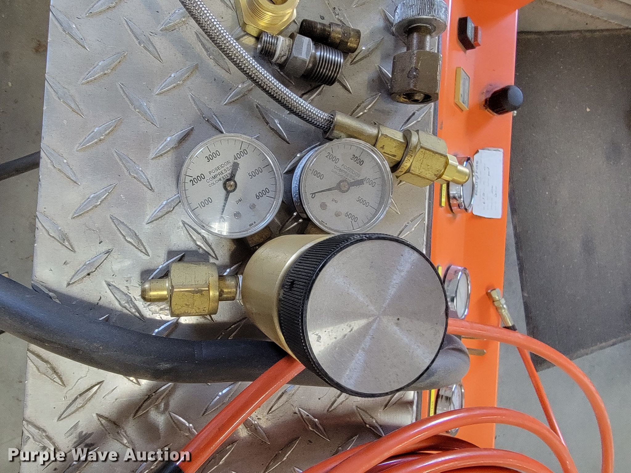Purple Wave is selling a used Air Compressor in Iowa. This item is a Poseidon SCBA air compressor with the following: 230 Volts, (7) 4,500 PSI bottles