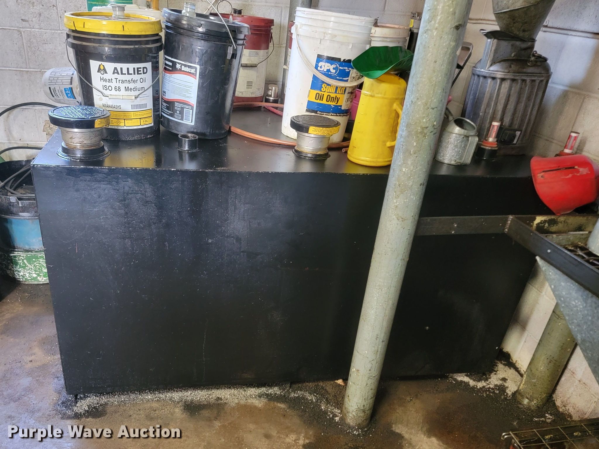 Purple Wave is selling a used Fuel and Lube in South Dakota. This item is a (12) tanks with the following: (10) oil tanks, Capacity: 55 gallons, Stands, Waste oil tank, Capacity: Approx. 500 gallons, 72" L x 49" W x 40" H, Waste anti-freeze tank, Capacity: Approx. 100 gallons