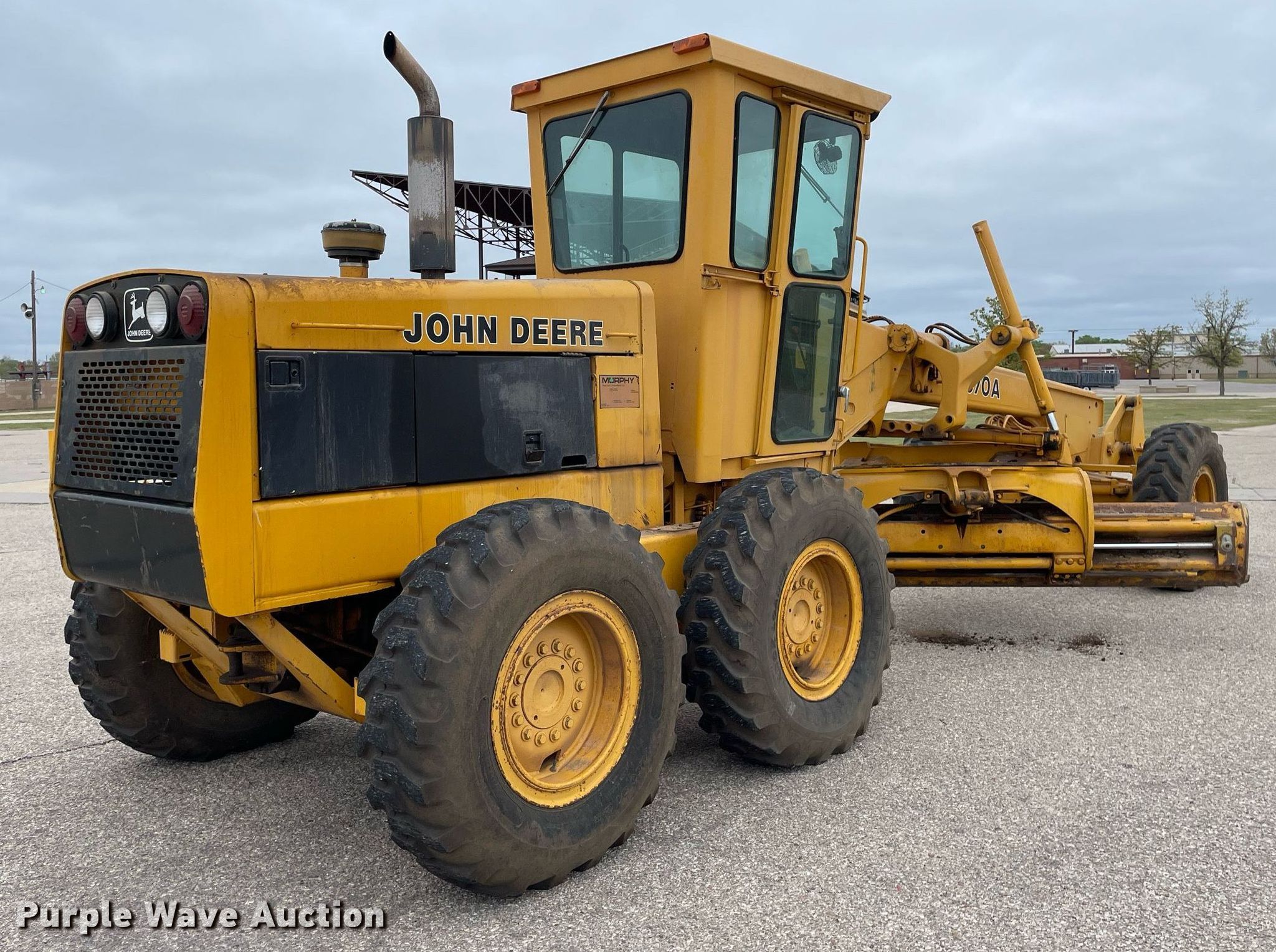 Purple Wave is selling a used Motor Grader in Kansas. This item is a 1984 John Deere 670A motor grader with the following: Hours: 4,437 on meter, Serial: DW670AX500069