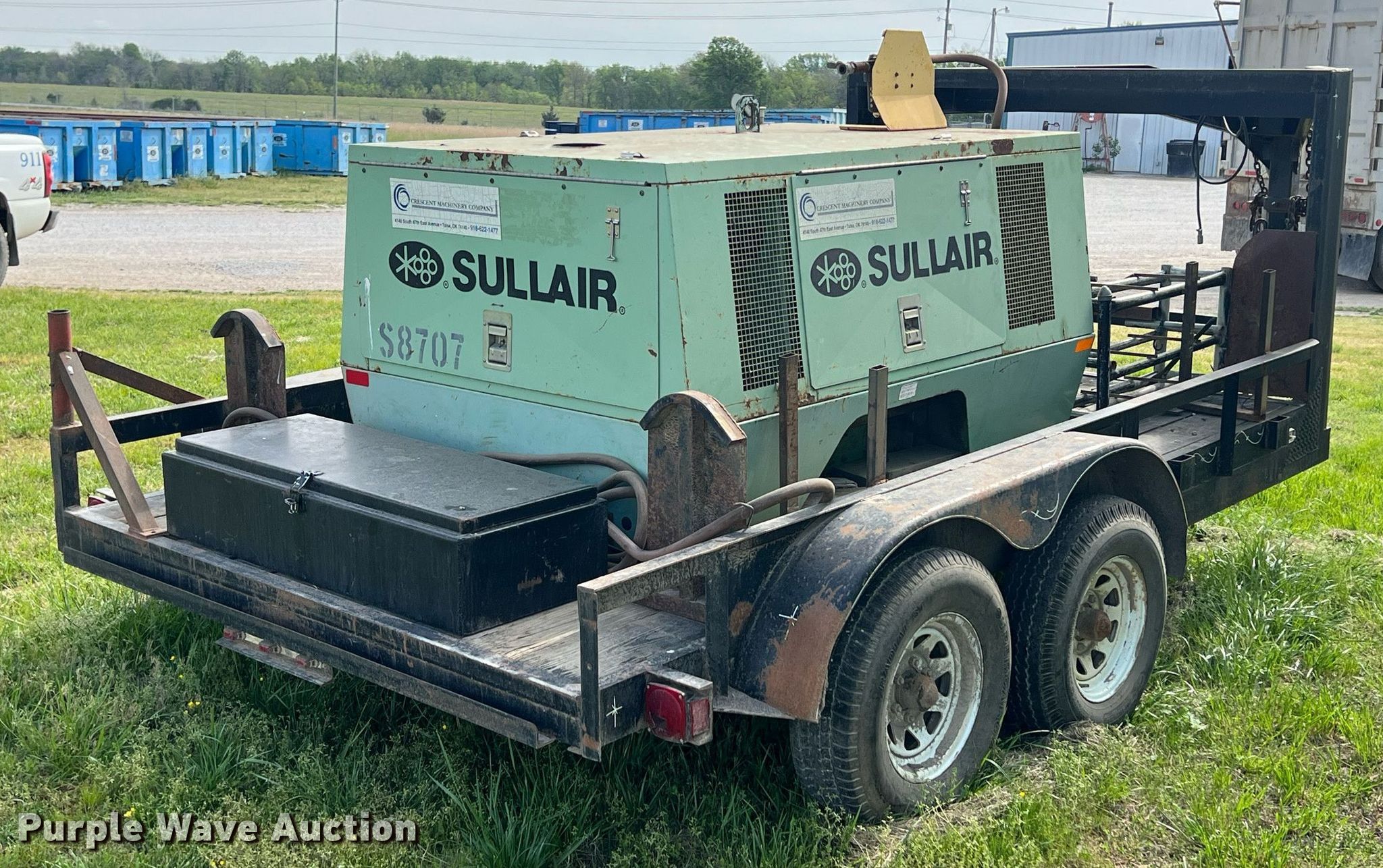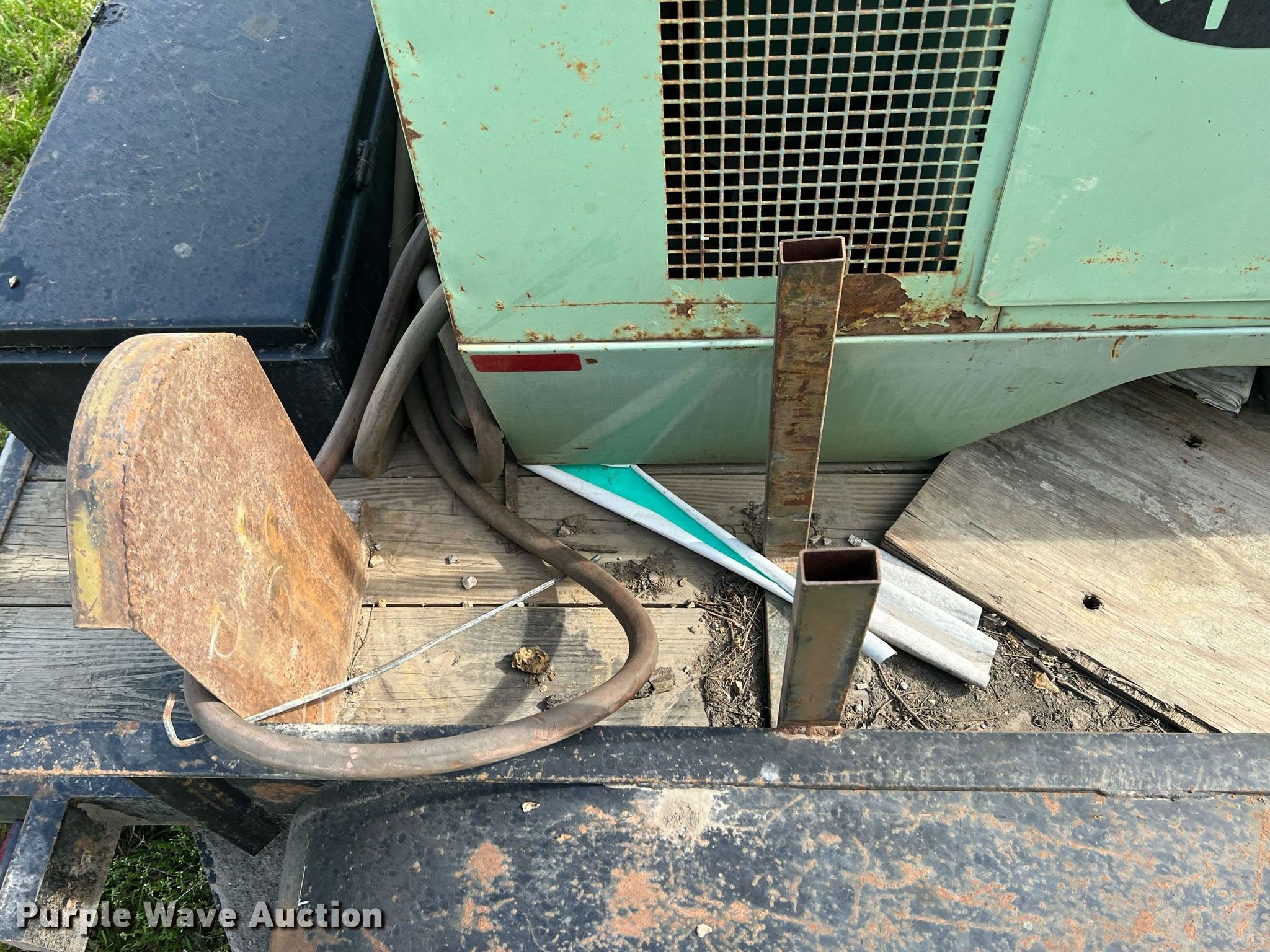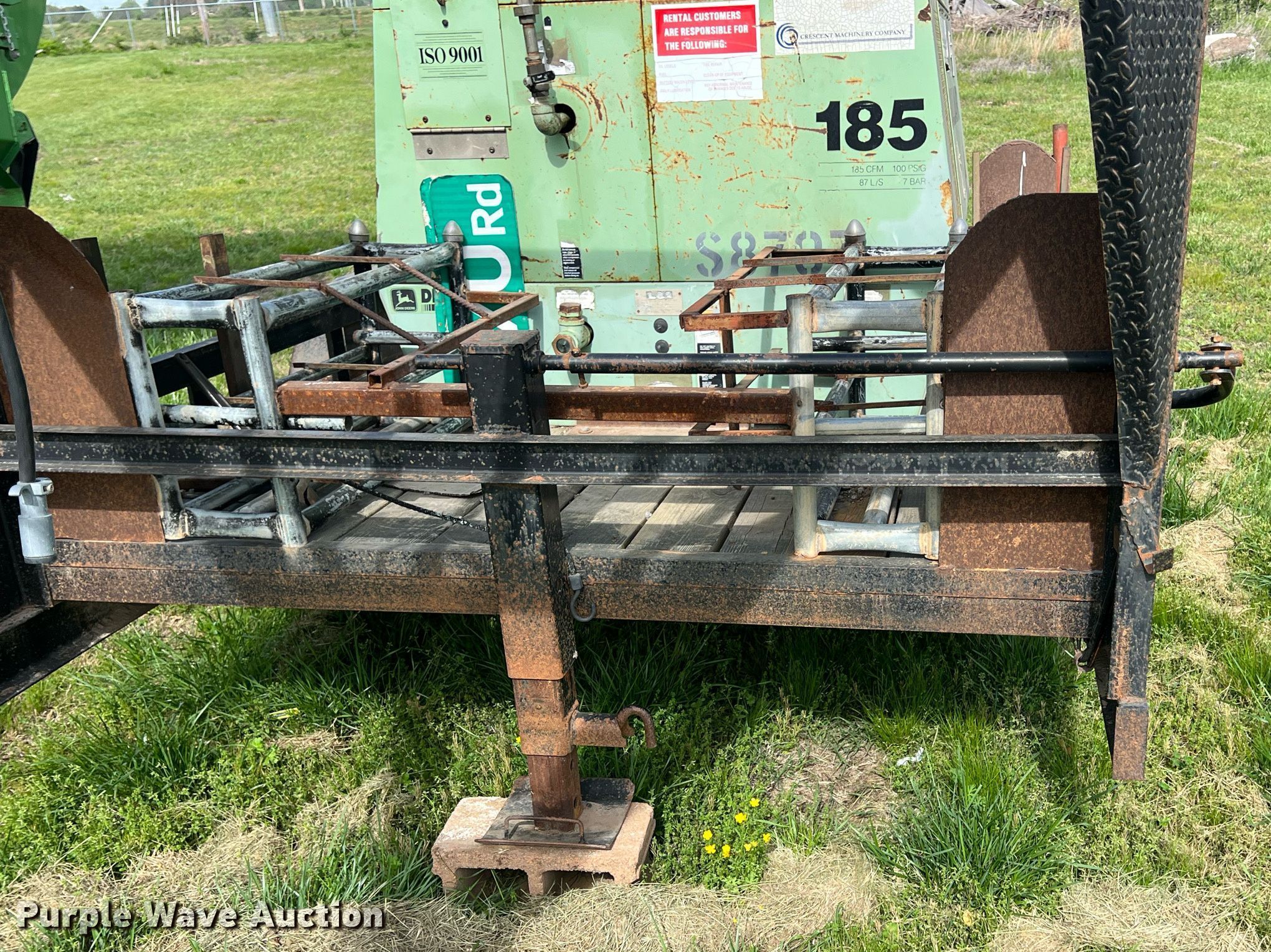 Shop built equipment trailer. Dimensions. Overall: 19' L x 8' W, Deck: 12' x 7' W x 2" W. Features Deck type: Wood, Pneumatic post hole driver. Chassis Hitch: Gooseneck, Landing gear: Single, Suspension: Spring, Brakes: Electric, Axles: Tandem. Tires Size: 7.00-15LT. Sullair 185 air compressor Serial: 004-118707. Engine John Deere, Cylinders: 4, Fuel type: Diesel. Features Air compressor CFM: 185, PSI: 100. Transfer of ownership documentation will be a bill of sale. Craig County E-911. Vinita, OK 74301