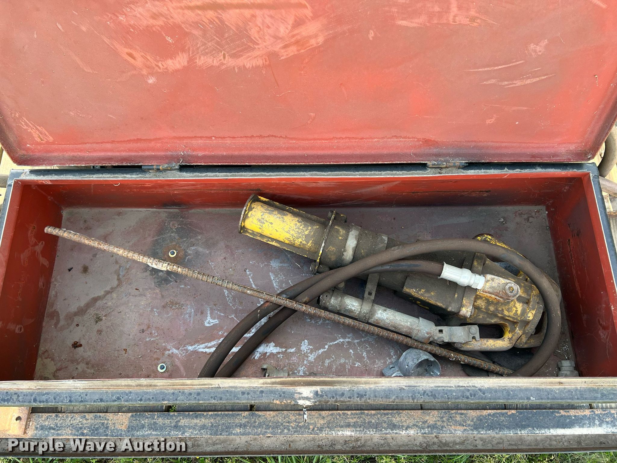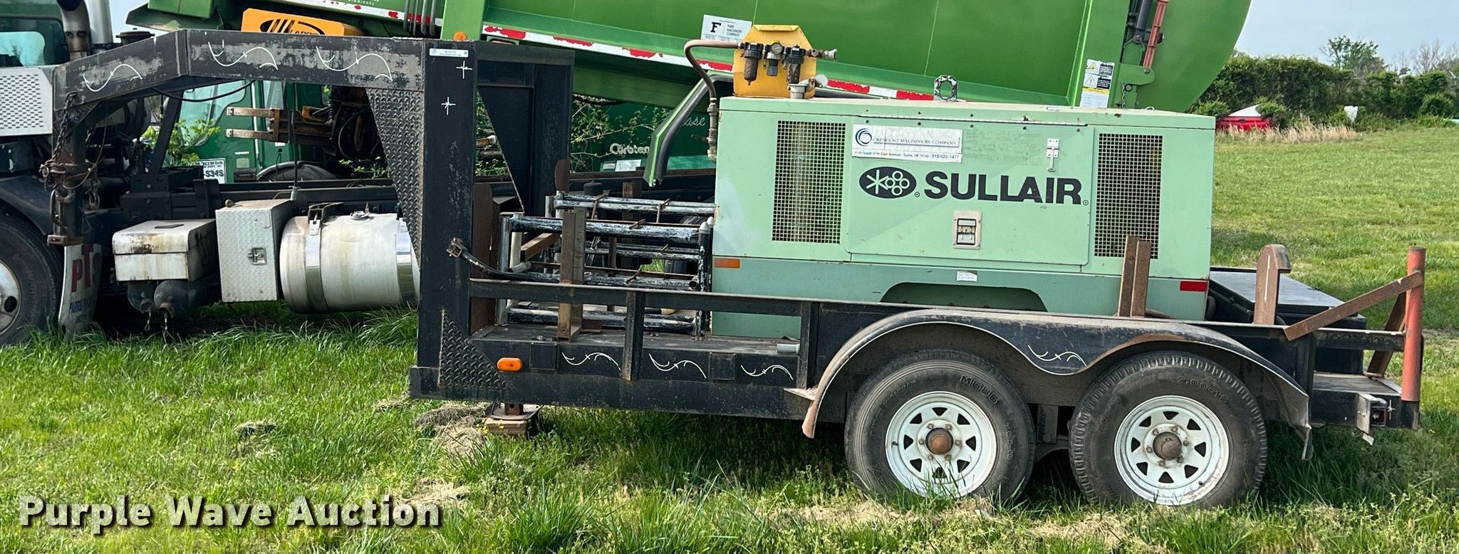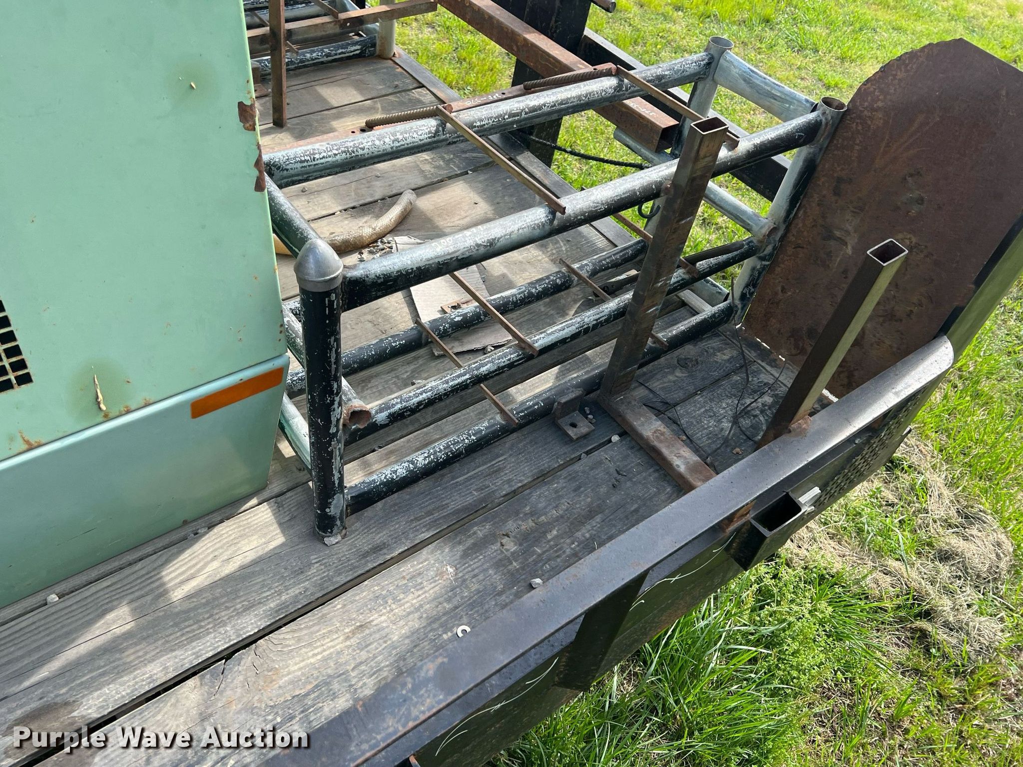 Shop built equipment trailer. Dimensions. Overall: 19' L x 8' W, Deck: 12' x 7' W x 2" W. Features Deck type: Wood, Pneumatic post hole driver. Chassis Hitch: Gooseneck, Landing gear: Single, Suspension: Spring, Brakes: Electric, Axles: Tandem. Tires Size: 7.00-15LT. Sullair 185 air compressor Serial: 004-118707. Engine John Deere, Cylinders: 4, Fuel type: Diesel. Features Air compressor CFM: 185, PSI: 100. Transfer of ownership documentation will be a bill of sale. Craig County E-911. Vinita, OK 74301