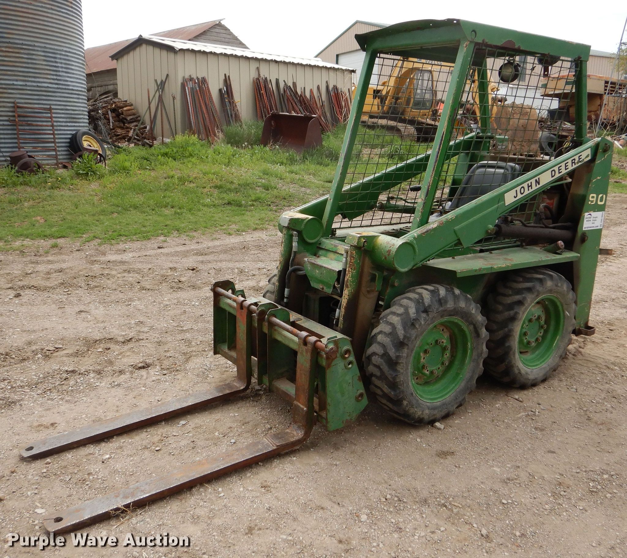 Purple Wave is selling a used Skid Steer Loader in Kansas. This item is a John Deere 90 skid steer loader with the following: Hours: 1,180 on meter, Serial: 190210M