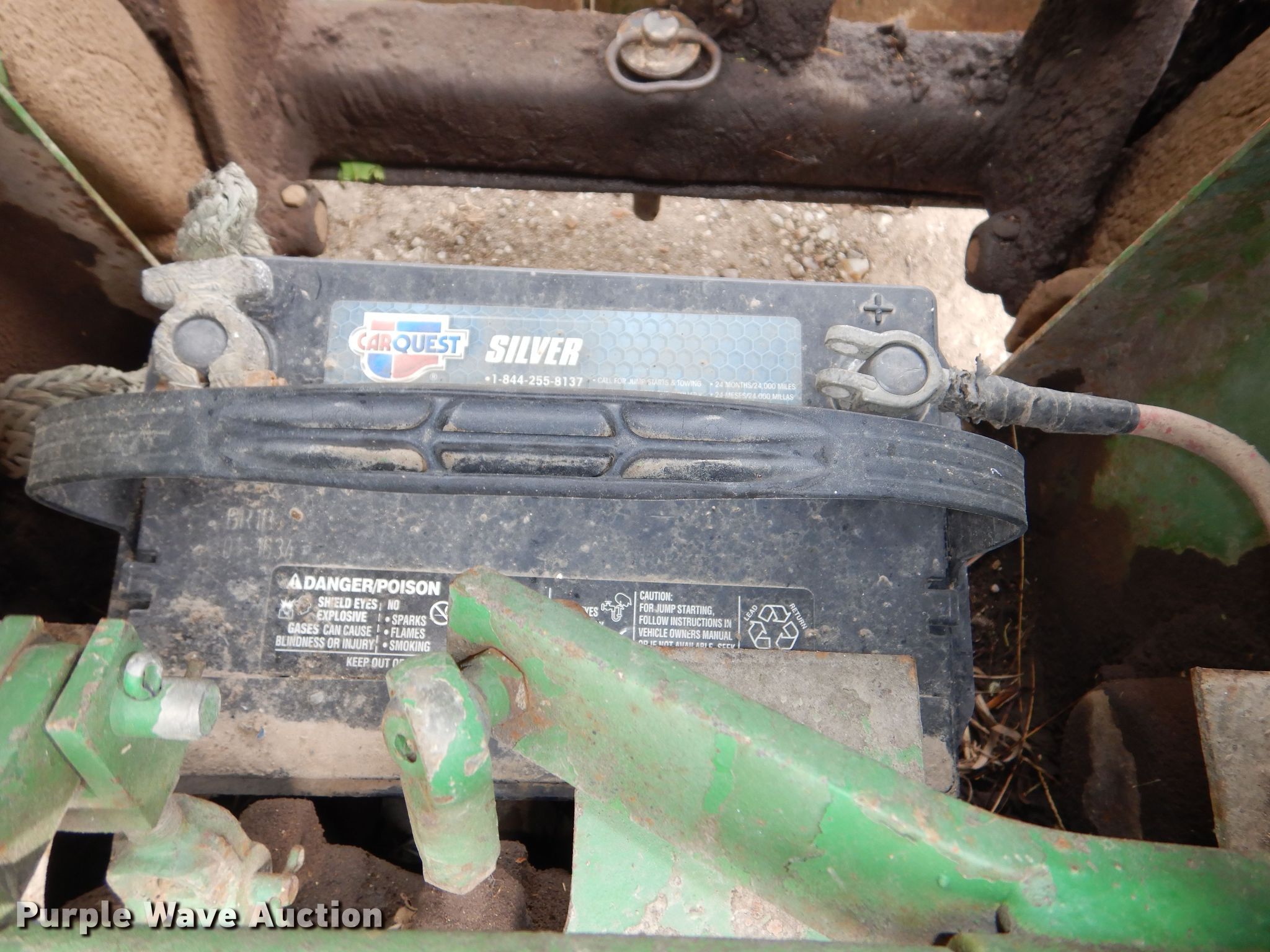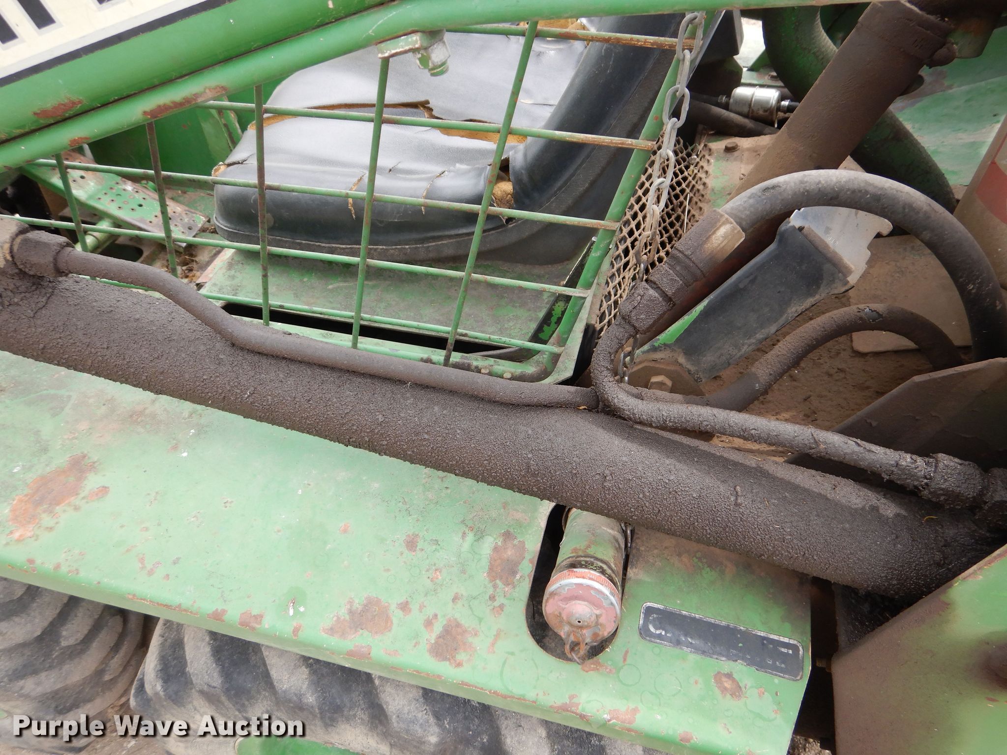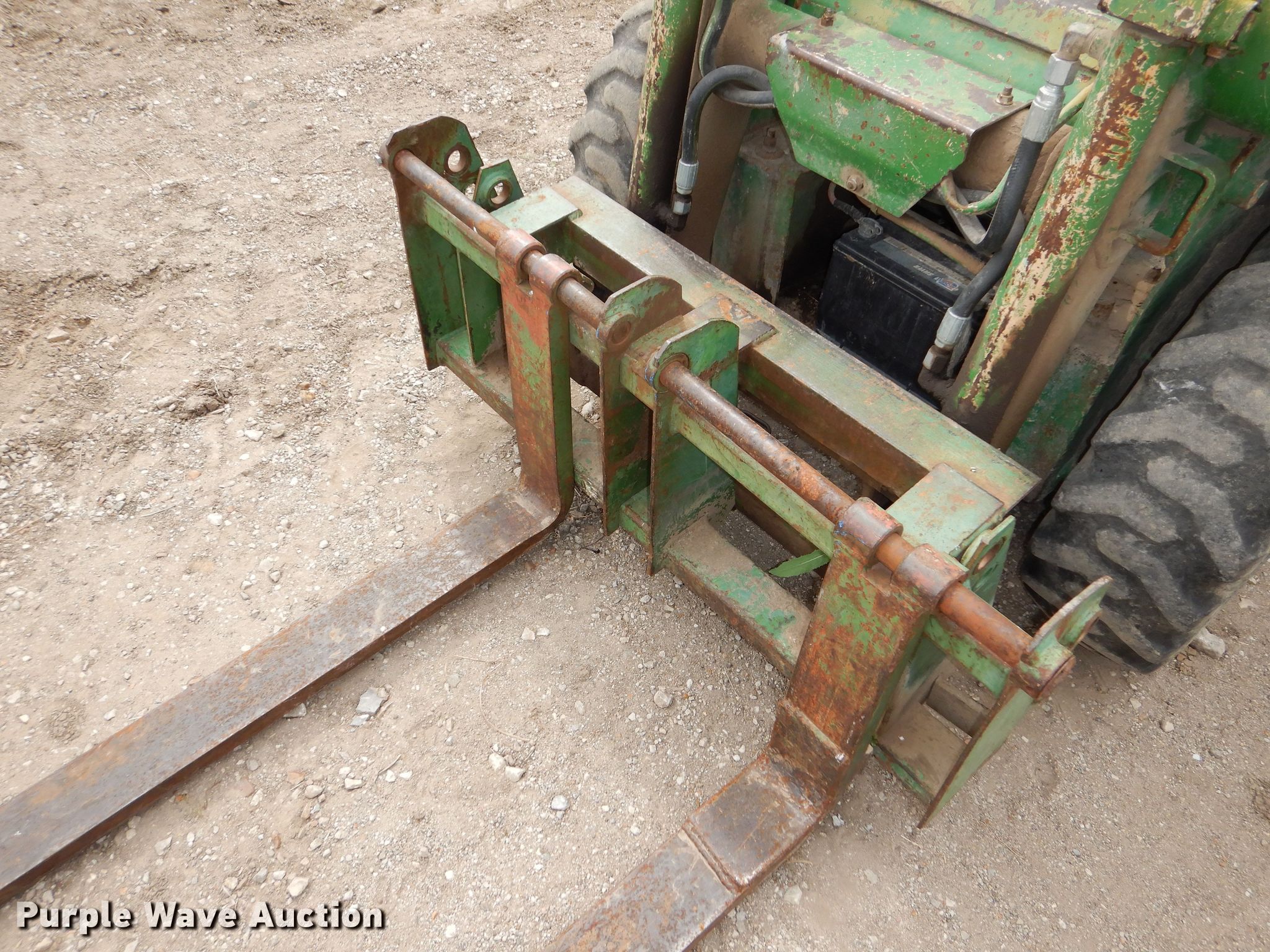 John Deere 90 skid steer loader. Hours: 1,180 on meter, Serial: 190210M. Engine Cylinders: 2, Fuel type: Gas. Operators station OROPS, Bucket control: Foot. Features Bucket Width: 48", Cutting edge: Weld-on, Bucket Width: 48", Teeth: 7, Forks Length: 41". Tires Front: 27x8.50-15, Brand: Firestone. Notes Wheel bearing issues. Leonardville, KS 66449