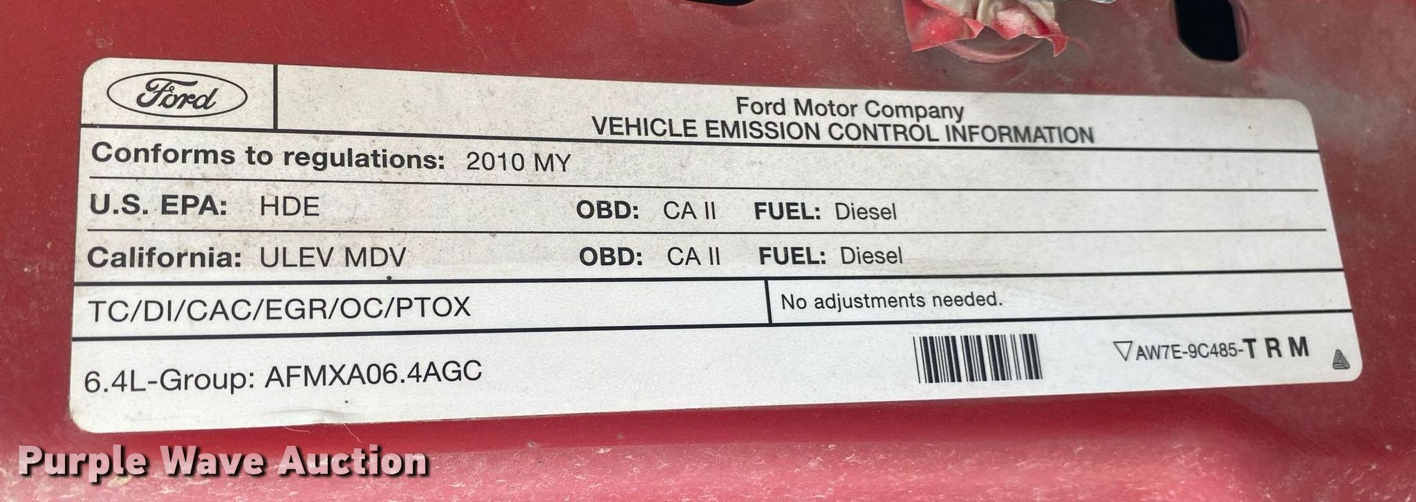 2010 Ford F250 Super Duty SuperCab pickup truck. Miles: 289,703 on odometer, VIN: 1FTSX2AR4AEB13905, Unit #: 2-131. Engine Displacement: 6.4L V8 OHV, Cylinders: 8, Fuel type: Diesel. Transmission Automatic. Interior AC, Heat, Cruise control. Features Hitch: Gooseneck. Tires Size: 245/75R17. Notes Steering column damage. Oklahoma title. Title distribution may be delayed up to 14 days from verification of funds. Becco Contractors Inc. 13737 East 46th Street North. Tulsa, OK 74116
