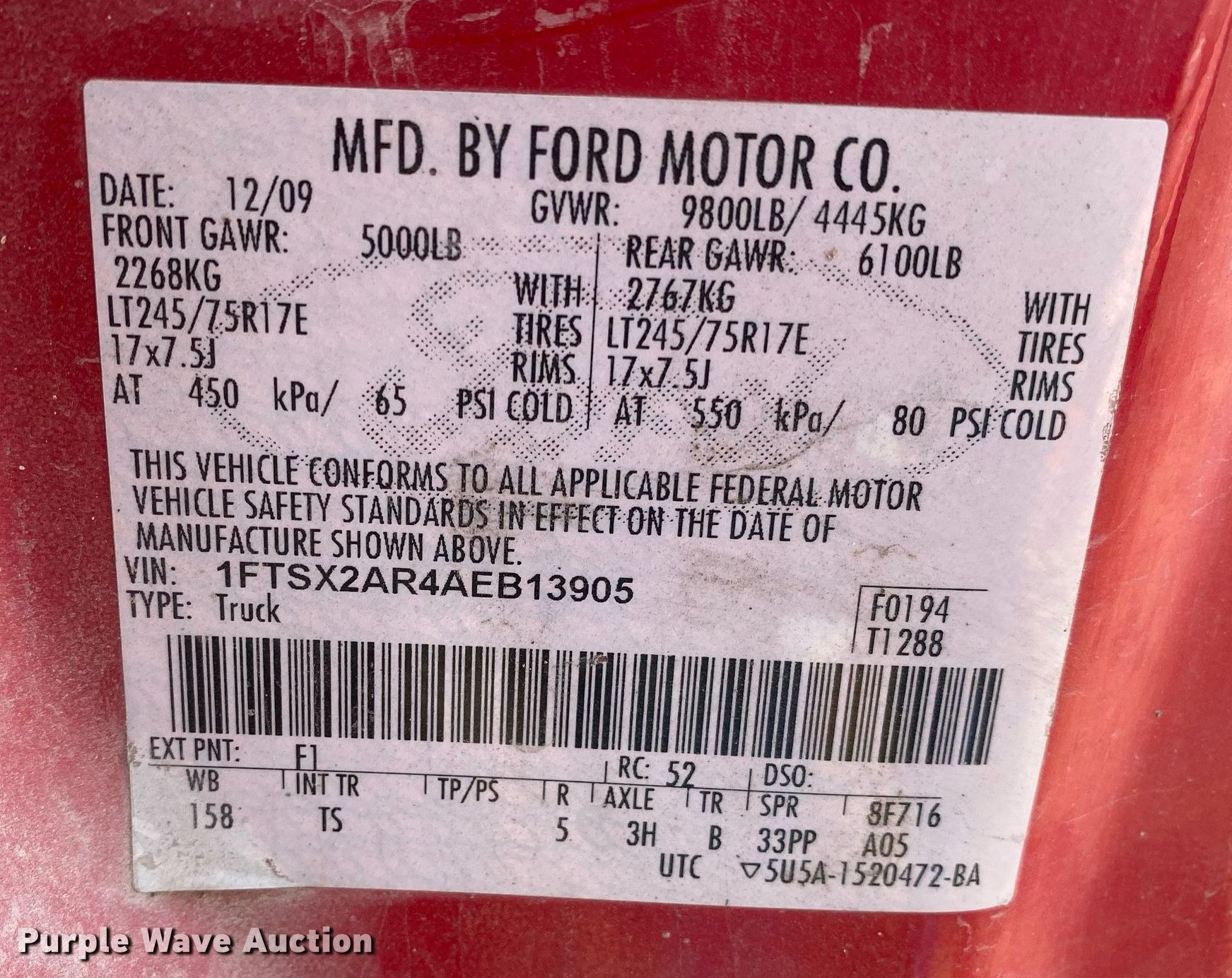 - VIN: 1FTSX2AR4AEB13905