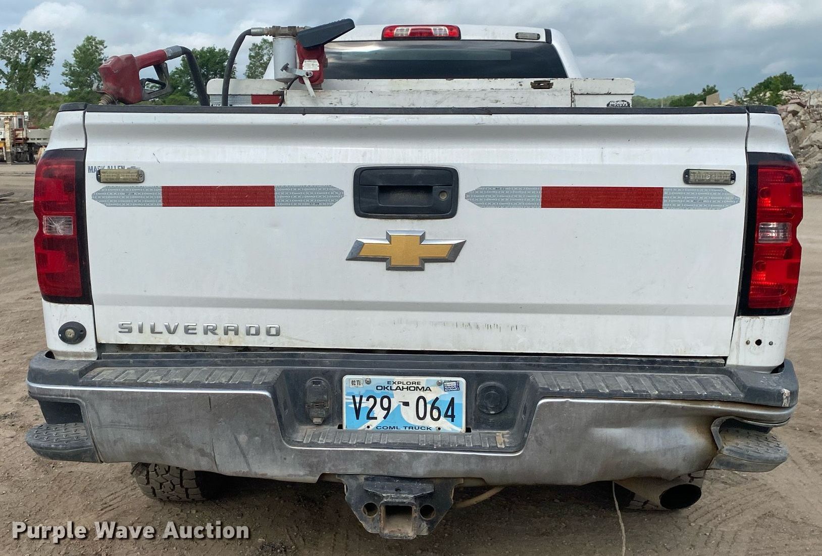 2015 Chevrolet Silverado 2500HD Crew Cab pickup truck. Miles: 291,818 on odometer, VIN: 1GC1KUEGXFF556396, Unit #: 2-154. Engine Displacement: 6.0L V8 OHV, Cylinders: 8, Fuel type: Gas. Transmission Automatic, Four wheel drive. Interior AC, Heat, Power windows, Power locks, Cruise control. Features Auxiliary fuel tank Fill-Rite pump 12V, GPM: 15, Capacity: 75 gallon , Hose, Nozzle. Tires Size: 265/70R17. Notes Dash warning indicator: Check engine, Front passenger tire lug nut missing. Oklahoma title. Title distribution may be delayed up to 14 days from verification of funds. Becco Contractors Inc. 13737 East 46th Street North. Tulsa, OK 74116