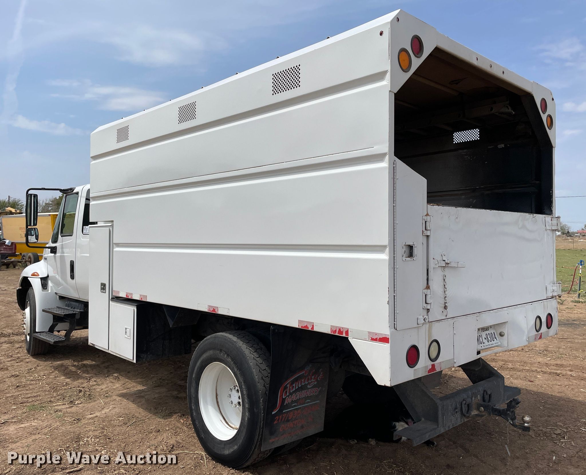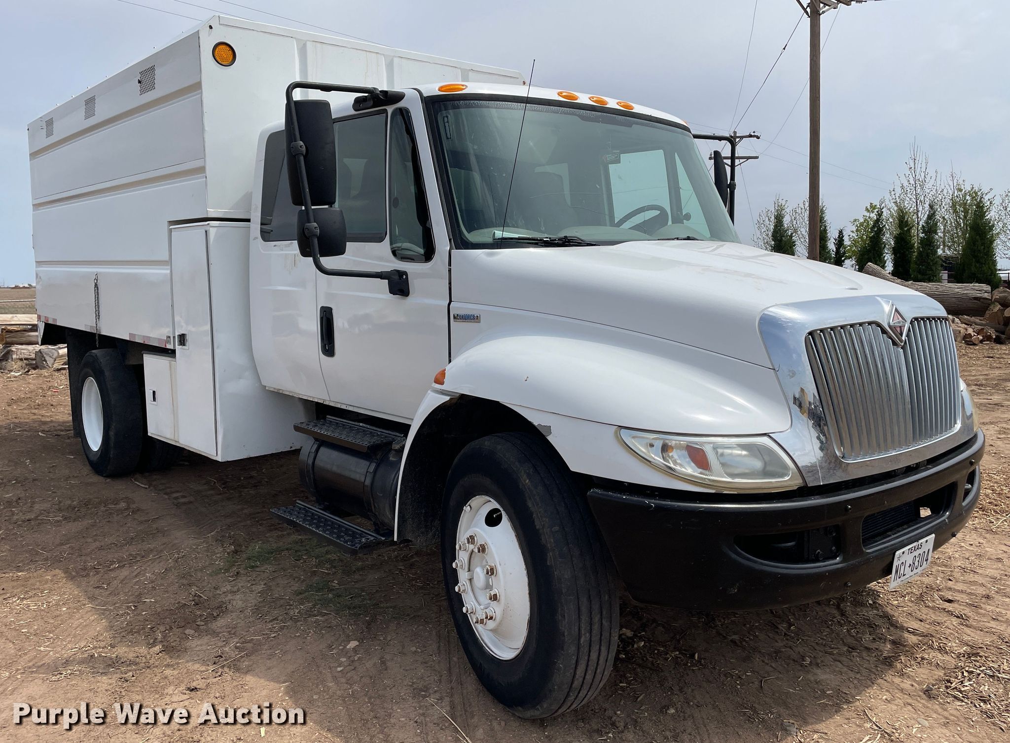 Purple Wave is selling a used Construction Dump Truck in Texas. This item is a 2008 International 4300 chipper truck with the following: Miles: 97,374 on odometer, Hours: 6,816 on meter, VIN: 1HTJTSKM38H674618