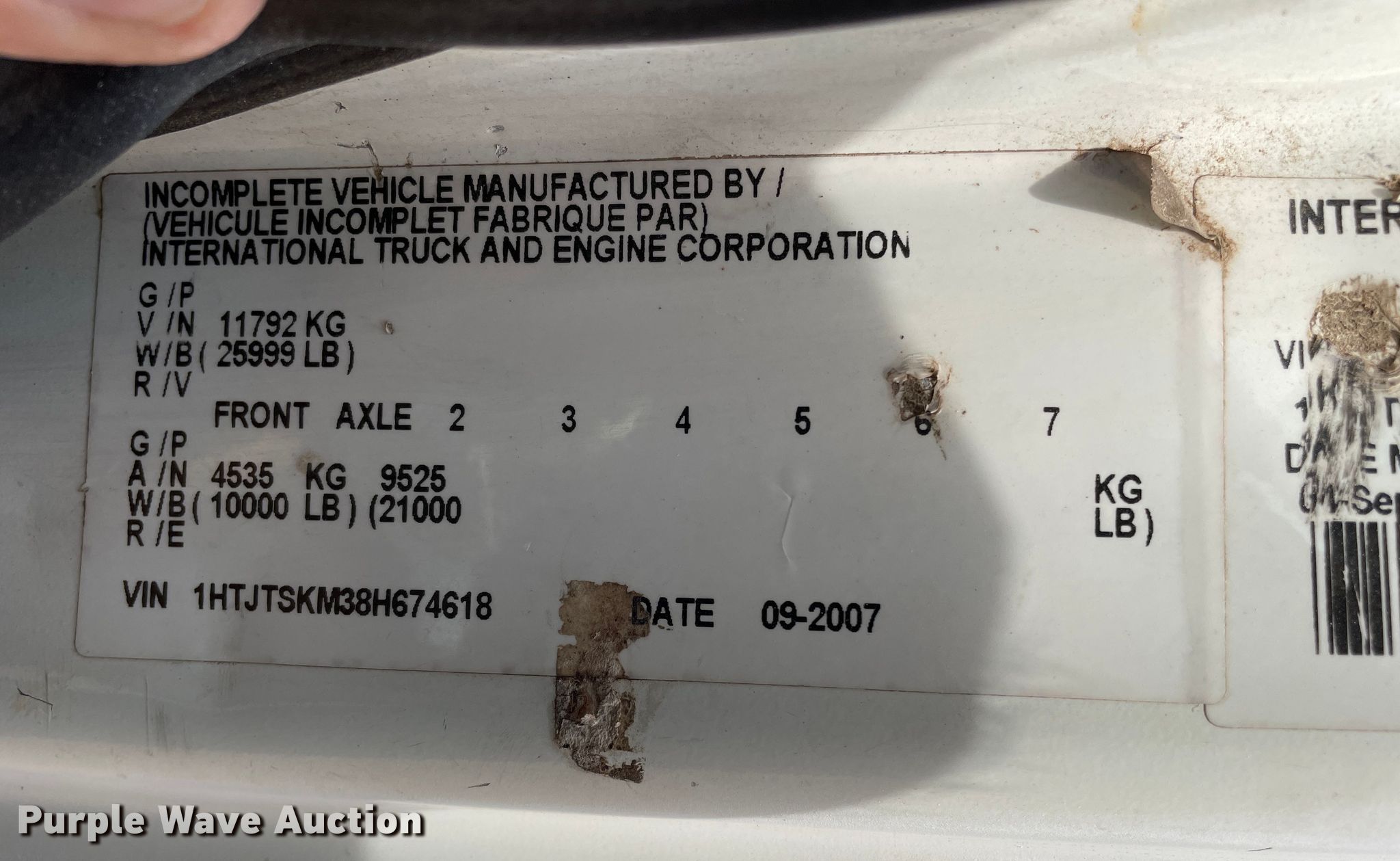 - VIN: 1HTJTSKM38H674618