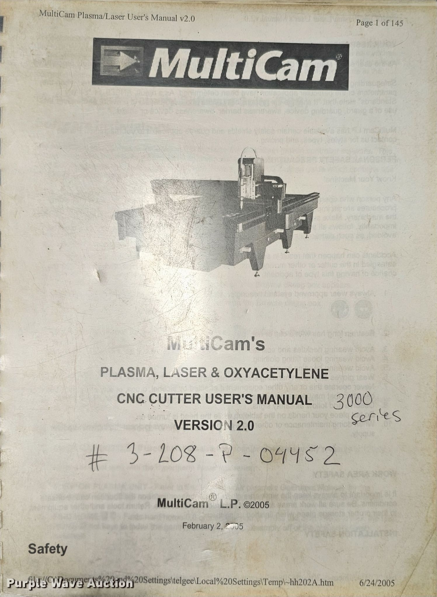 Purple Wave is selling a used Cutting Systems in Nebraska. This item is a MultiCam Plasma Hypertherm HyPerformance Plasma HPR130 plasma cutter table with the following: Serial: 8-208-P-04452