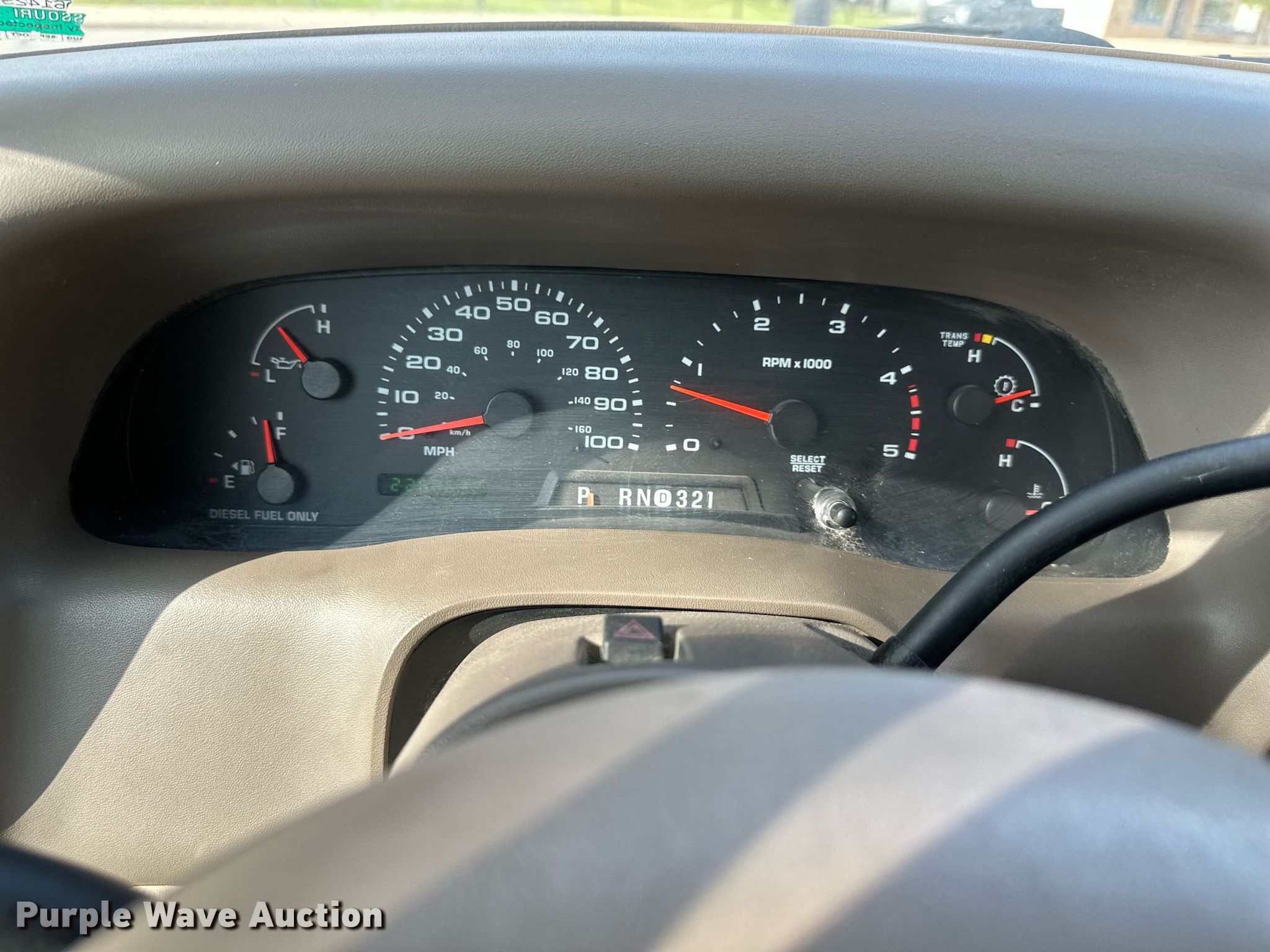 2004 Ford F250 Super Duty Crew Cab pickup truck. Miles: 226,863 on odometer, VIN: 1FTNW21P14EB44354. Engine Displacement: 6.0L V8 OHV, Cylinders: 8, Fuel type: Diesel. Transmission Automatic, Four wheel drive. Interior AC, Heat, Seat: Heated, Power driver, Heated mirrors, Power windows, Power locks, Cruise control, Sunroof. Tires Size: 265/75R16. Notes Dash warning indicator: Check engine, Passenger glass missing. Kansas title. Title distribution may be delayed up to 14 days from verification of funds. 701 Kansas Avenue. Atchison, KS 66002