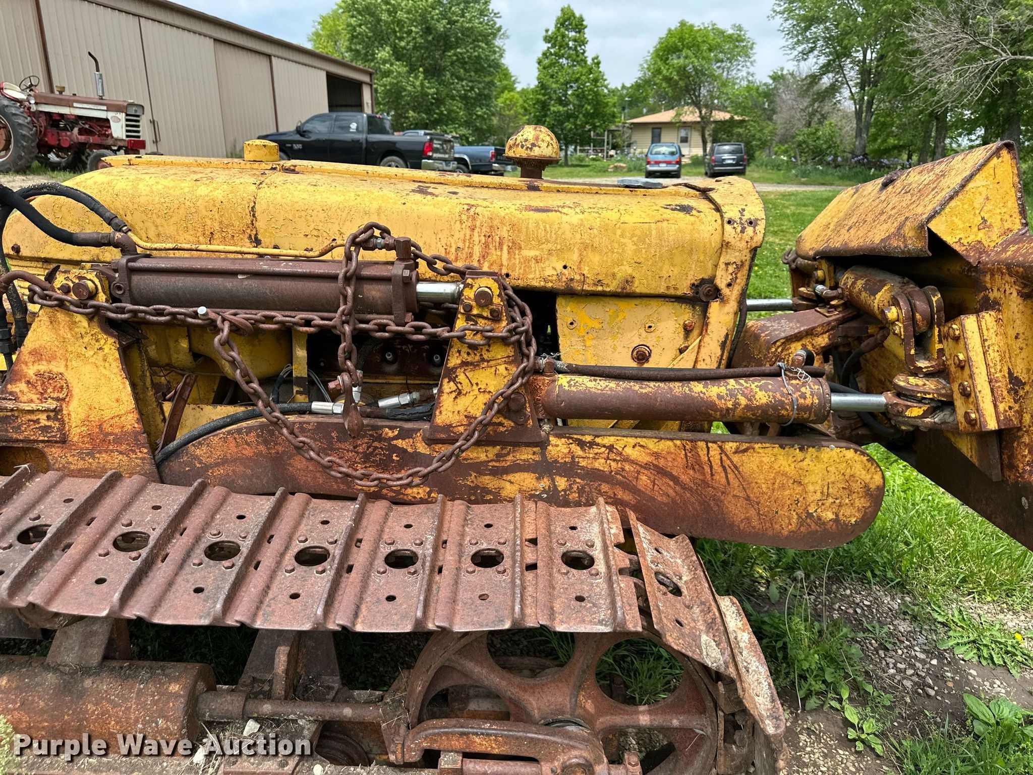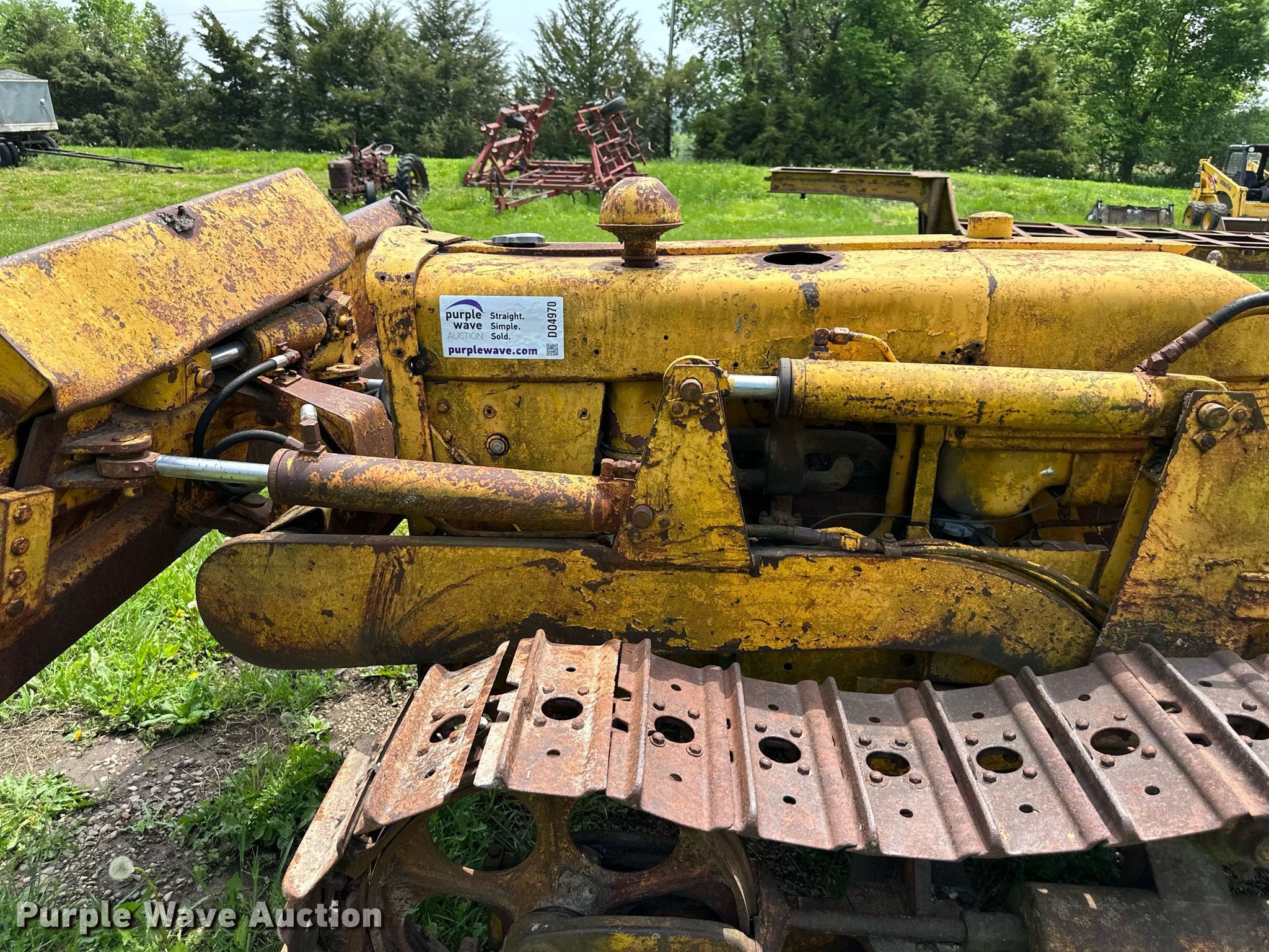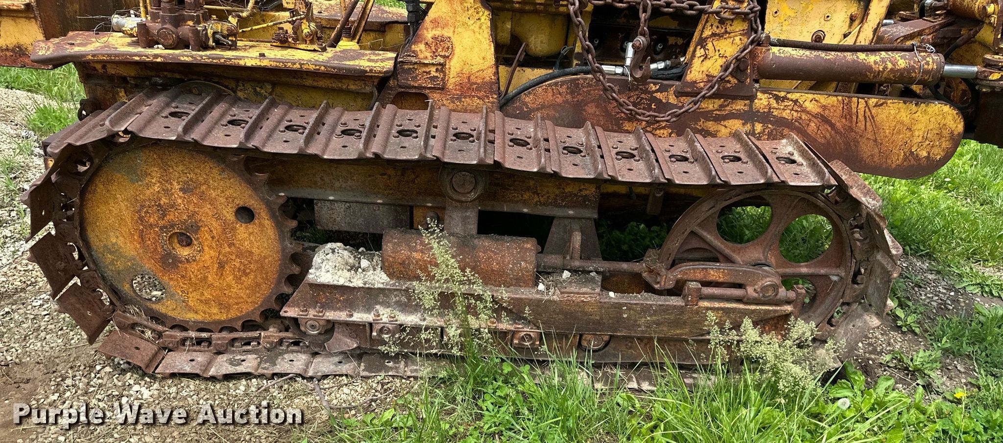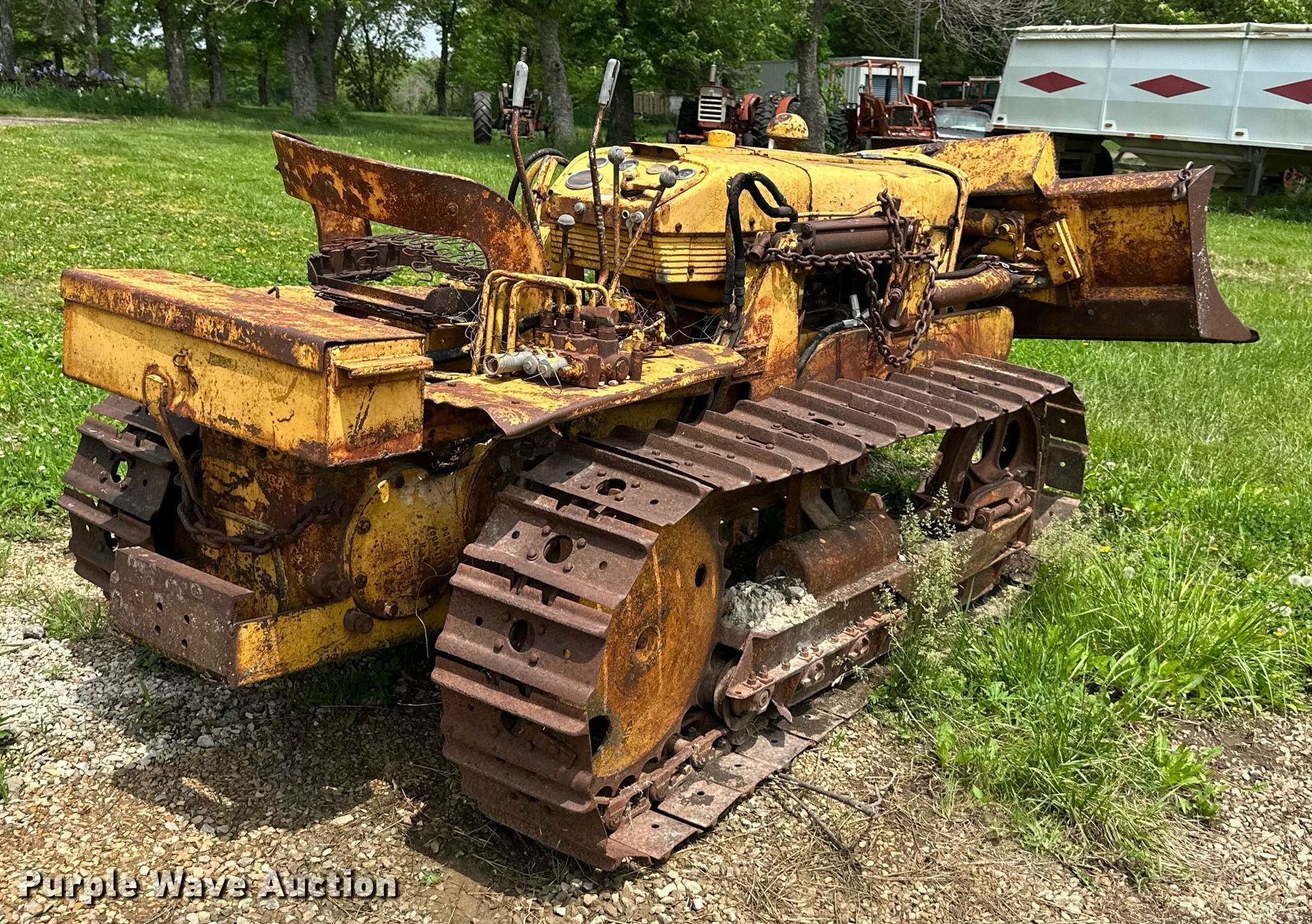 International Harvester T340 track loader. Hours: Unknown. Engine Cylinders: 4, Fuel type: Gas. Transmission Manual. Operators station Steering: Clutch brake. Features Dozer blade Type: 6-way, Straight, Width: 81" W. Tracks Width: 14", Grouser pads: Single, Bottom rollers: 5. Notes Non-operational unit. Richard Wakeman. 1505 East 800 Road. Lawrence, KS 66049