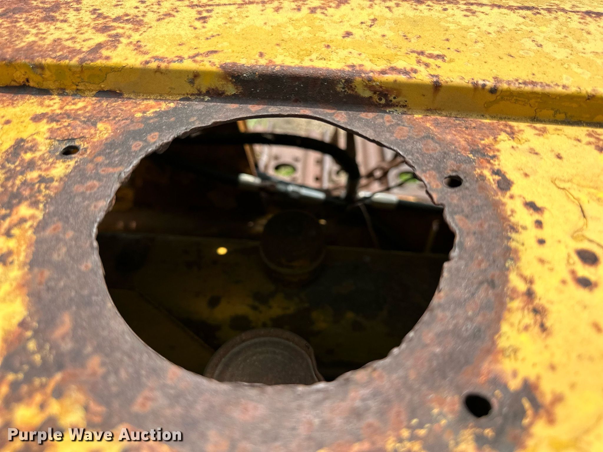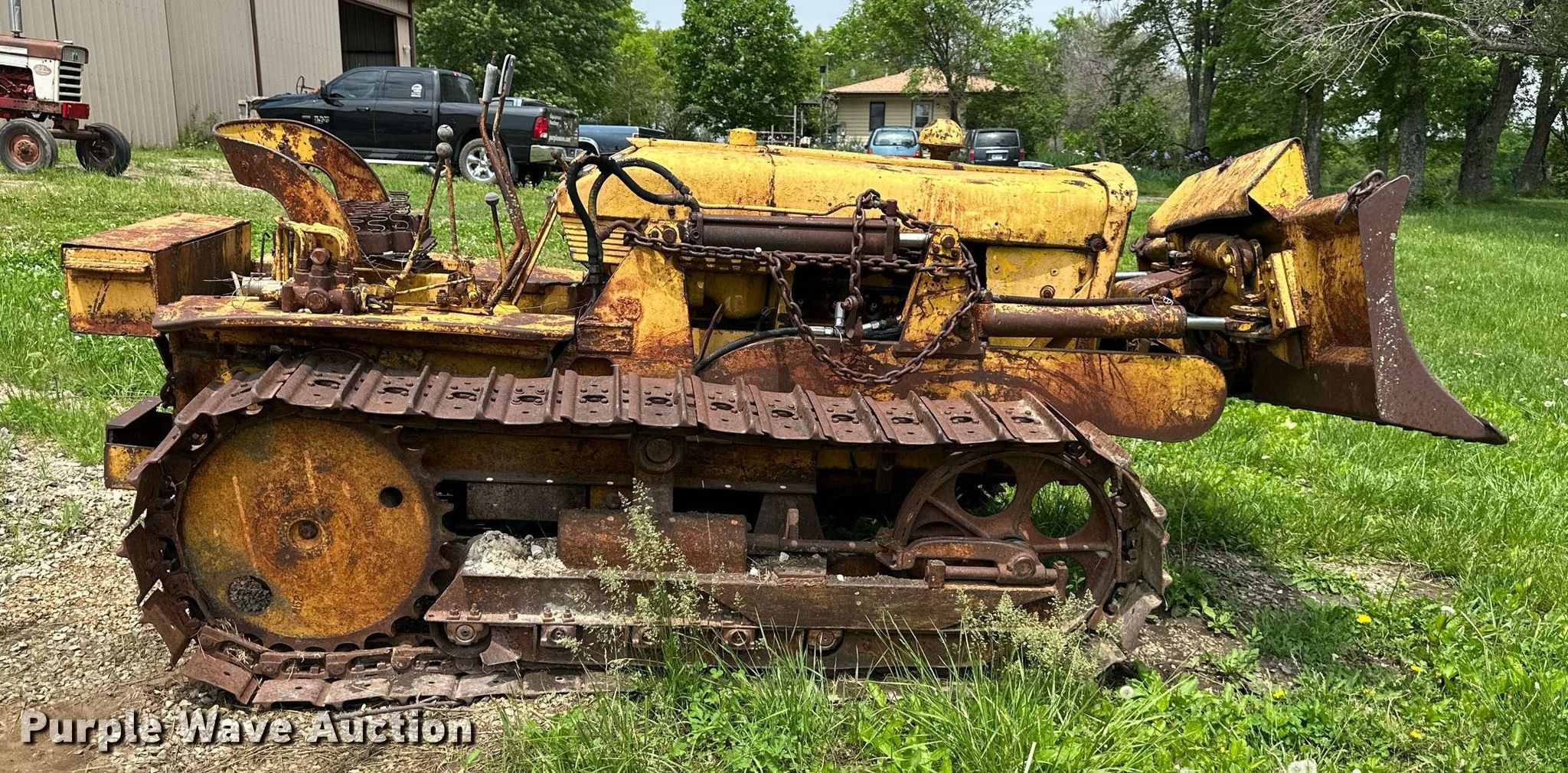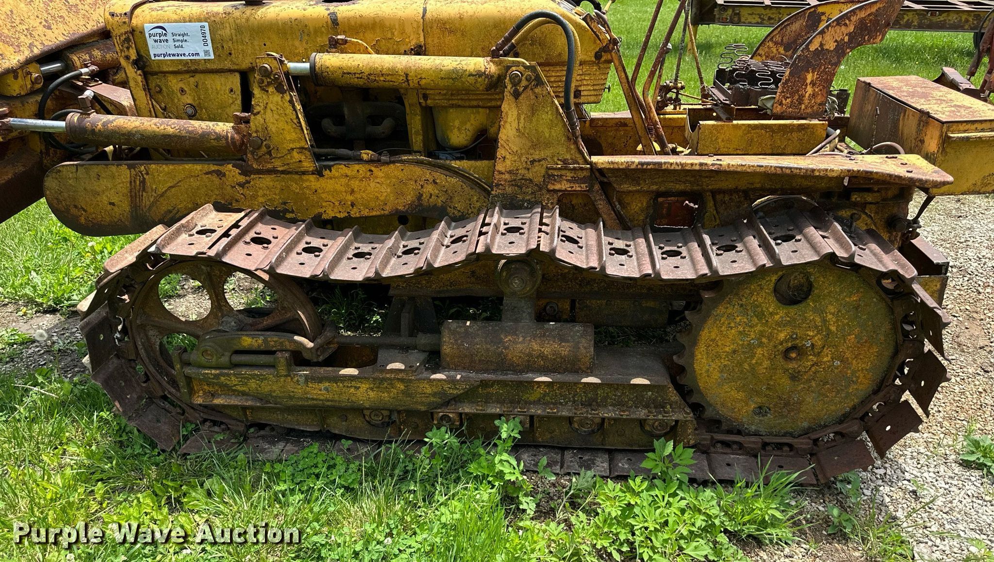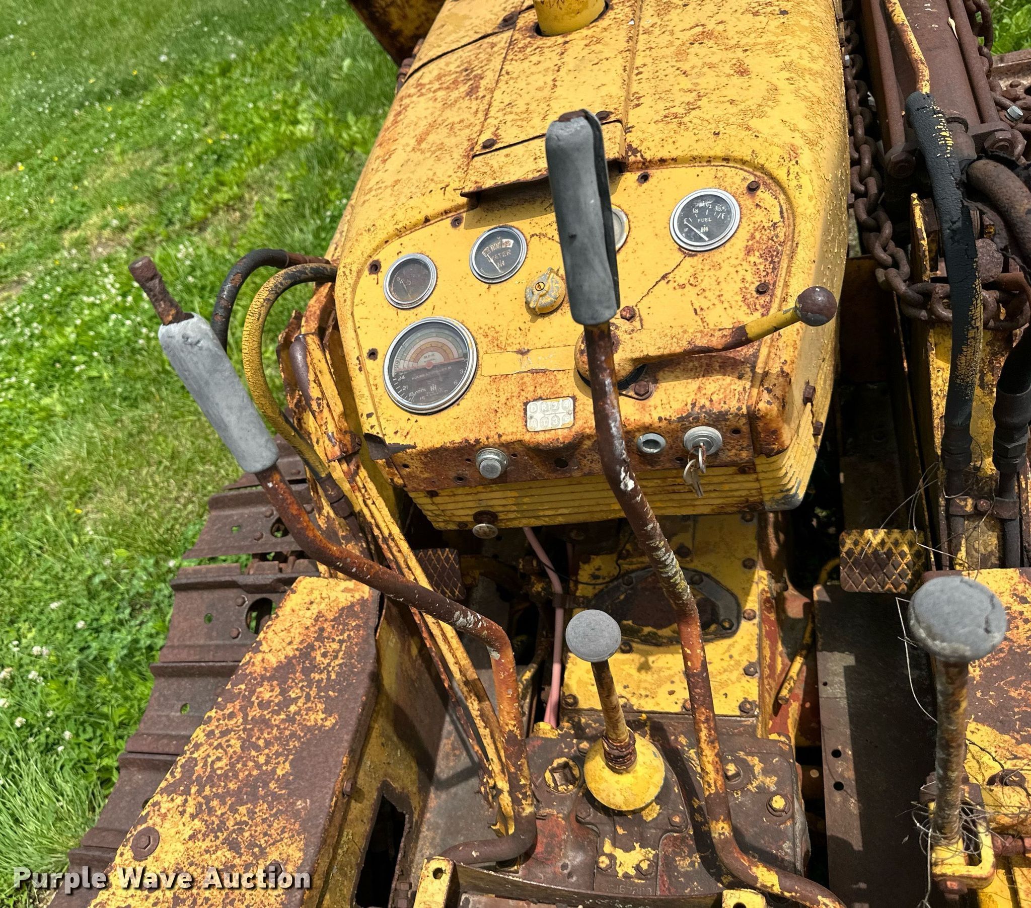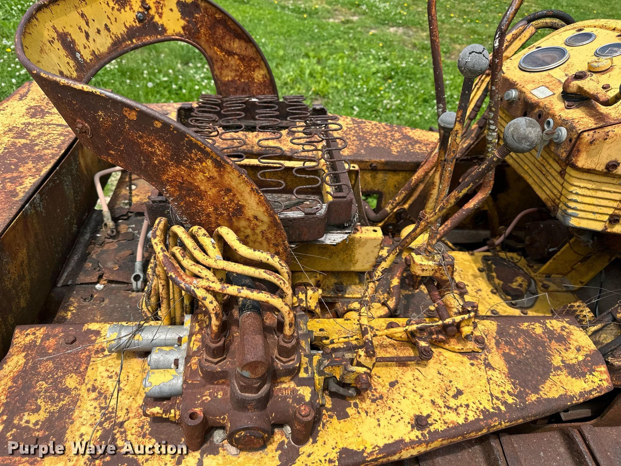 International Harvester T340 track loader. Hours: Unknown. Engine Cylinders: 4, Fuel type: Gas. Transmission Manual. Operators station Steering: Clutch brake. Features Dozer blade Type: 6-way, Straight, Width: 81" W. Tracks Width: 14", Grouser pads: Single, Bottom rollers: 5. Notes Non-operational unit. Richard Wakeman. 1505 East 800 Road. Lawrence, KS 66049
