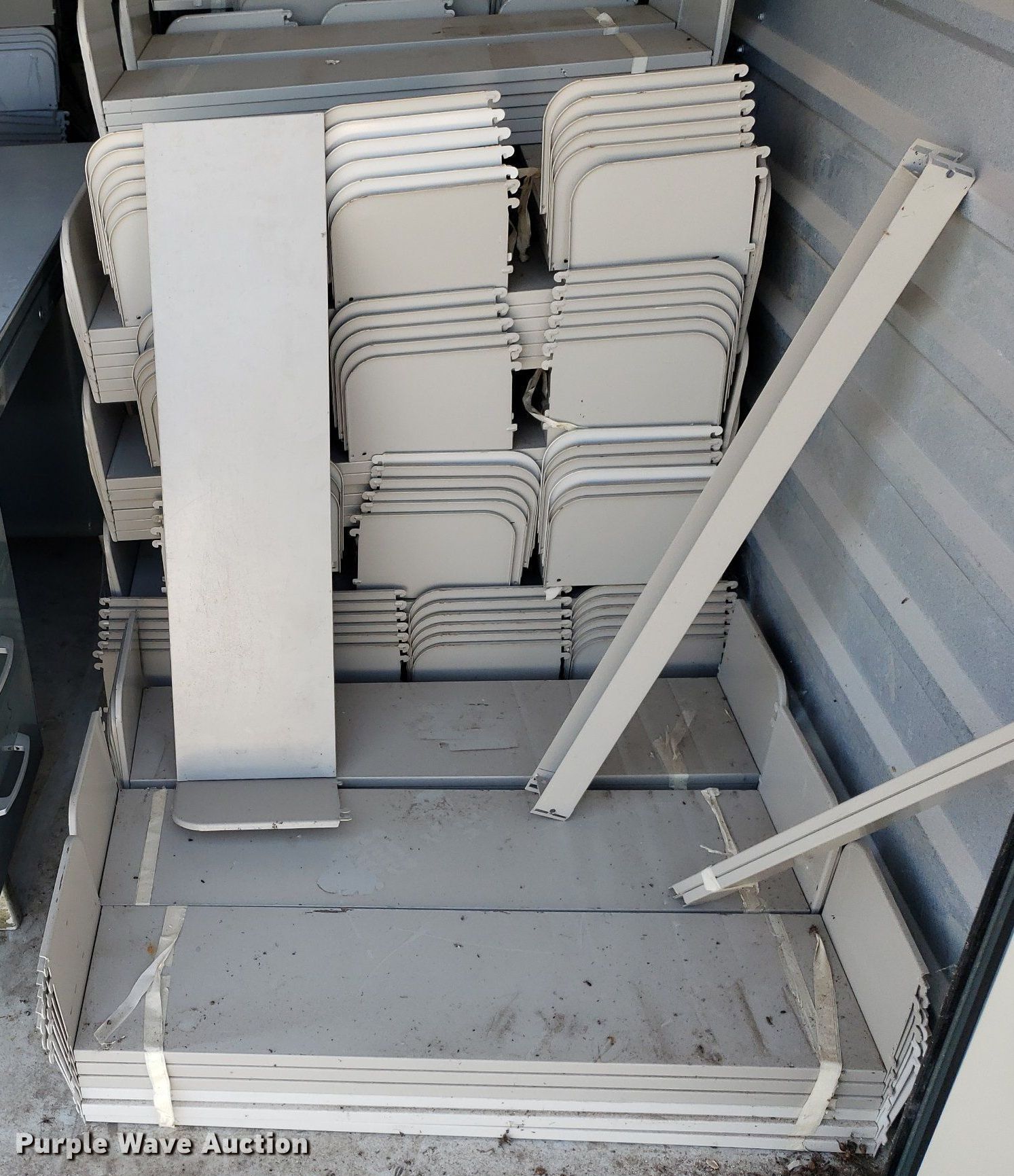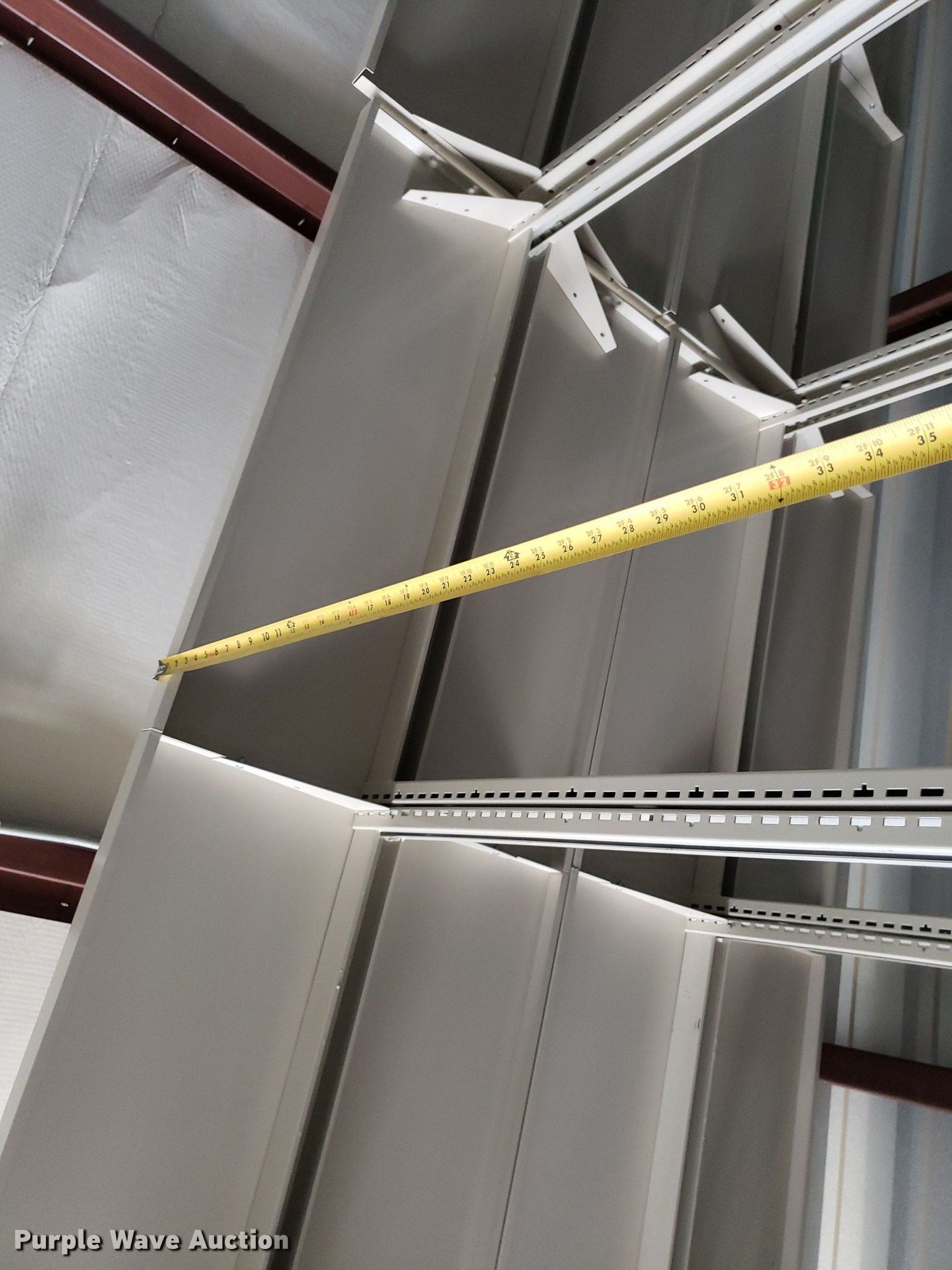 Purple Wave is selling a used Shelving and Storage in Kansas. This item is a Metal shelving with the following: Approx. 40, Dimensions: 36" x 48" x 7'6", Metal desk