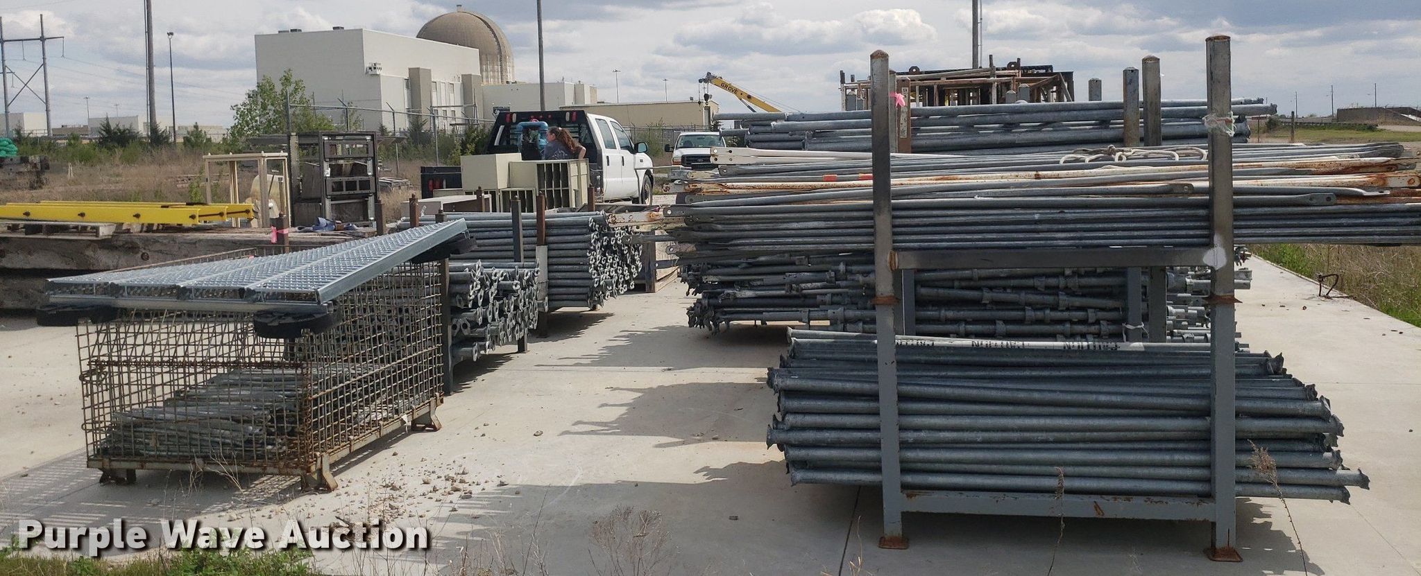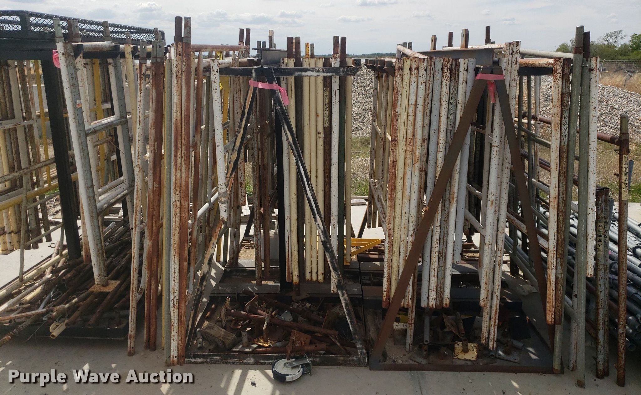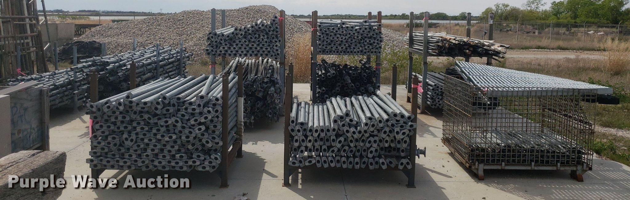 Purple Wave is selling a used Tools in Kansas. This item is a Scaffolding with the following: (9) 24"W x 5'H sets, (12) 60"W x 5'H sets, (6) 60"W x 77"H sets, Supports, Uprights, Cross-members, Racks