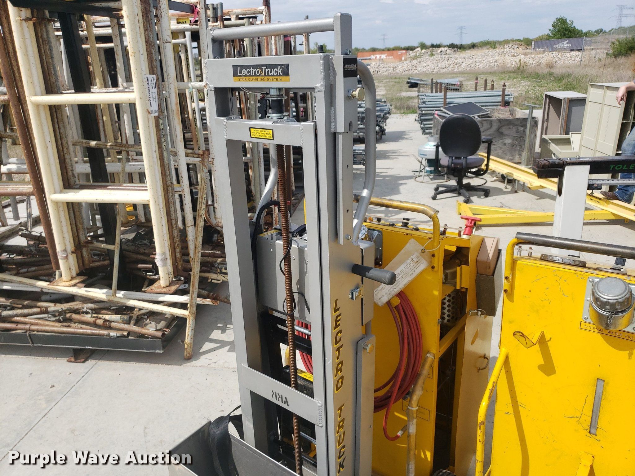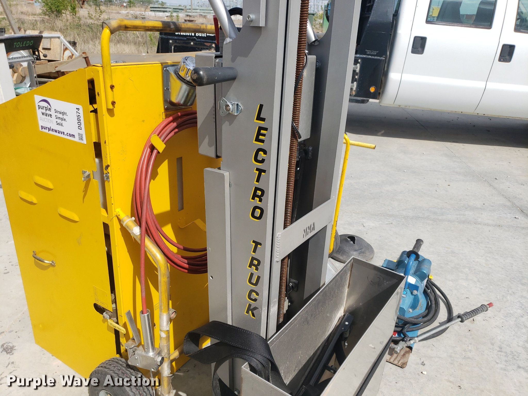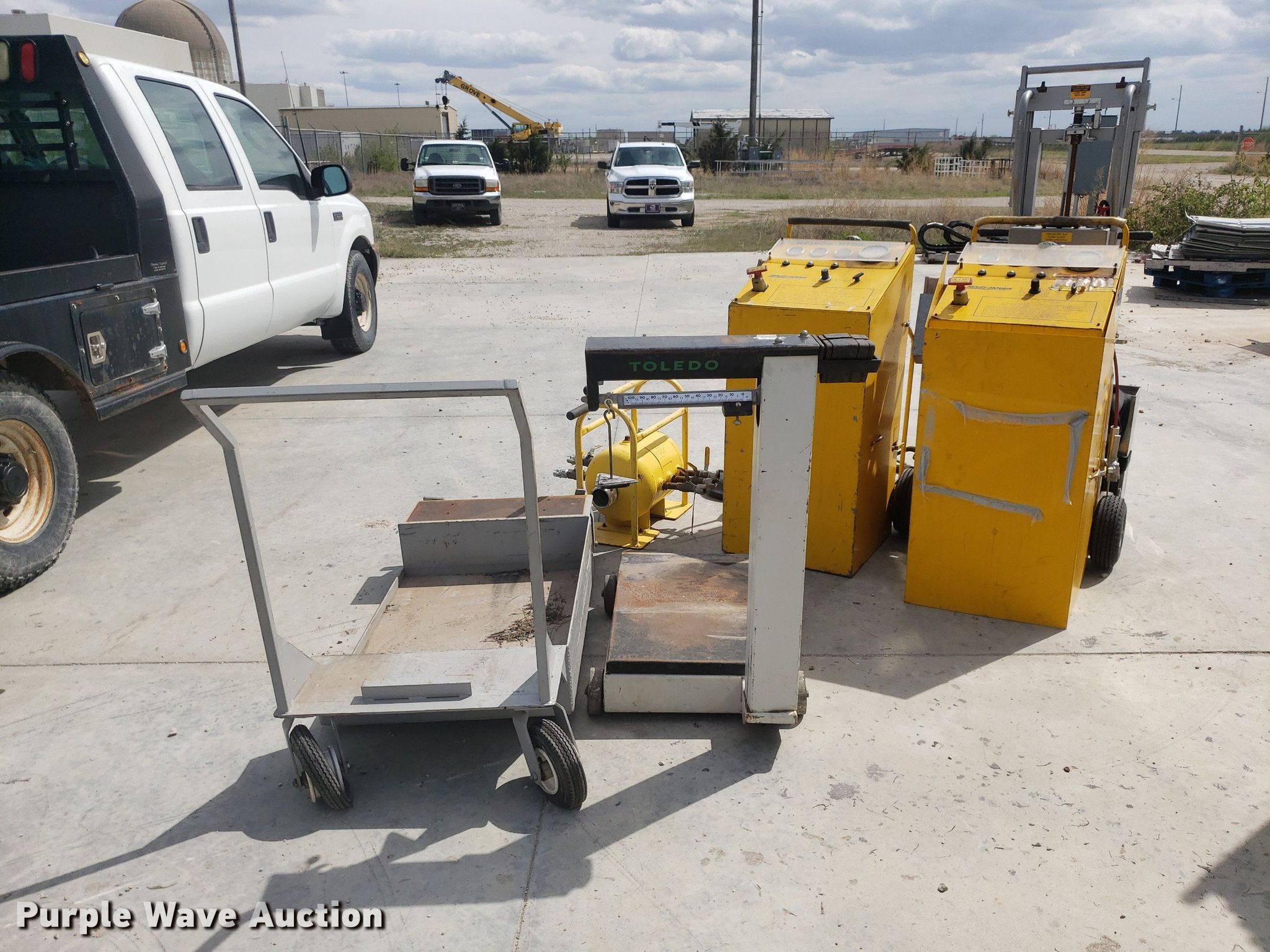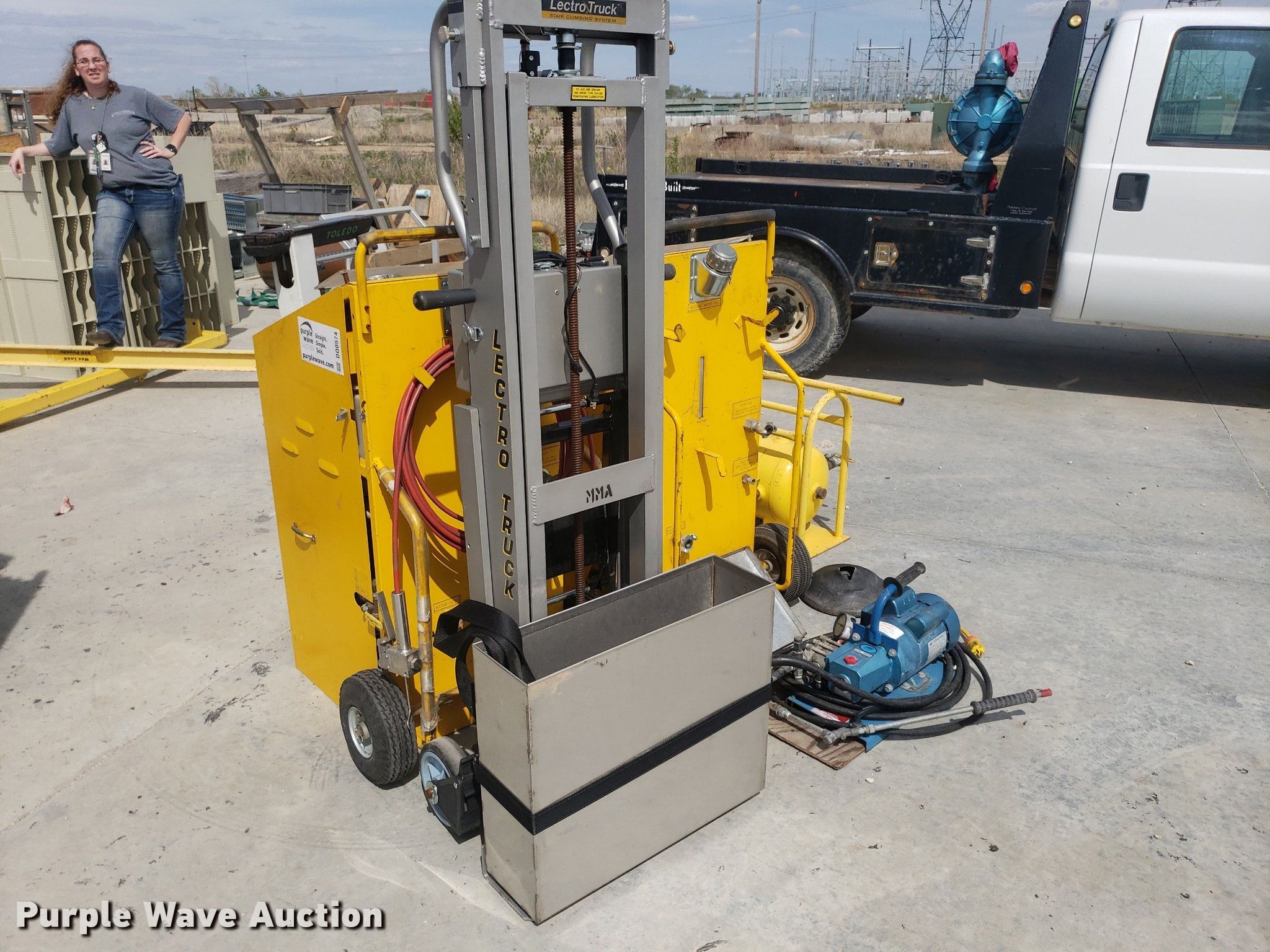 Purple Wave is selling a used Tools in Kansas. This item is a Tools with the following: Toledo scale, Cart, Lectro stair climber dolly, Capacity: 1,500 lbs, (2) Henze-Movats HP1000 water picks, Pressure washer, Unknown operating condition, Air tank