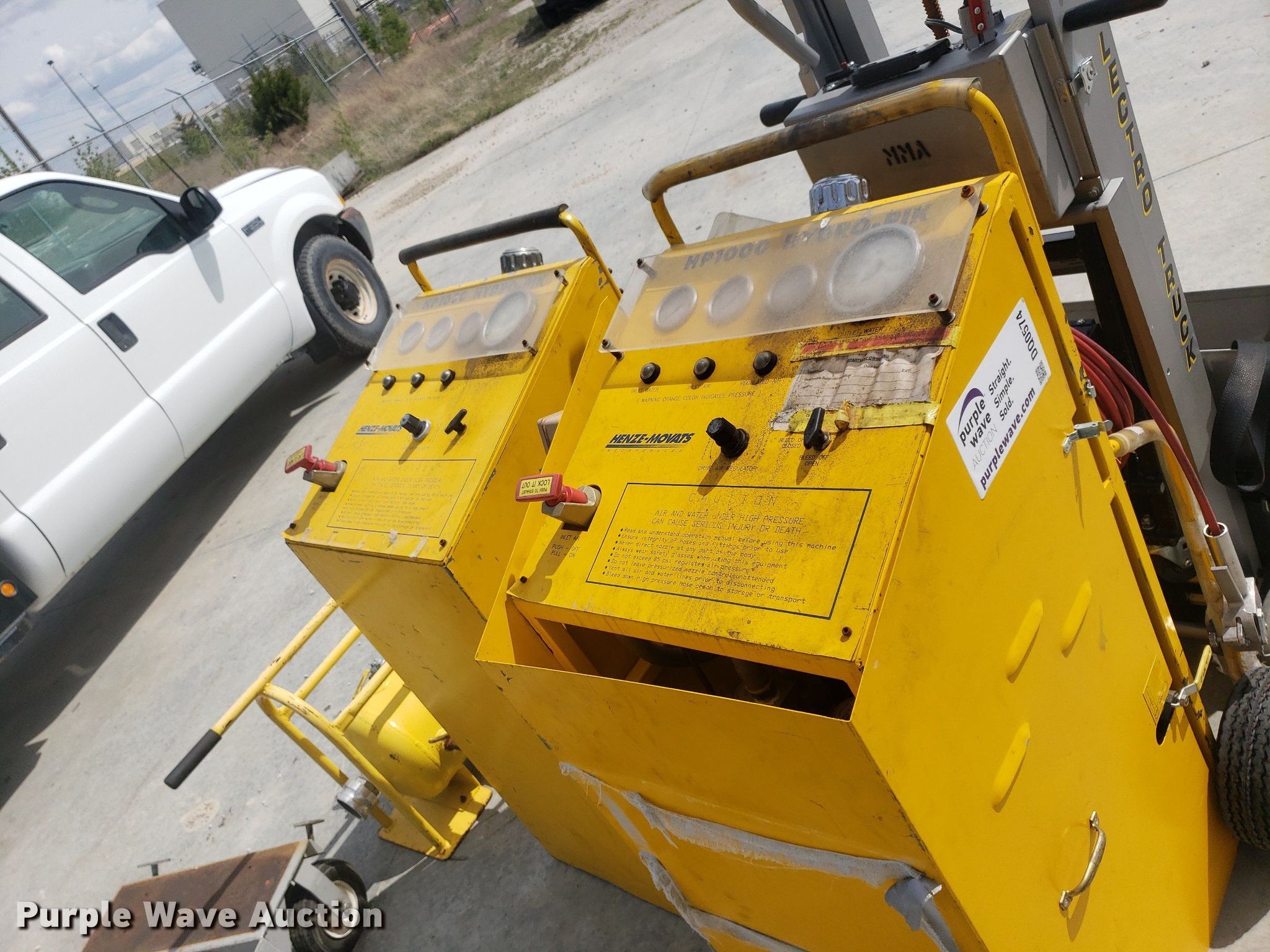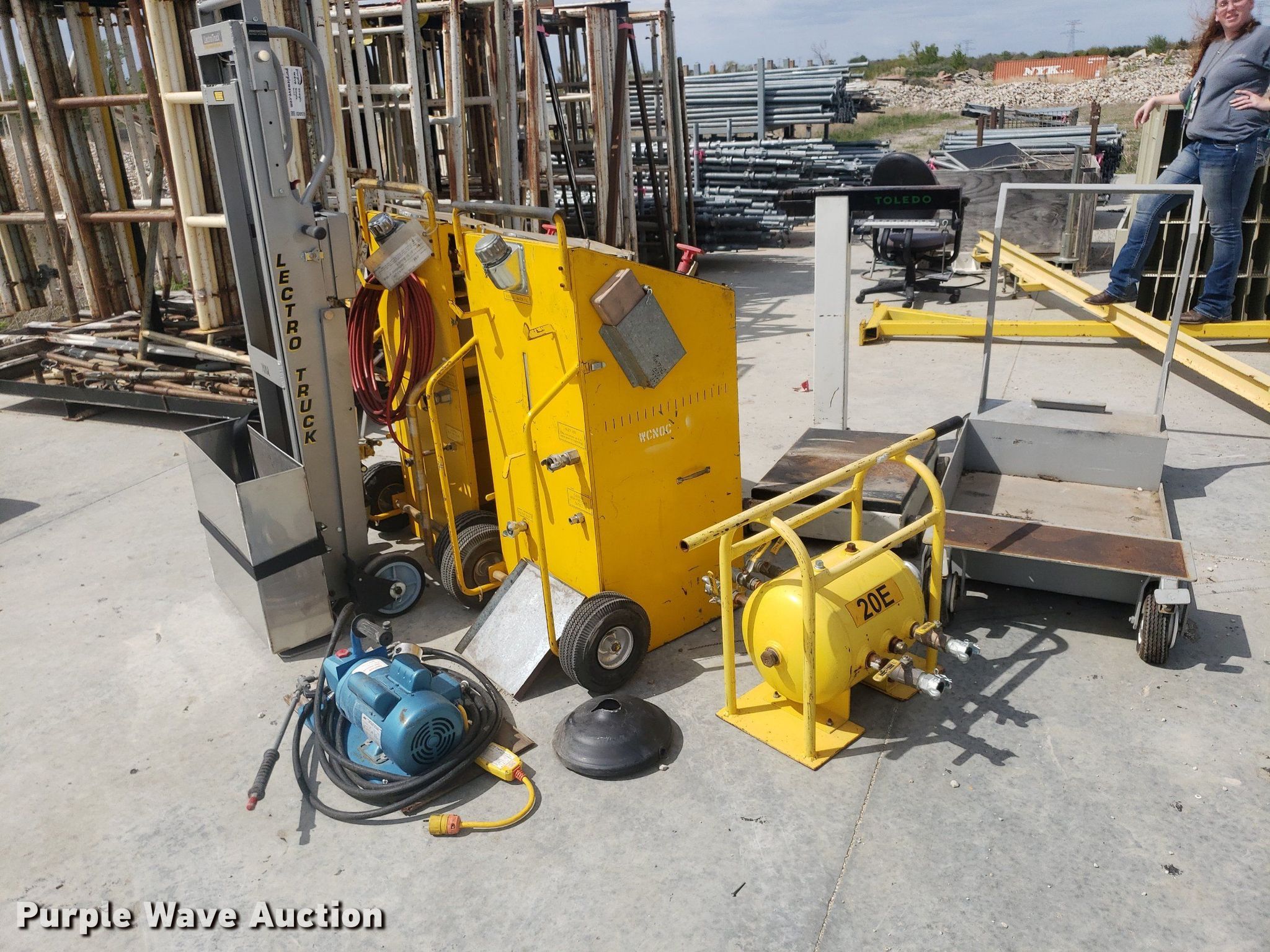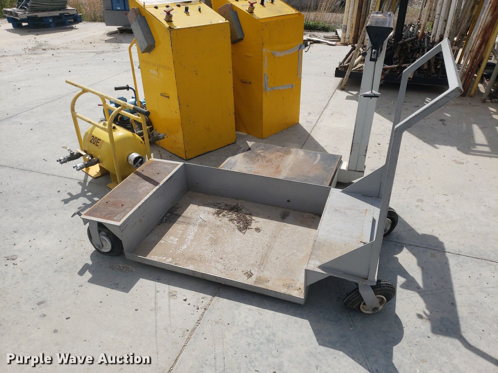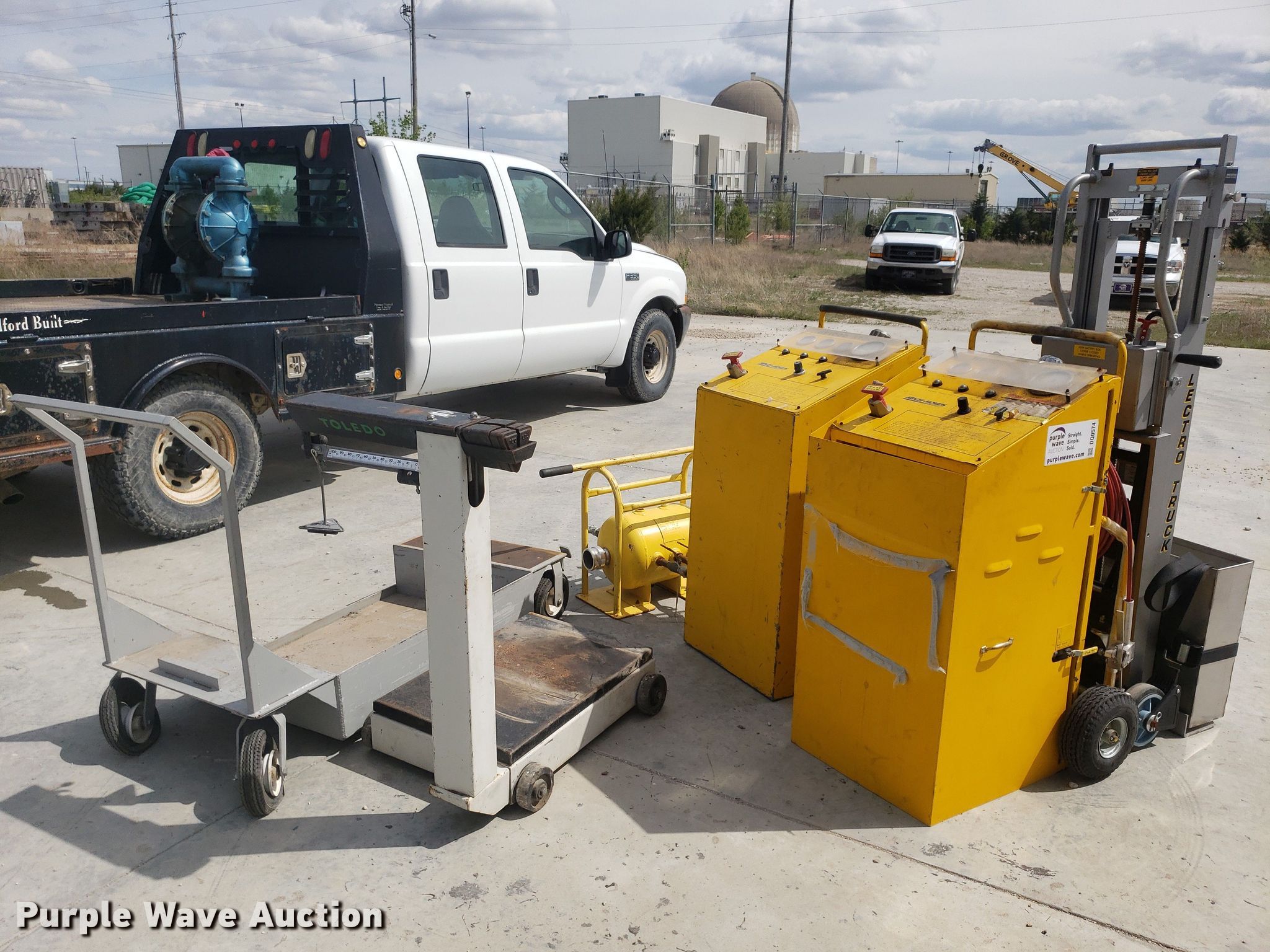 Purple Wave is selling a used Tools in Kansas. This item is a Tools with the following: Toledo scale, Cart, Lectro stair climber dolly, Capacity: 1,500 lbs, (2) Henze-Movats HP1000 water picks, Pressure washer, Unknown operating condition, Air tank