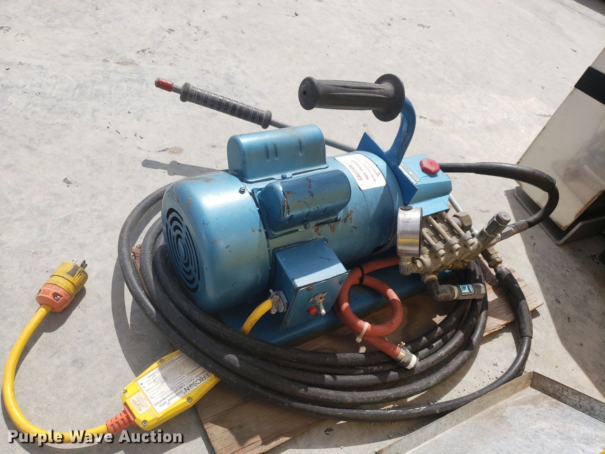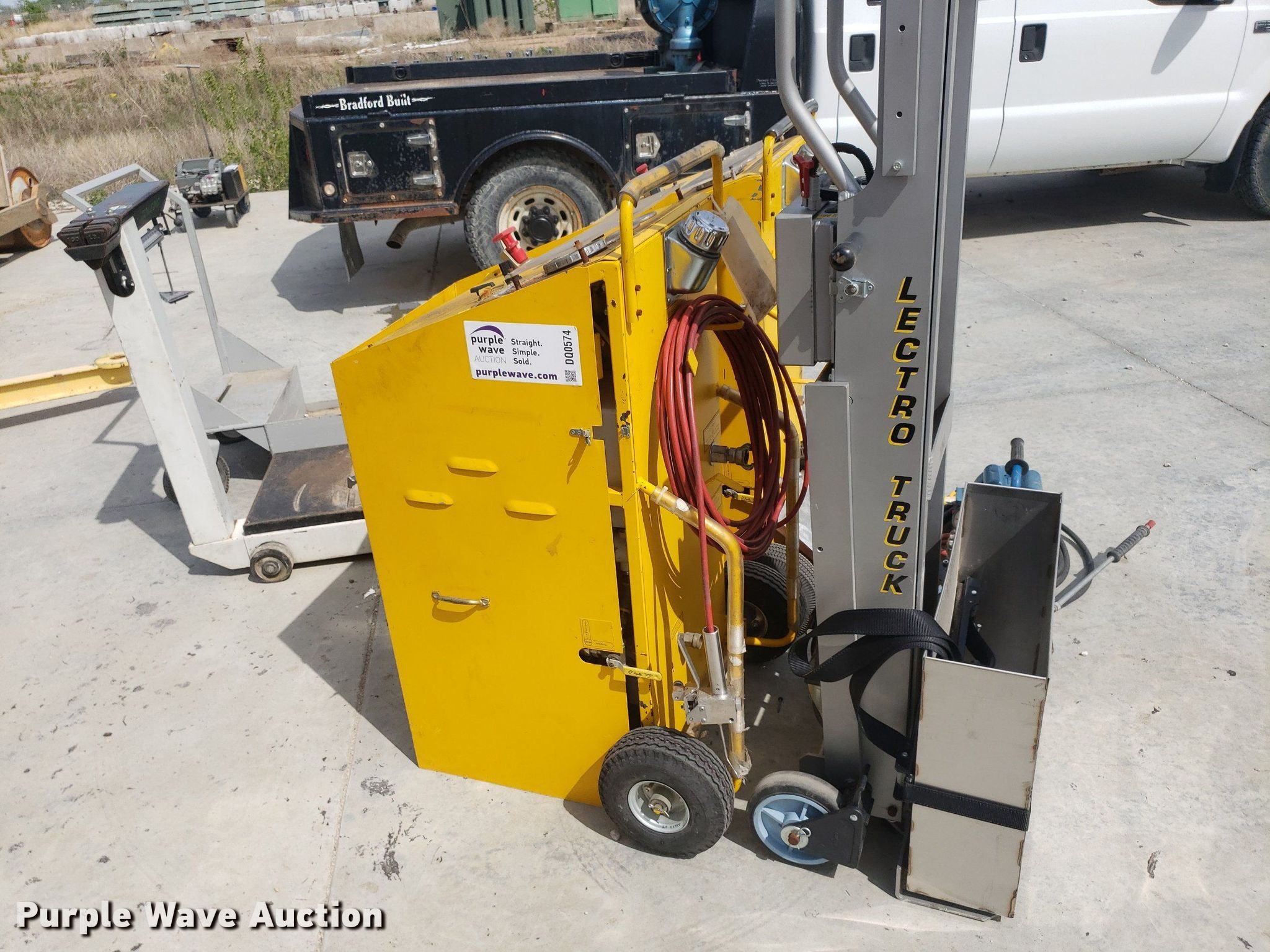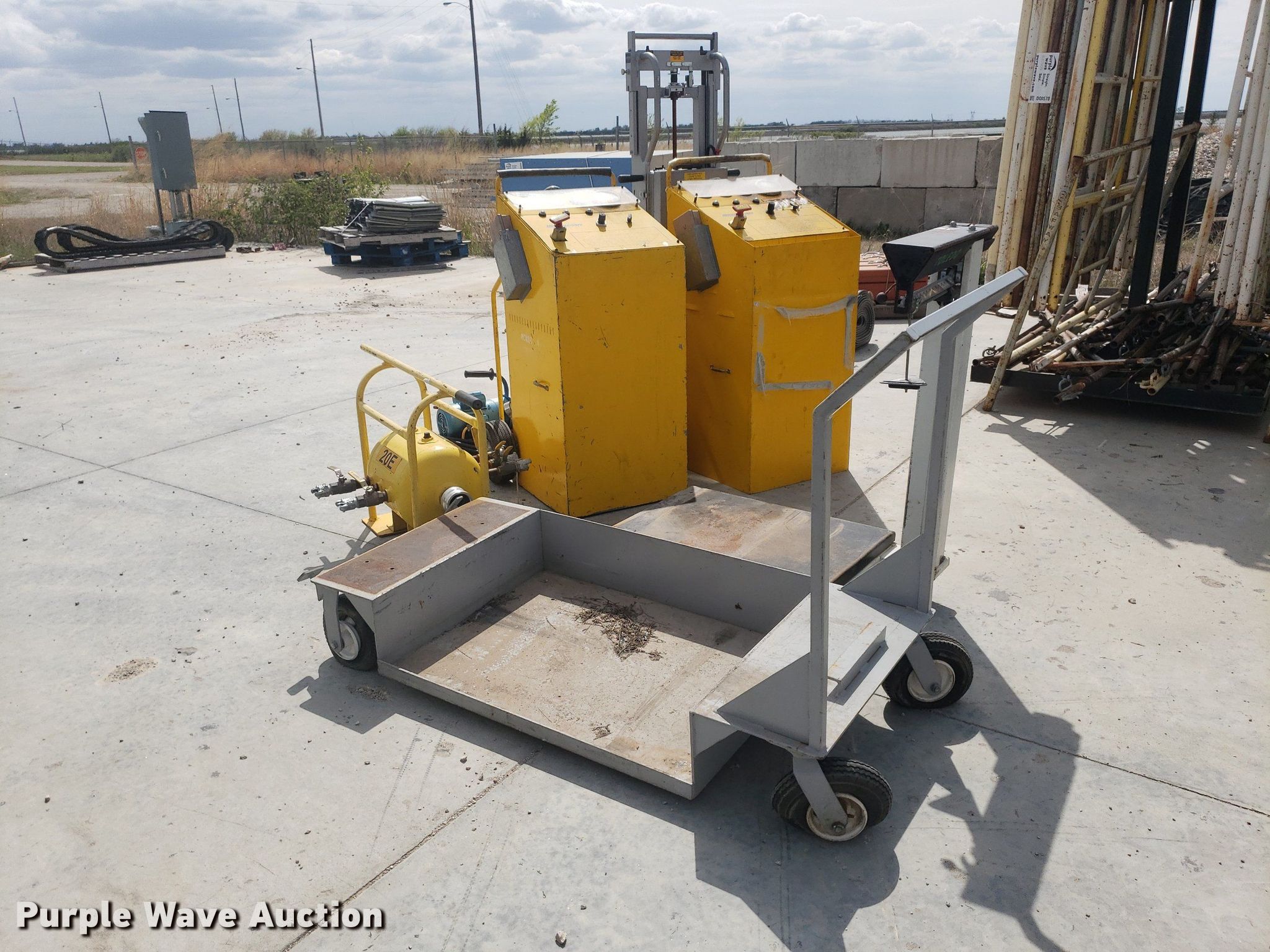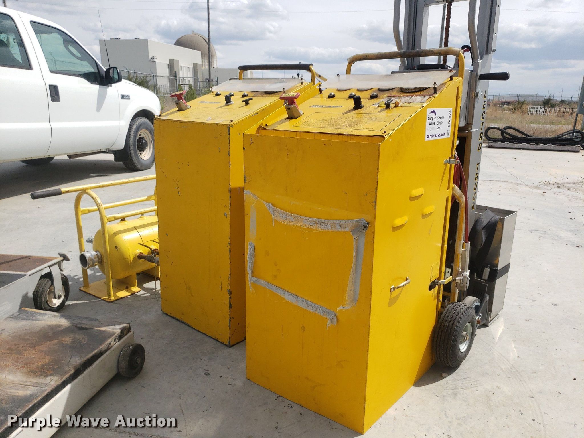 Purple Wave is selling a used Tools in Kansas. This item is a Tools with the following: Toledo scale, Cart, Lectro stair climber dolly, Capacity: 1,500 lbs, (2) Henze-Movats HP1000 water picks, Pressure washer, Unknown operating condition, Air tank
