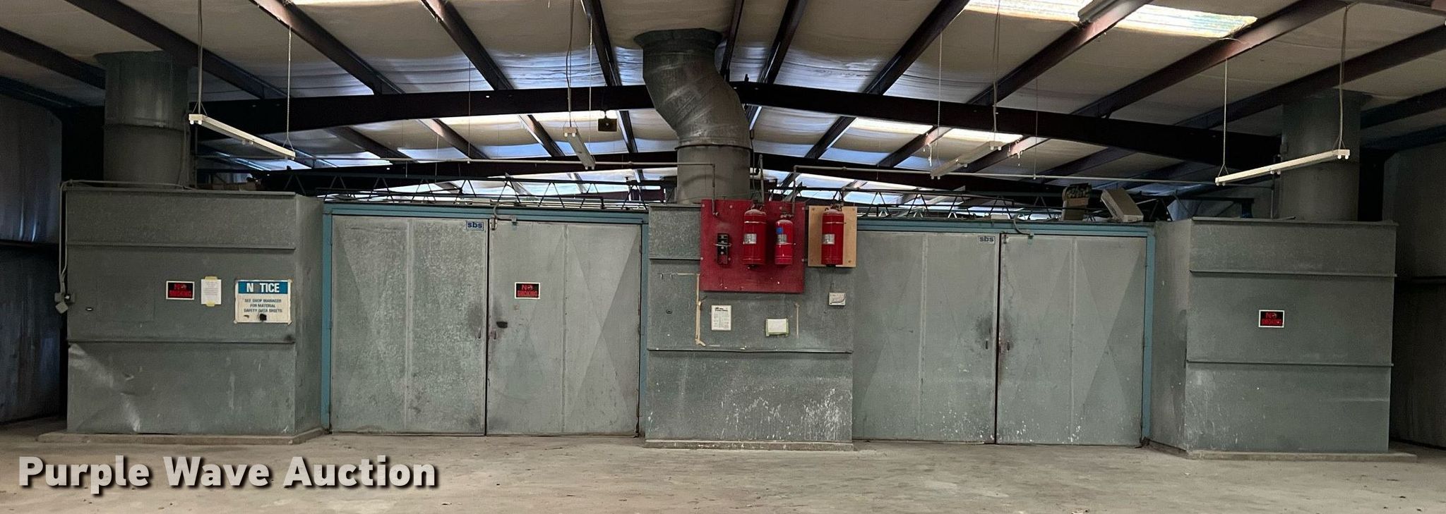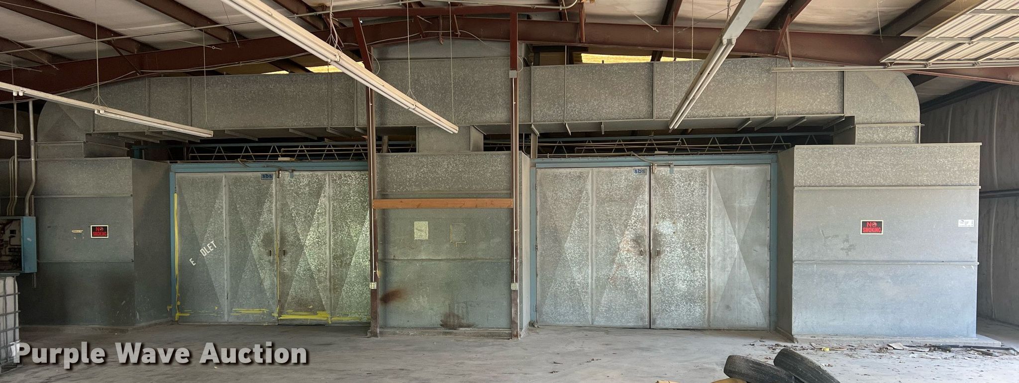 SBS paint booth. Dimensions: 57' L x 50' W x 9' H, Overall Height: 13', (2) man doors, (4) bay doors. Buyer responsible for all aspects of load out and removal. 1502 Farm to Market Road 157. Mansfield, TX 76063