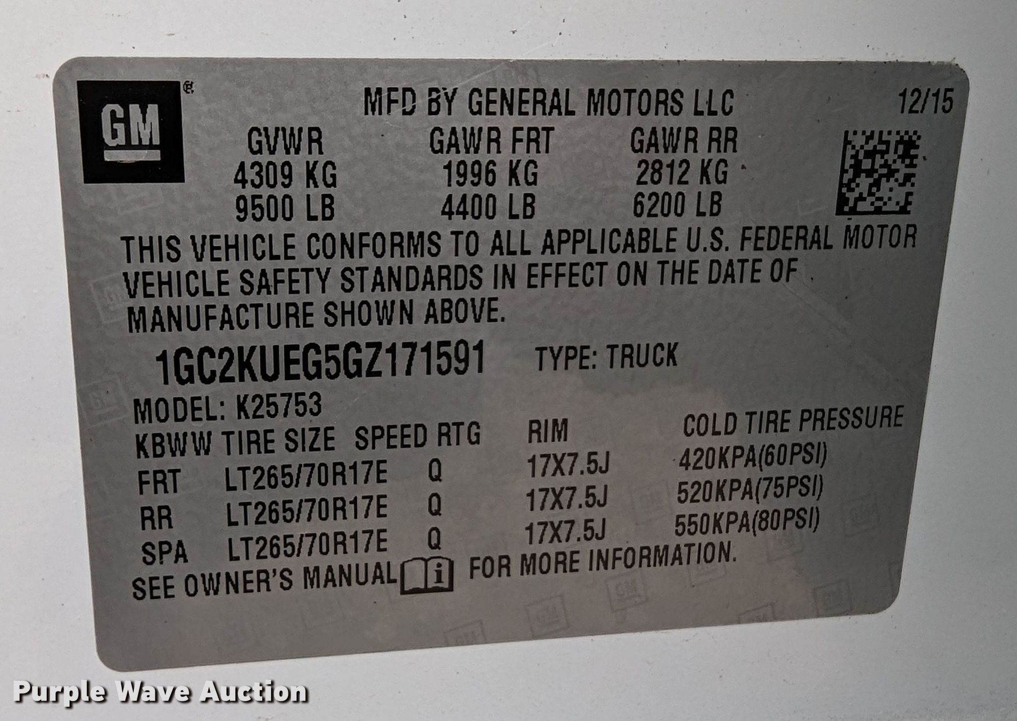 Purple Wave is selling a used 3/4 or 1 Ton Pickup or Van in Oklahoma. This item is a 2016 Chevrolet Silverado 2500HD Double Cab pickup truck with the following: Miles: 168,378 on odometer, VIN: 1GC2KUEG5GZ171591
