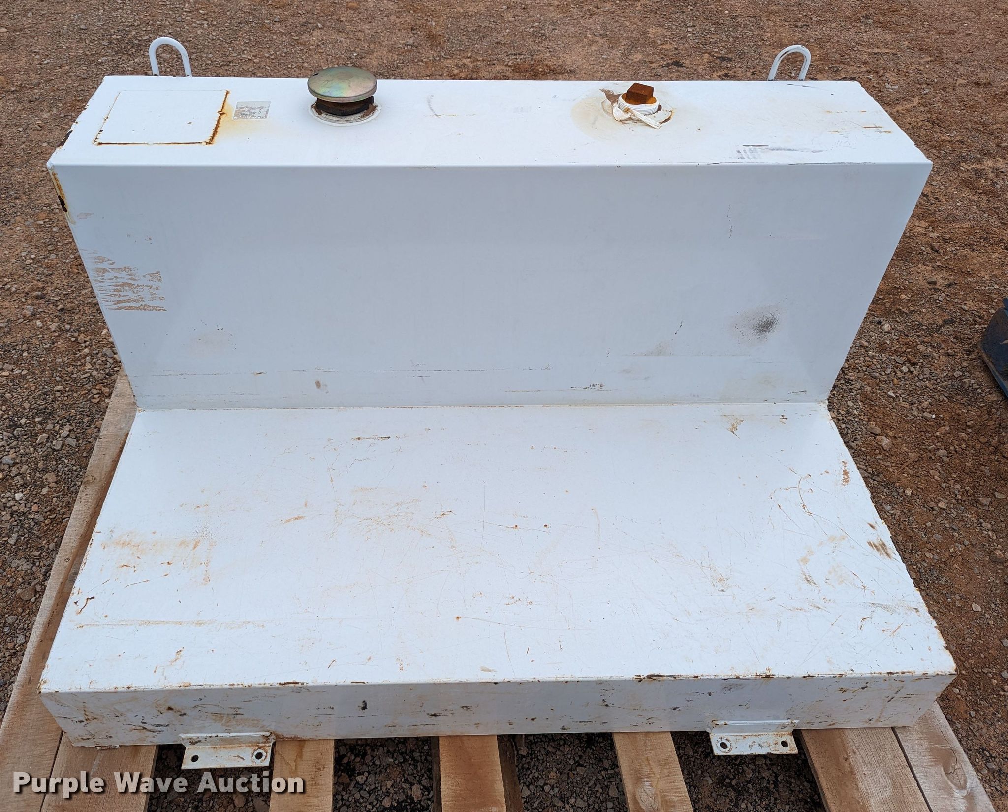 Purple Wave is selling a used Automotive Parts or Acces. in Oklahoma. This item is a Delta Consolidated Industries 488000 auxiliary fuel tank with the following: Serial: 018636, Capacity: 78 gallons, Dimensions: 48" W x 31" D x 25" H