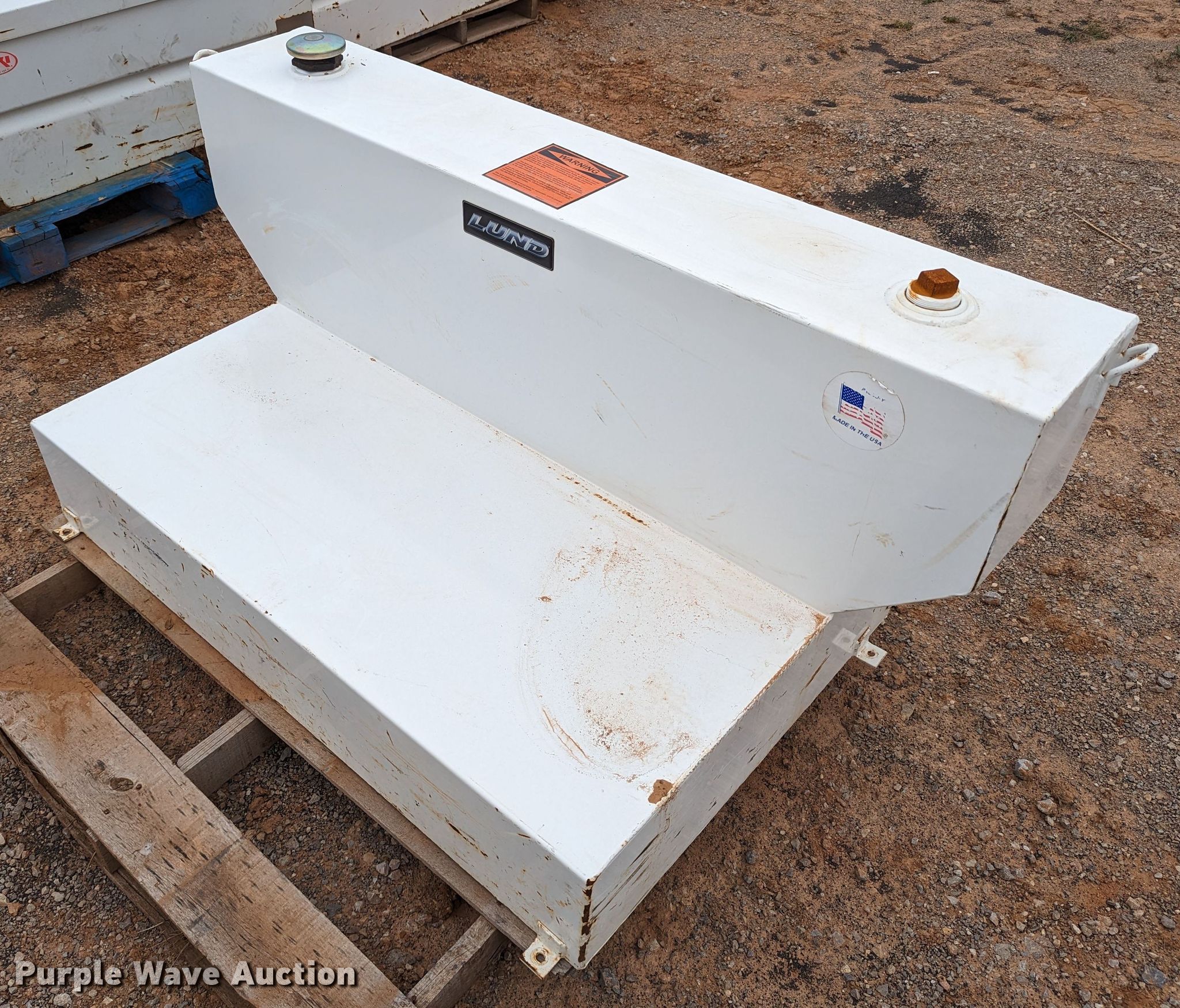 Purple Wave is selling a used Automotive Parts or Acces. in Oklahoma. This item is a Lund auxiliary fuel tank with the following: Capacity: Approx. 100 gallons, Dimensions: 60" W x 32" D x 25" H