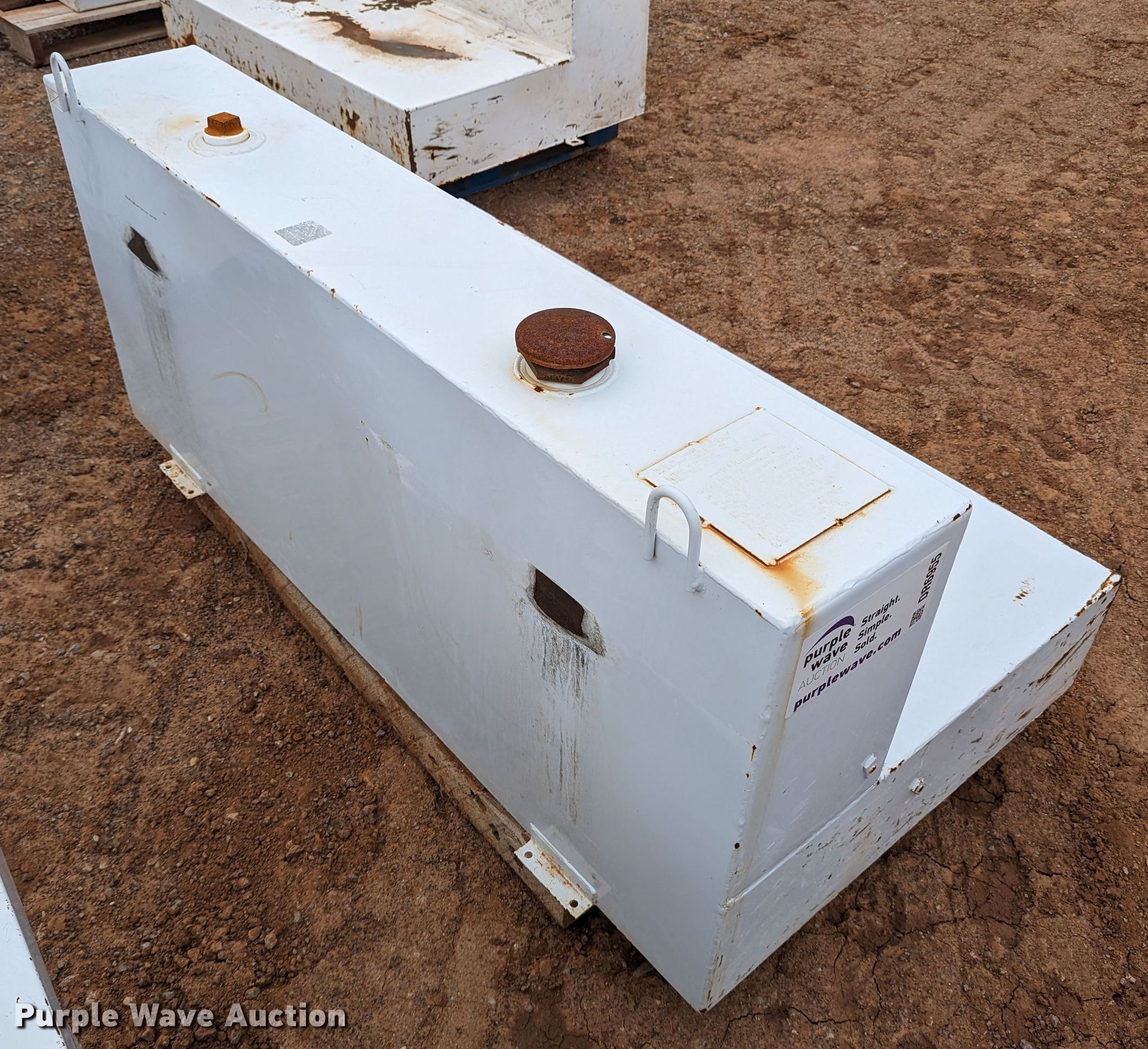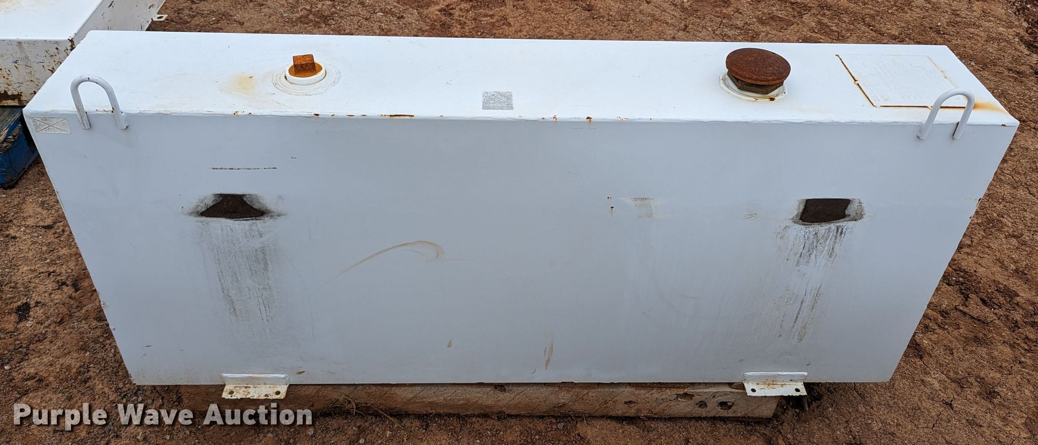 Purple Wave is selling a used Automotive Parts or Acces. in Oklahoma. This item is a Delta Consolidated Industries 480000 auxiliary fuel tank with the following: Serial: 233819, Capacity: 105 gallons, Dimensions: 60" W x 31" D x 25" H