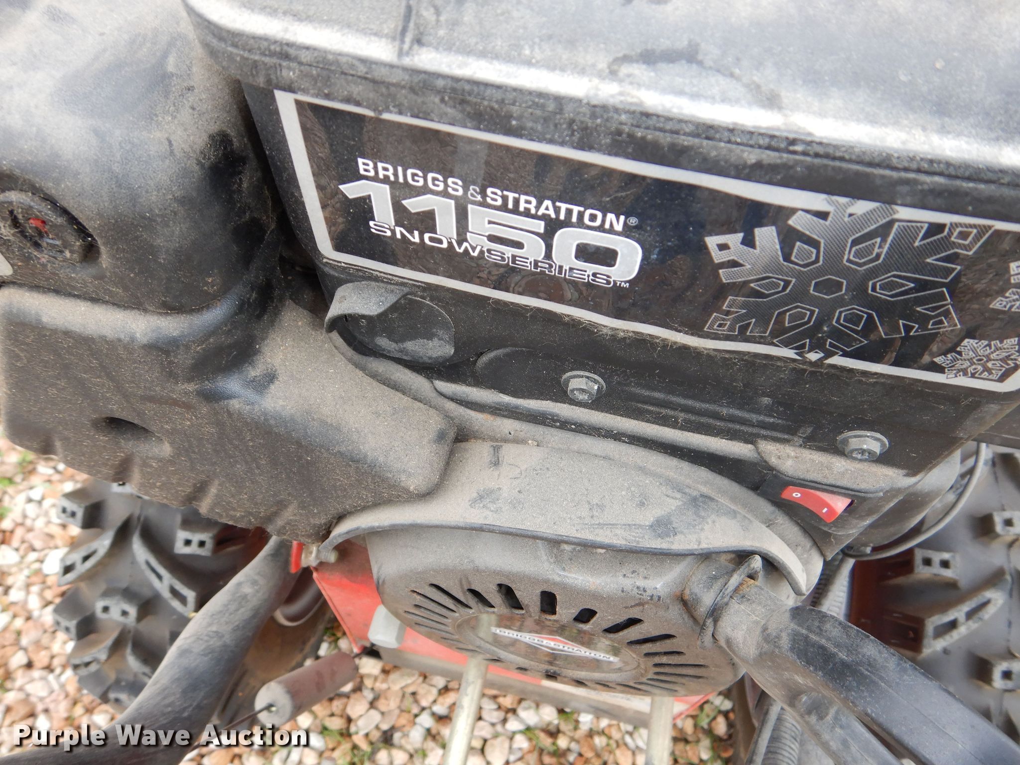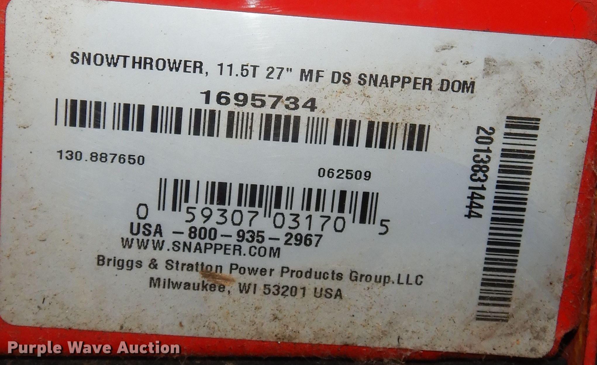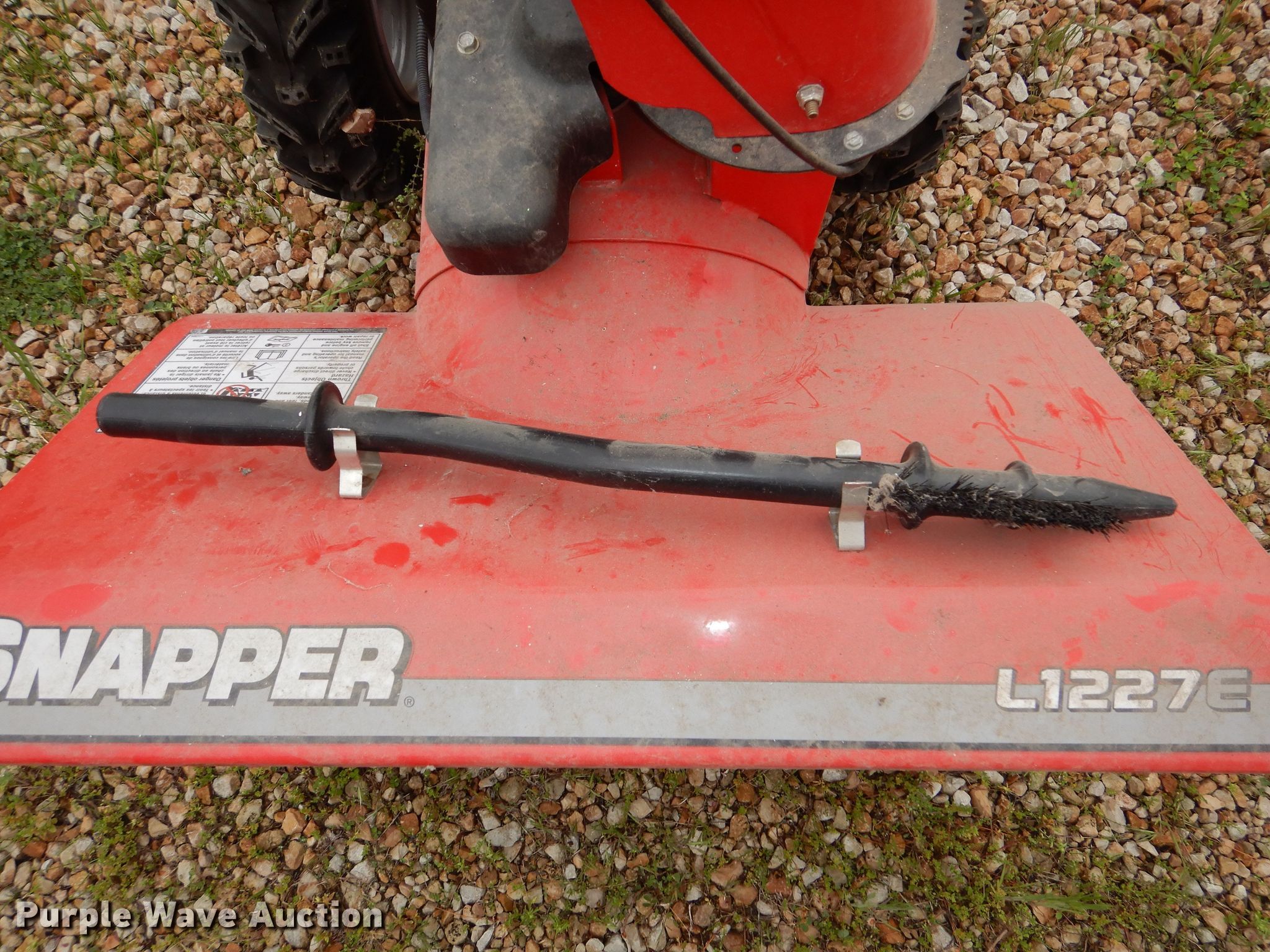Purple Wave is selling a used Lawn and Garden in Kansas. This item is a Snapper L1227E snow blower with the following: Briggs & Stratton gas engine, 11.5 HP, 26" W, 4.80-8 tires, Serial: 1695734