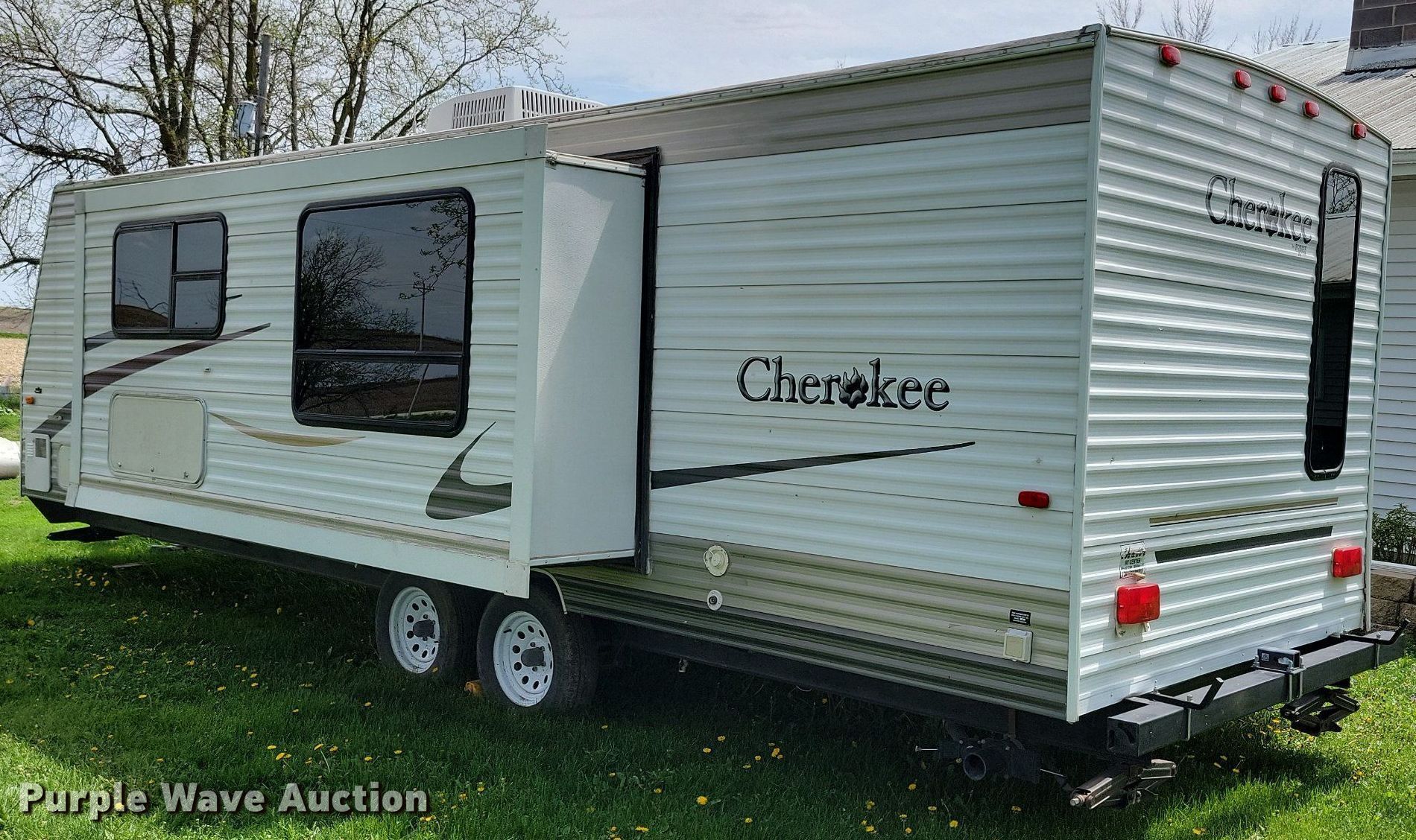 2005 Forest River Cherokee Lite camper. Camper length: 28', VIN: 4X4TCKD235P096159. Chassis Axles: Tandem, Suspension: Spring, Brakes: Electric, GVWR: 7,580 lbs, GAWR: 3,500 lbs. Interior Kitchen: Sink, Refrigerator, Freezer, Microwave, Oven, Stove: Propane, Living room: Table, Pull out couch, Bathroom, Beds: 3 Bed type: Double, Heater, AC units: 1. Features Slide outs: 2, Awnings: 1 Awning type: Manual, Rear hitch. Tires Size: ST205/75R15, Brand: Carlisle. Iowa title. Title distribution may be delayed up to 14 days from verification of funds. 20652 150th Street. Perry, IA 50220