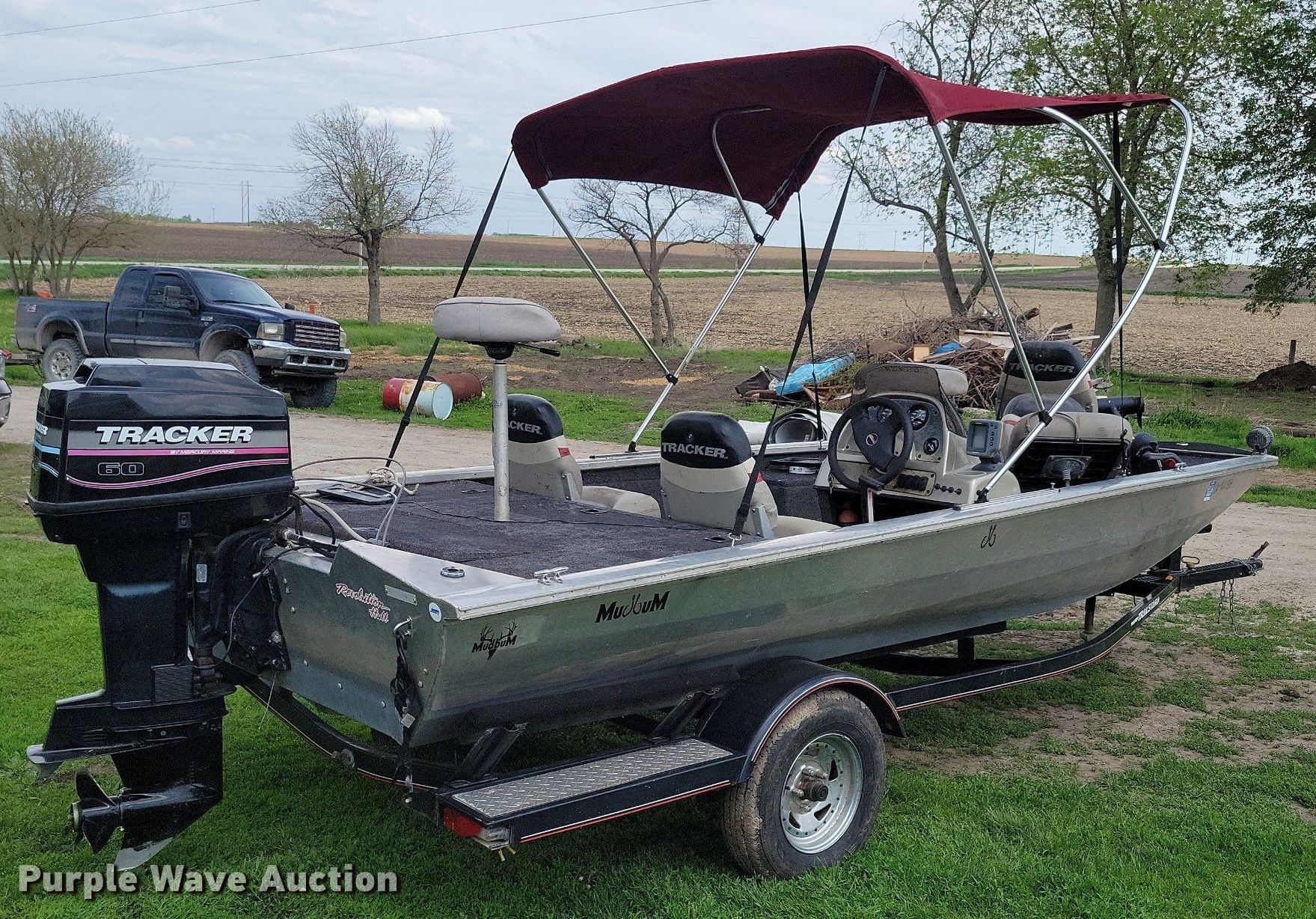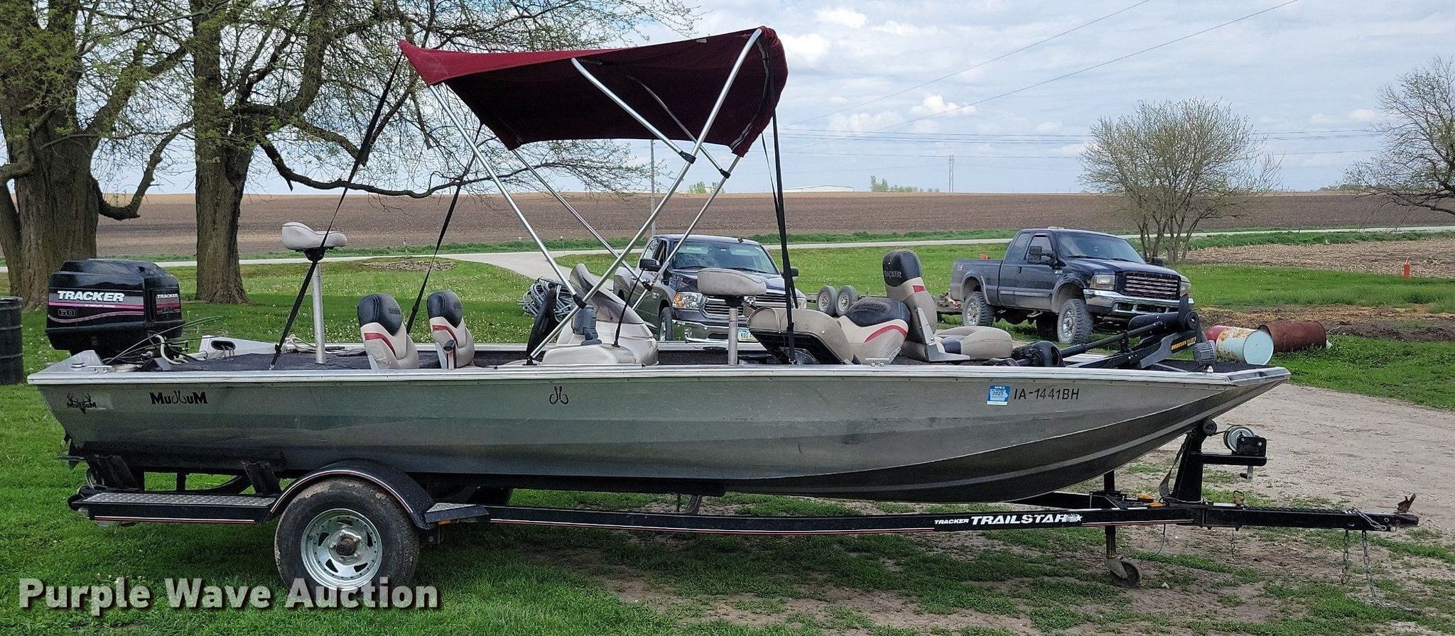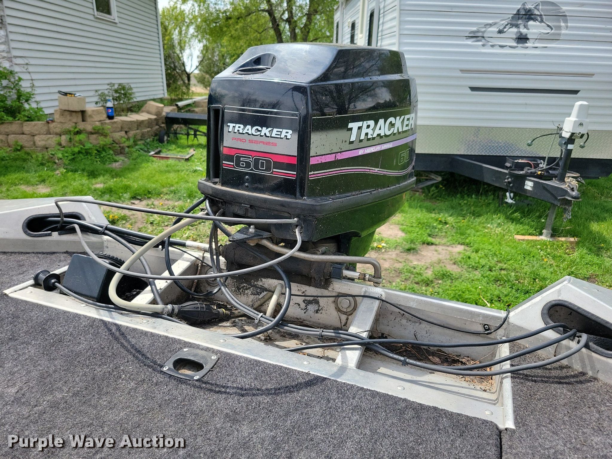 2001 Bass Tracker Pro 185 boat. Length: 18', Hull ID: BUJ90914B101. Engine Engine type: Outboard, Mercury, Serial: 0T314416, Displacement: 967 cc, Cylinders: 3, Fuel type: Gas, HP: 60, Outdrive Propeller: Aluminum. Operators station Capacity Person: 5, 685 lbs, Depth finder: Humminbird Wide 128. Features Bimini top, Trolling motor: Minn Kota Maxxum 80. Trailer 2001 Trail Star Pro 185, VIN: 4TM11DF141B001987, Overall length: 20', Overall width: 77", GVWR: 2,700 lbs, Ball hitch size: 2", Axles: Single, Tire size: ST175/80R13. Notes Taillights will be replaced prior auction, Dead battery. Iowa title. Title distribution may be delayed up to 14 days from verification of funds. 20652 150th Street. Perry, IA 50220