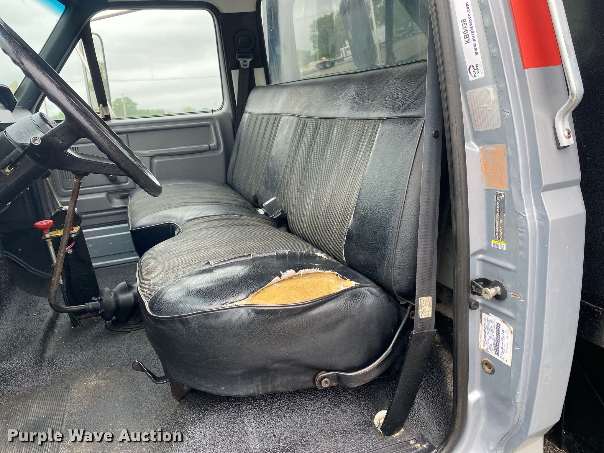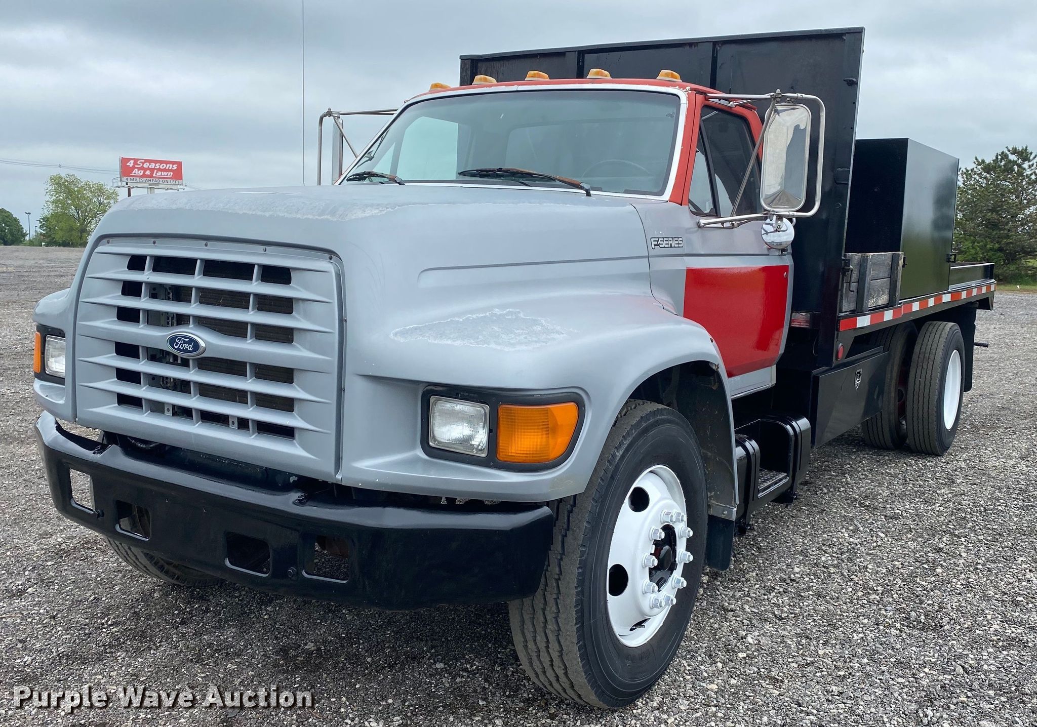 This 1998 Ford F800 dump flatbed truck will sell to the highest bidder regardless of price.