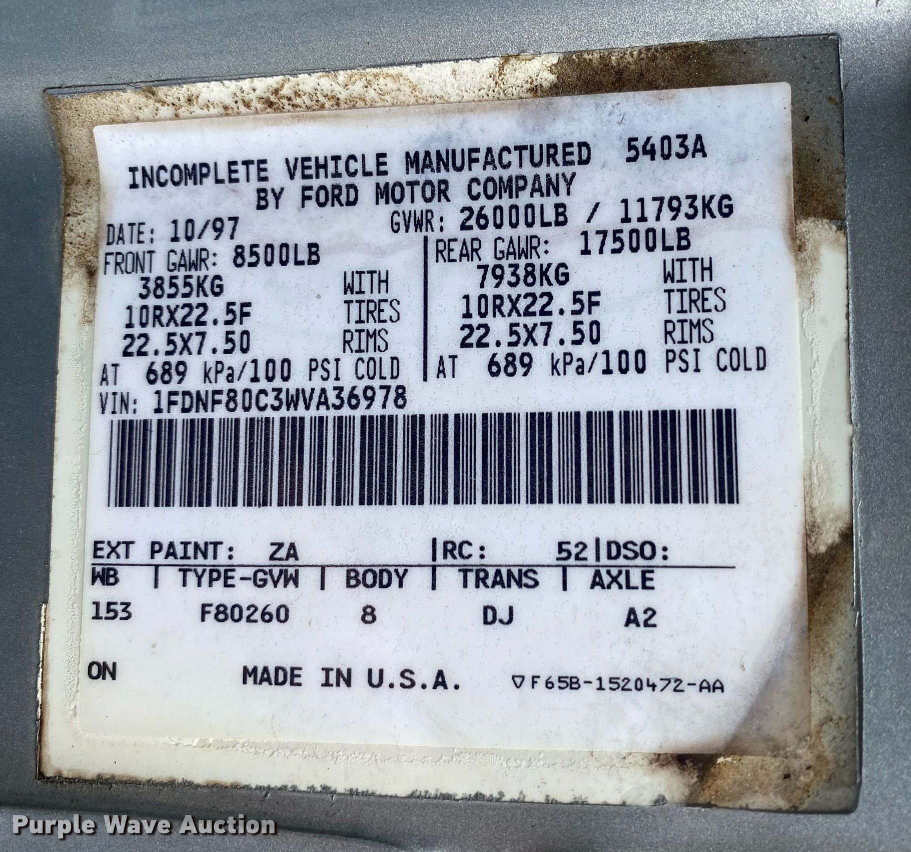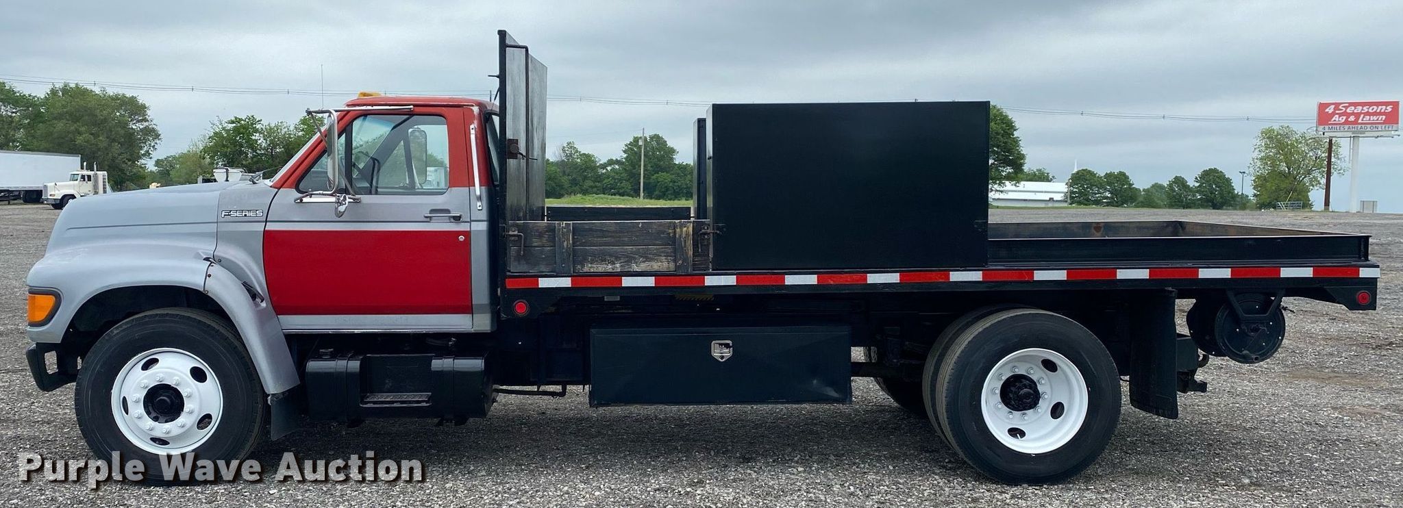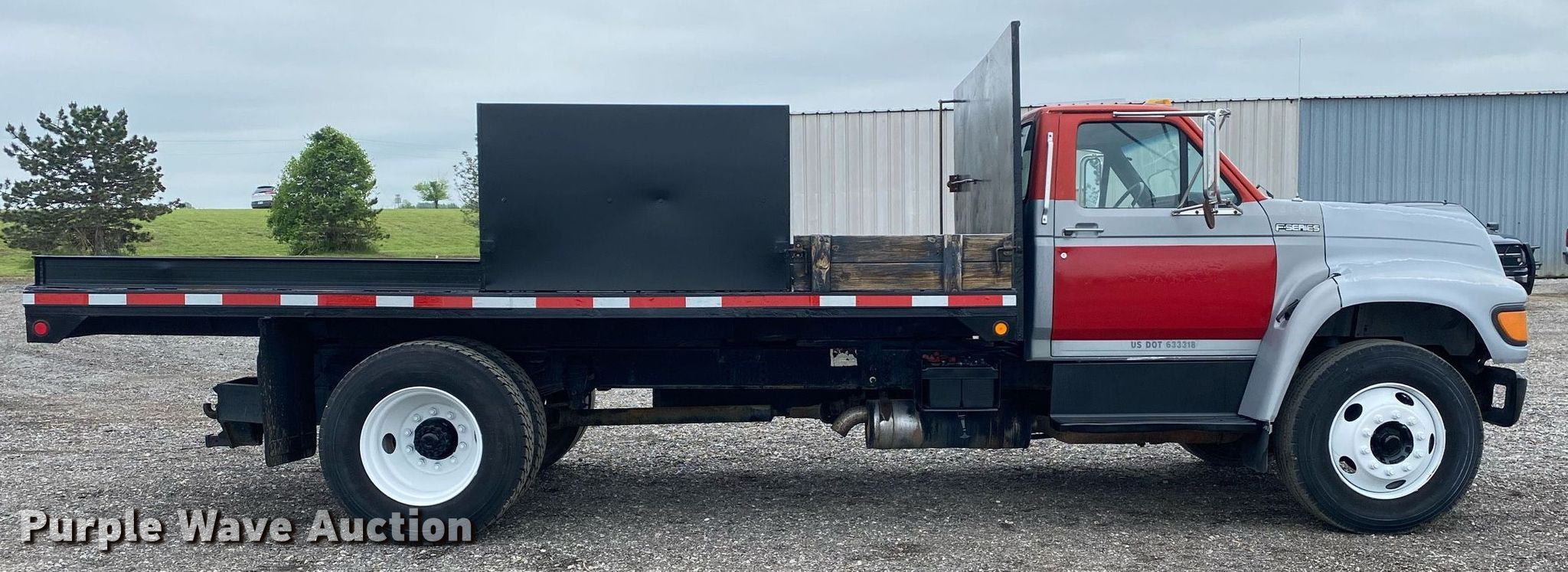 Purple Wave is selling a used Flat Bed Truck in Oklahoma. This item is a 1998 Ford F800 dump flatbed truck with the following: Miles: 76,909 on odometer, VIN: 1FDNF80C3WVA36978